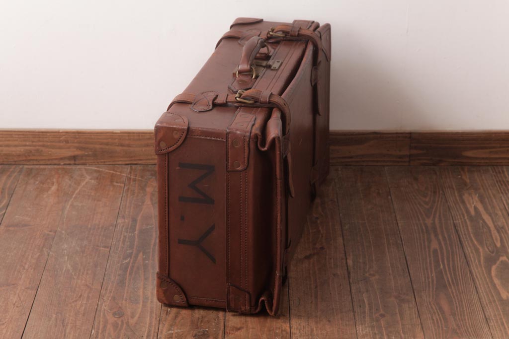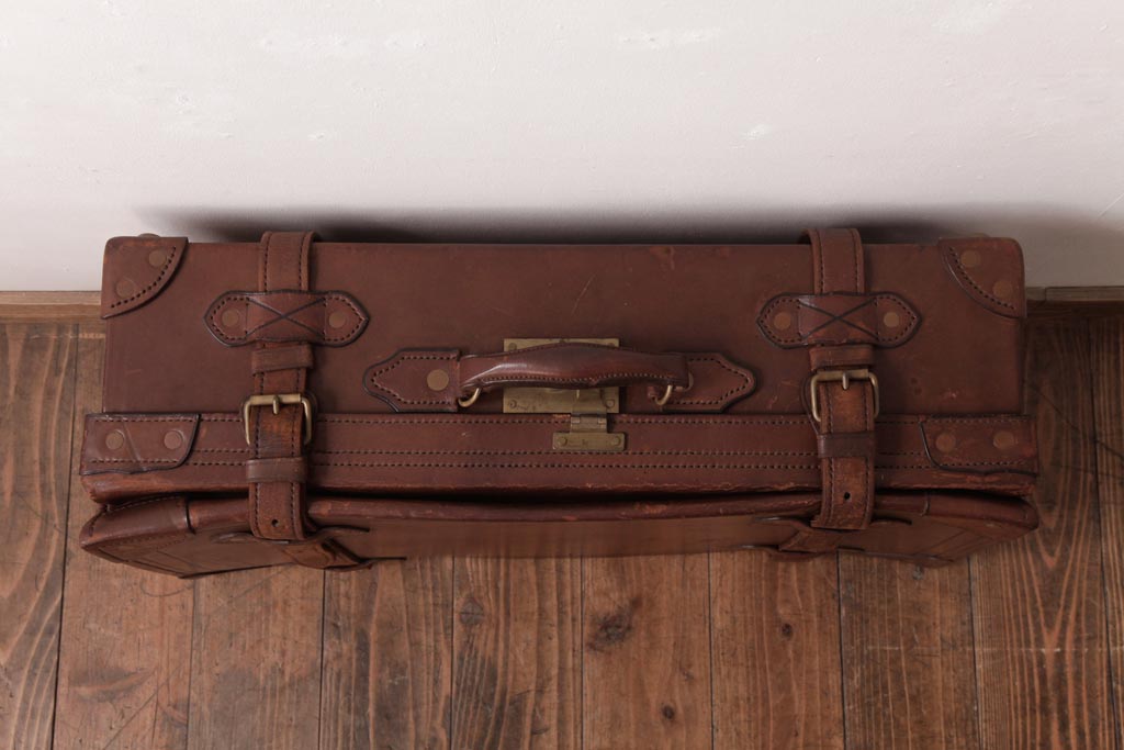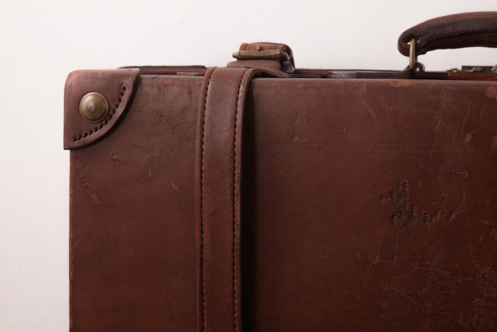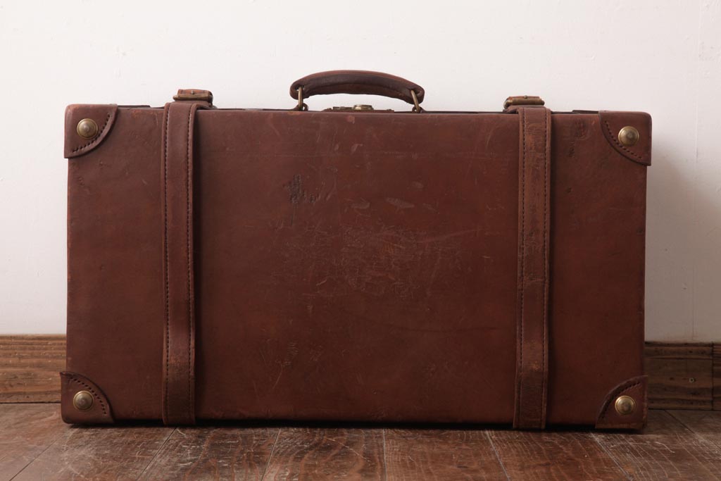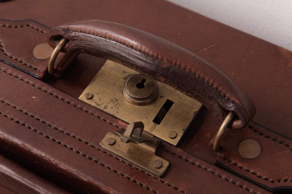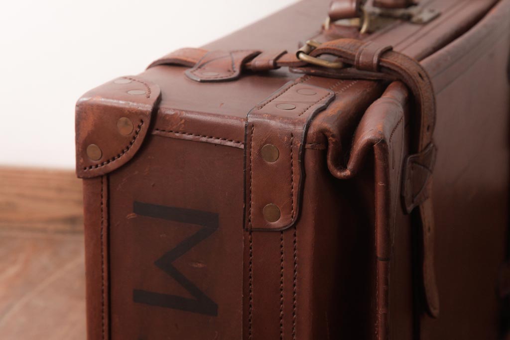 和製ビンテージ 本革 ヴィンテージスタイルを盛り上げる古い趣のトランク(収納、ディスプレイ)