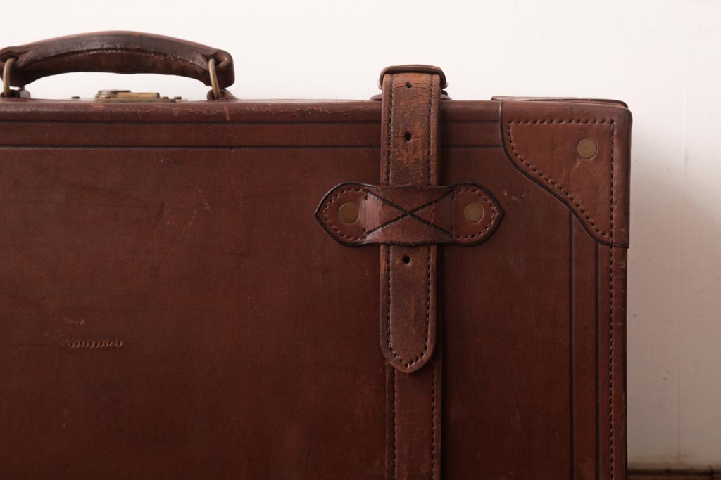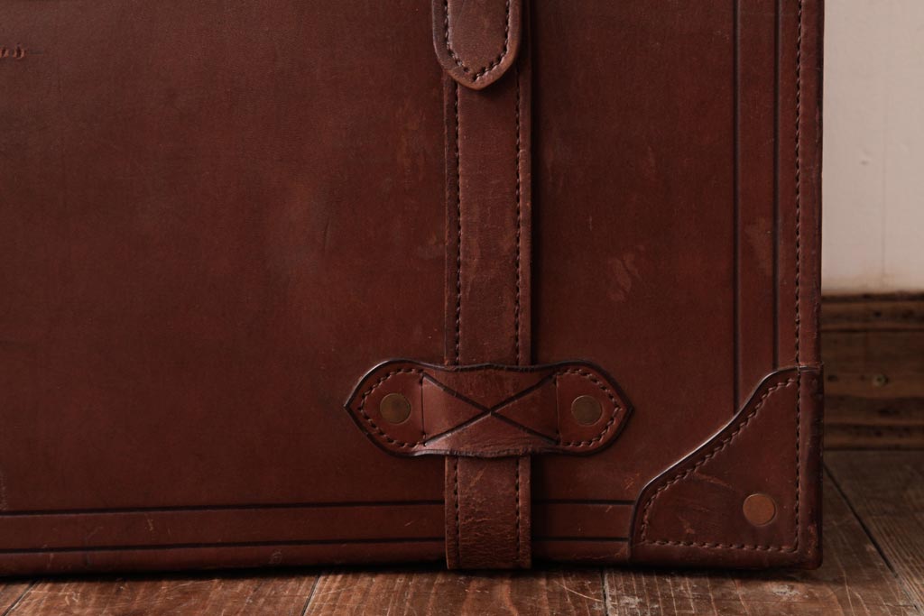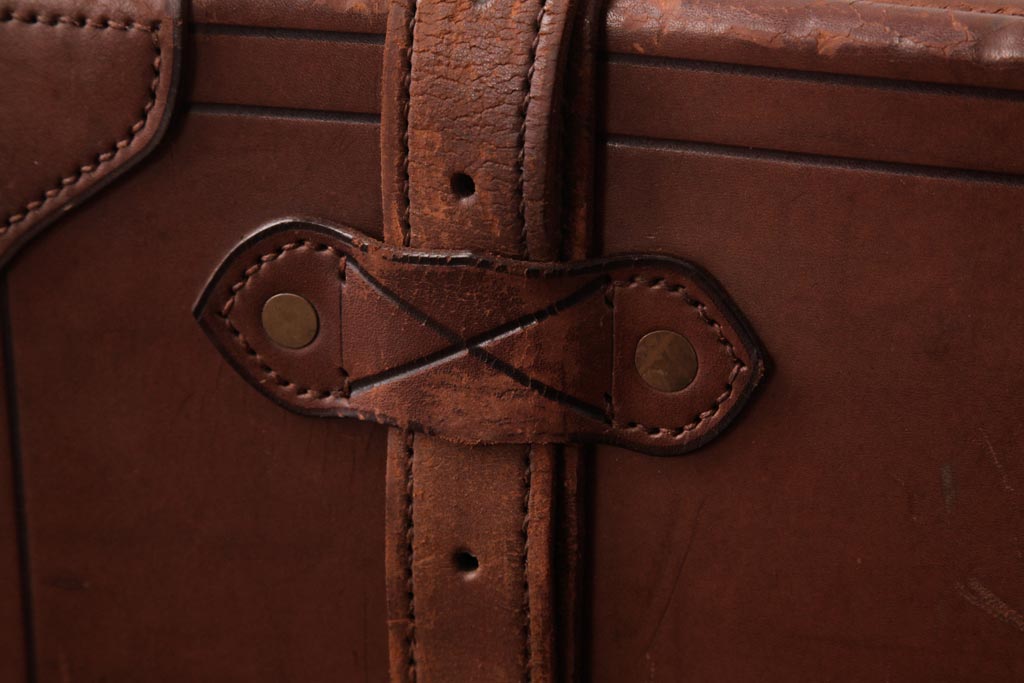 ラフジュ工房> 小物収納・トランク> トランク > 和製ビンテージ 本革 ヴィンテージスタイルを盛り上げる古い趣のトランク(収納、ディスプレイ)