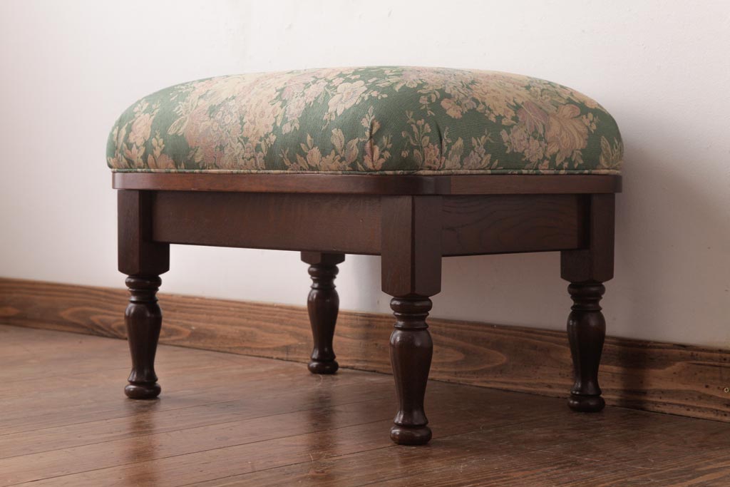 ラフジュ工房> 椅子・ベンチ> スツール > ヴィンテージ家具 ビンテージキツツキ 飛騨産業 穂高 クラシックスタイルに馴染むオットマン(スツール)