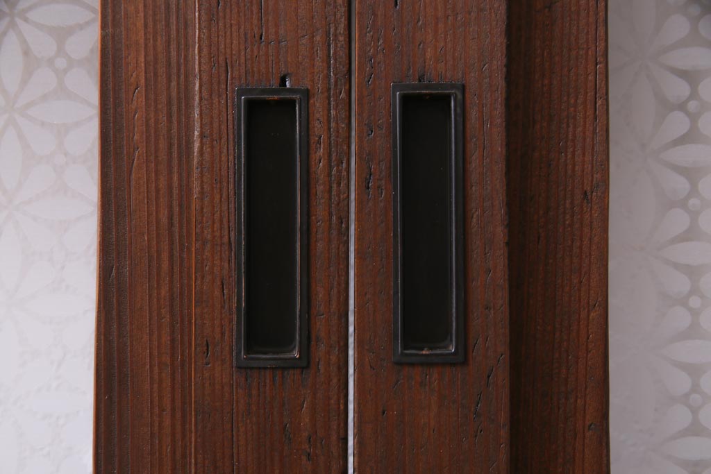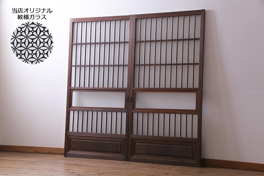 昭和レトロ 当店オリジナルガラス 腰板ケヤキ材 上品かつ趣溢れる格子戸(ガラス戸、引き戸、建具)2枚セットです。