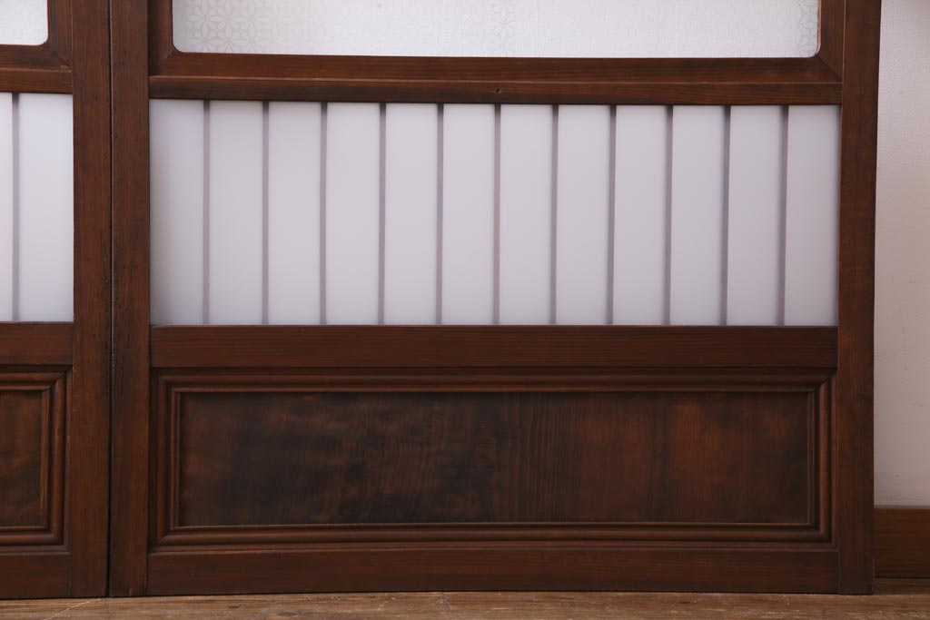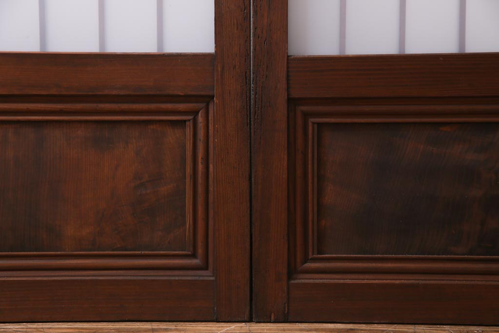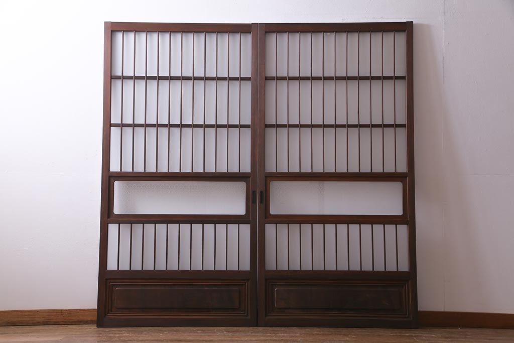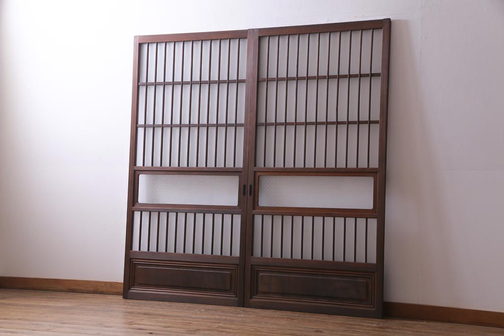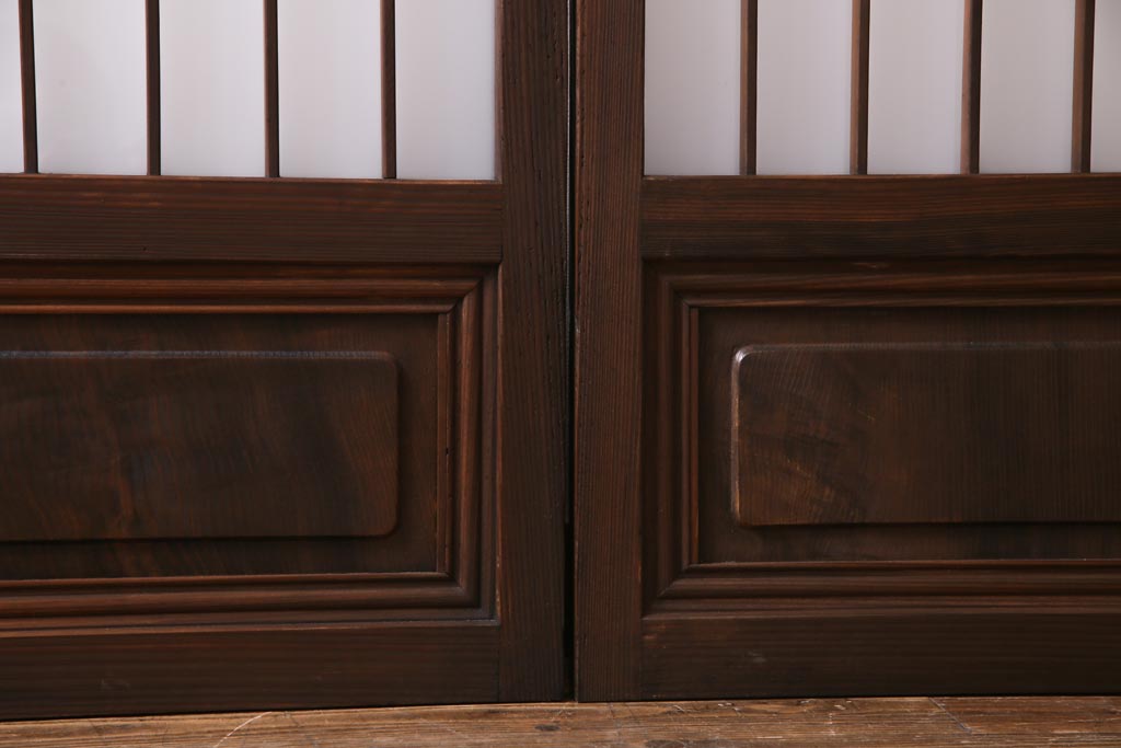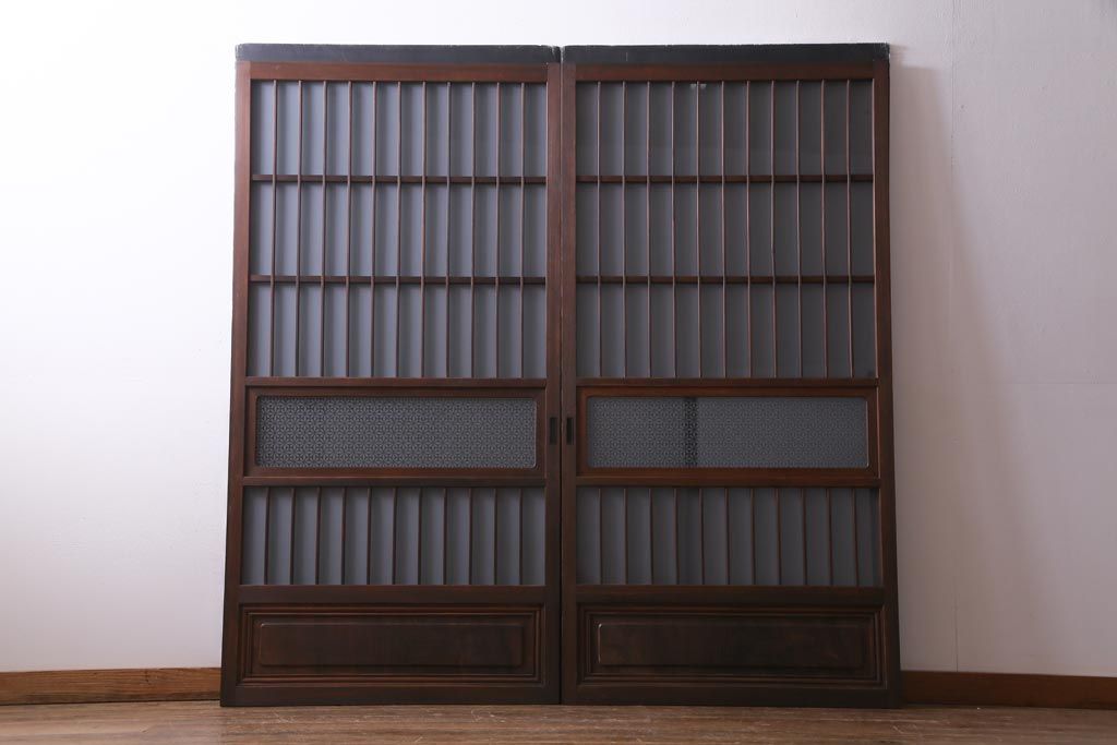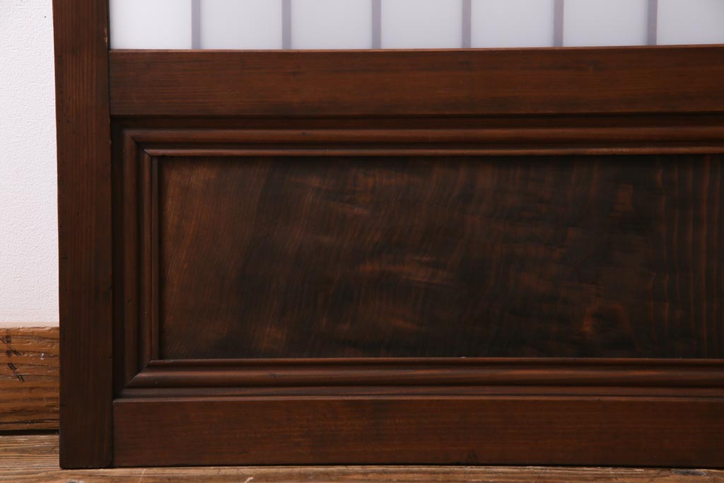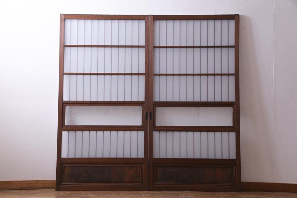 昭和レトロ 当店オリジナルガラス 腰板ケヤキ材 上品かつ趣溢れる格子戸(ガラス戸、引き戸、建具)2枚セット