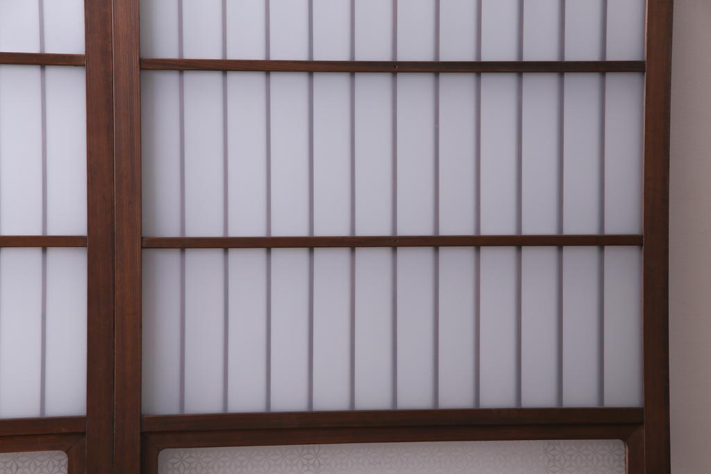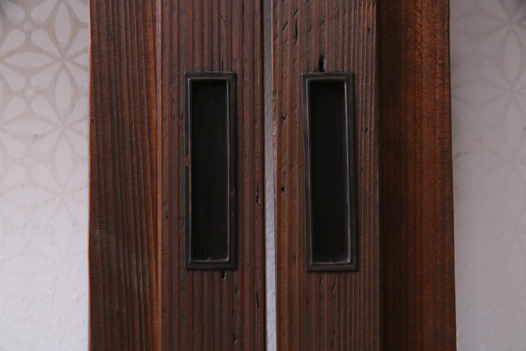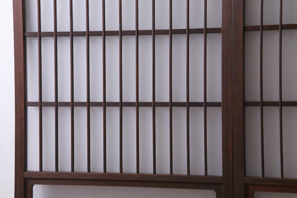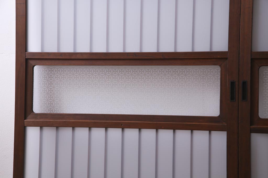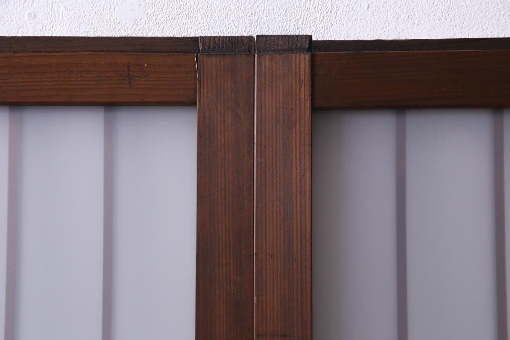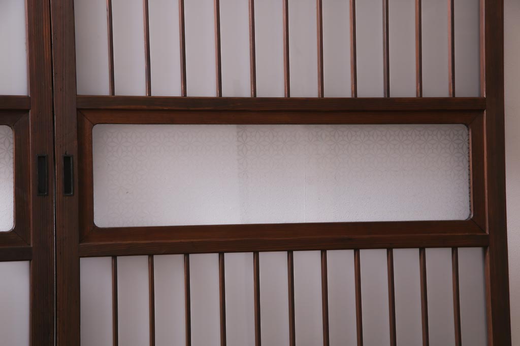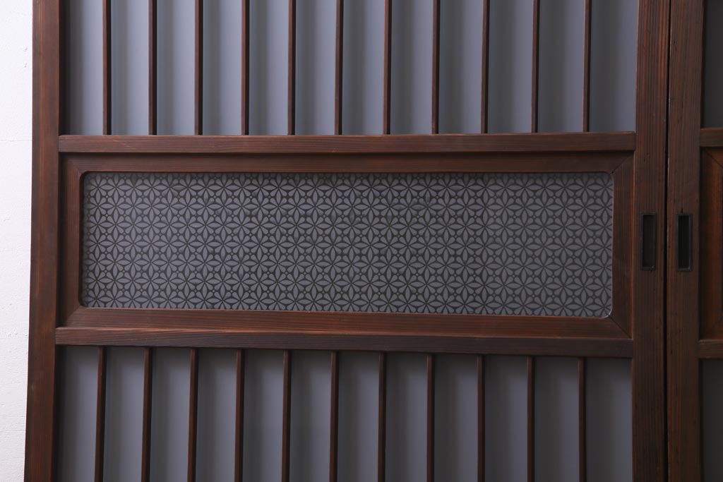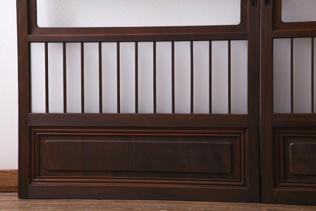 昭和レトロ 当店オリジナルガラス 腰板ケヤキ材 上品かつ趣溢れる格子戸(ガラス戸、引き戸、建具)2枚セット