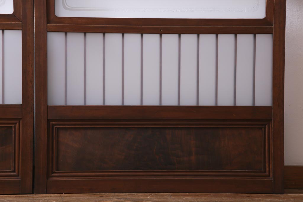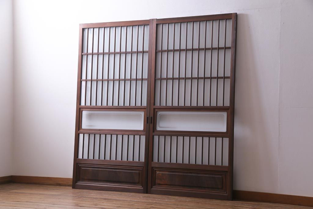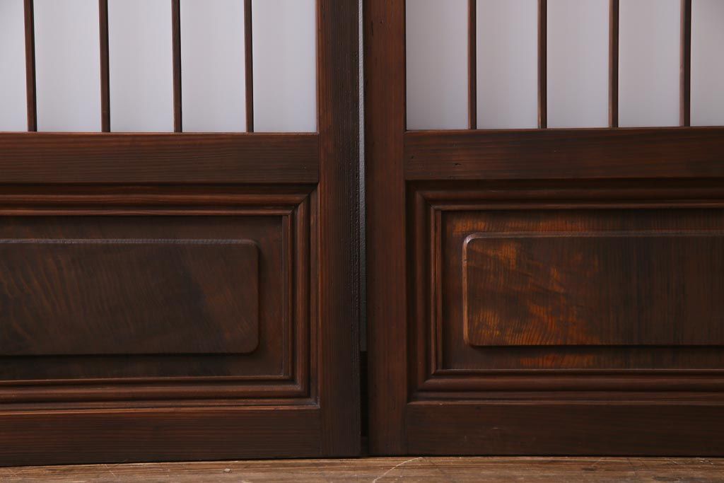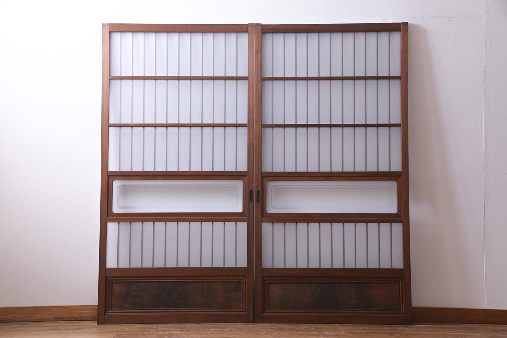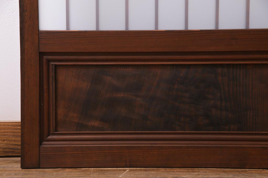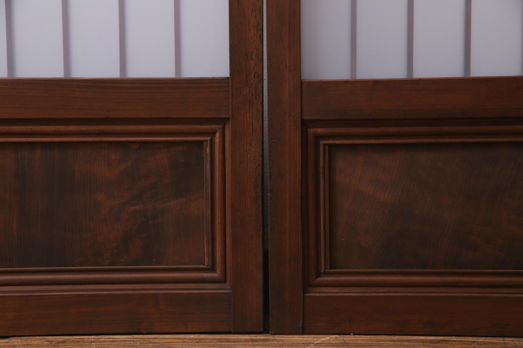 ドア・建具> 引き戸 > レトロ家具 昭和レトロ 腰板ケヤキ材 すりガラスが優しげな印象を与える格子戸(ガラス戸、引き戸、建具)2枚セット