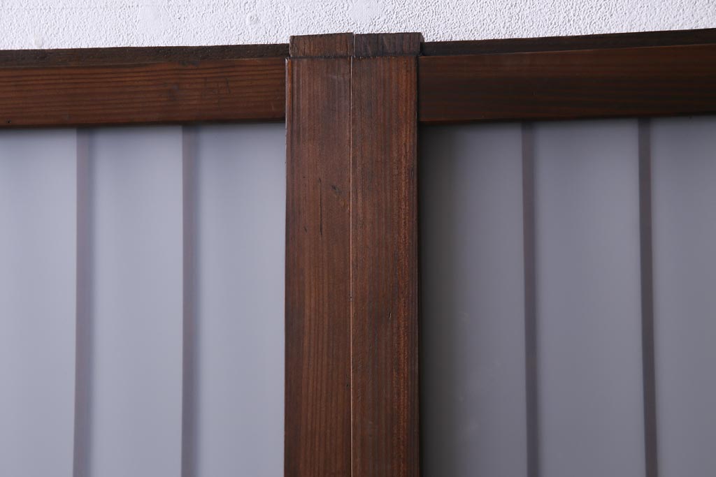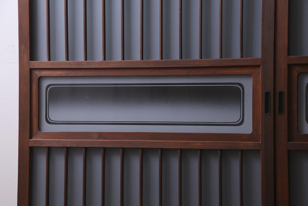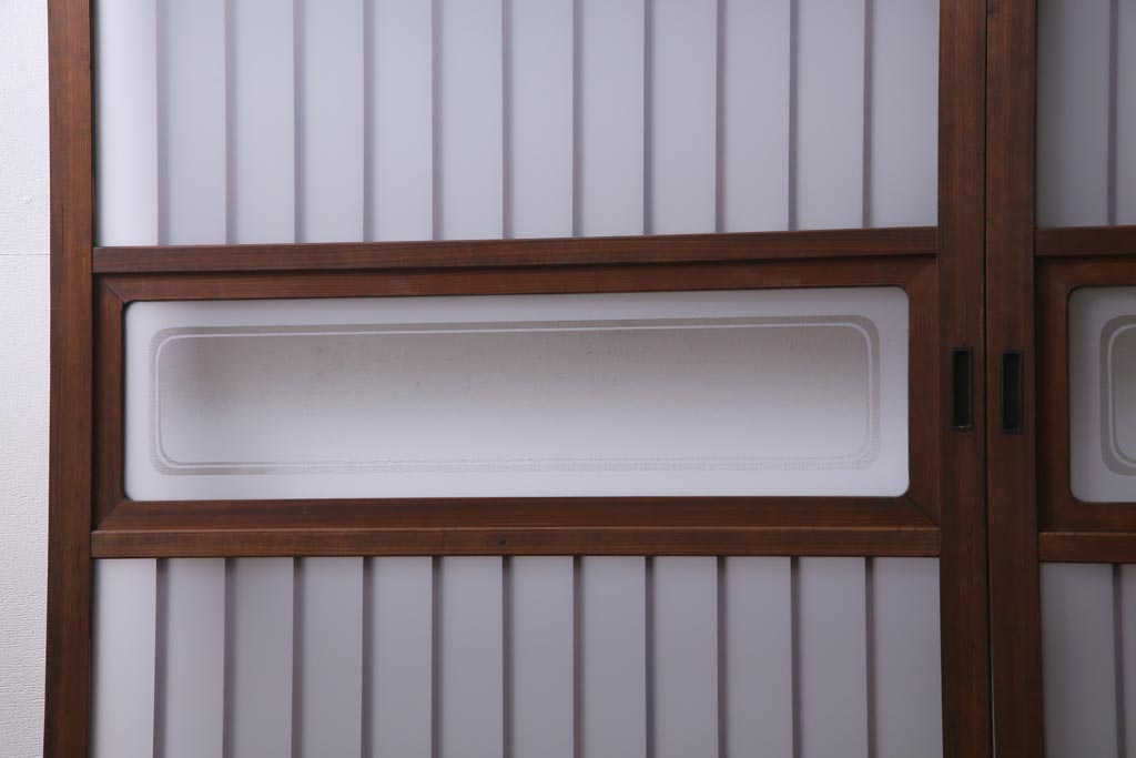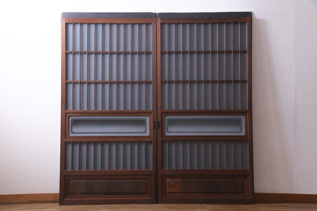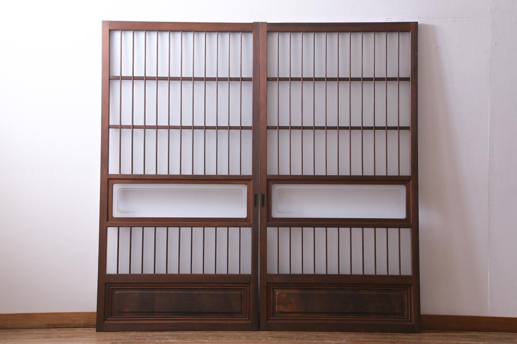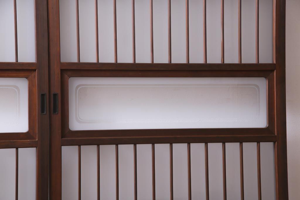 ドア・建具> 引き戸 > レトロ家具 昭和レトロ 腰板ケヤキ材 すりガラスが優しげな印象を与える格子戸(ガラス戸、引き戸、建具)2枚セット
