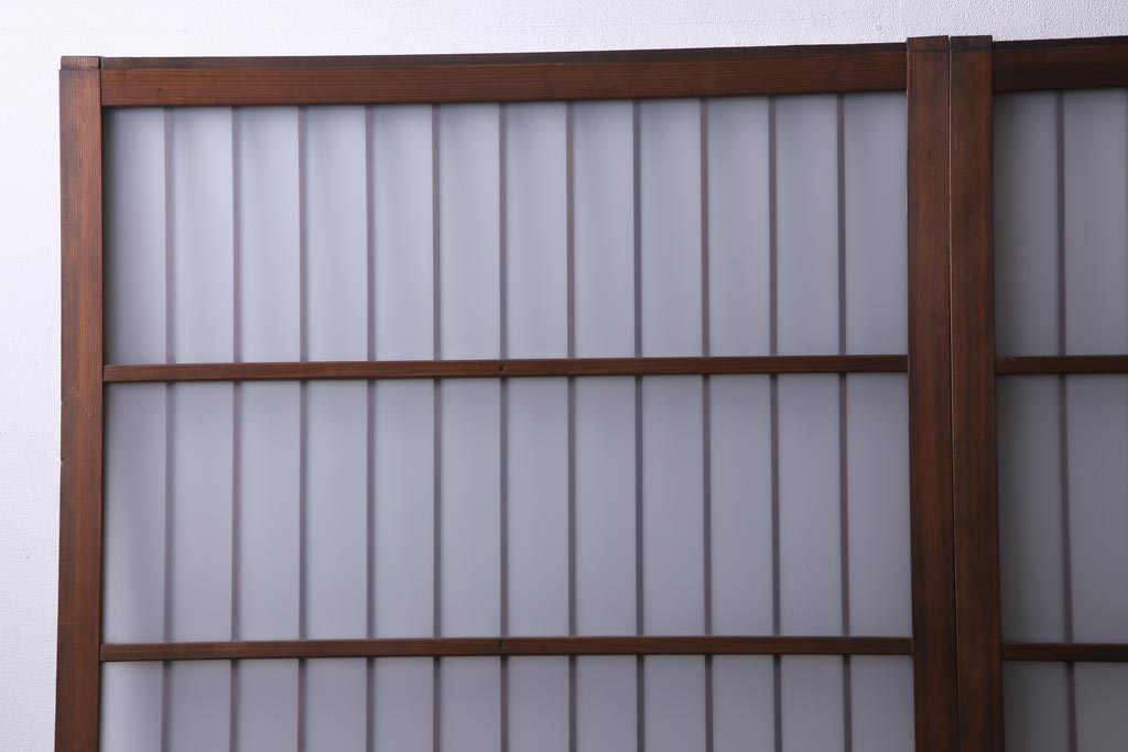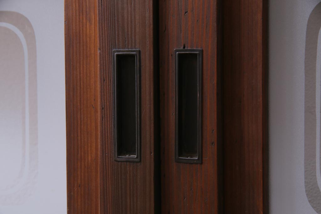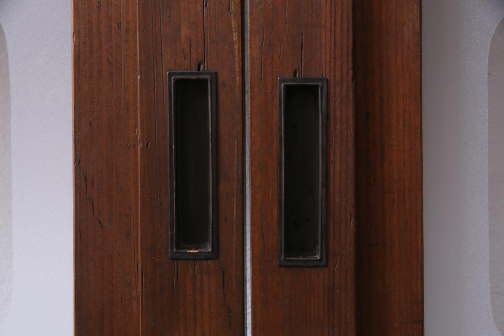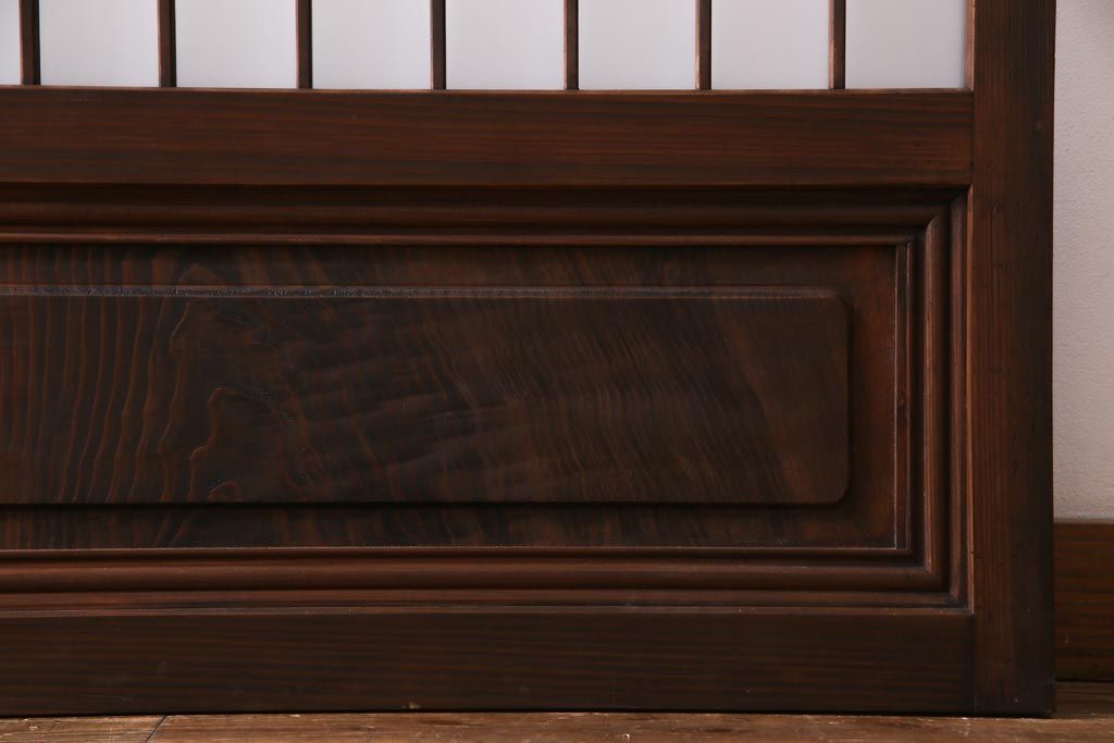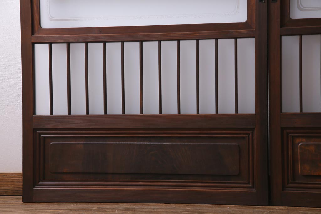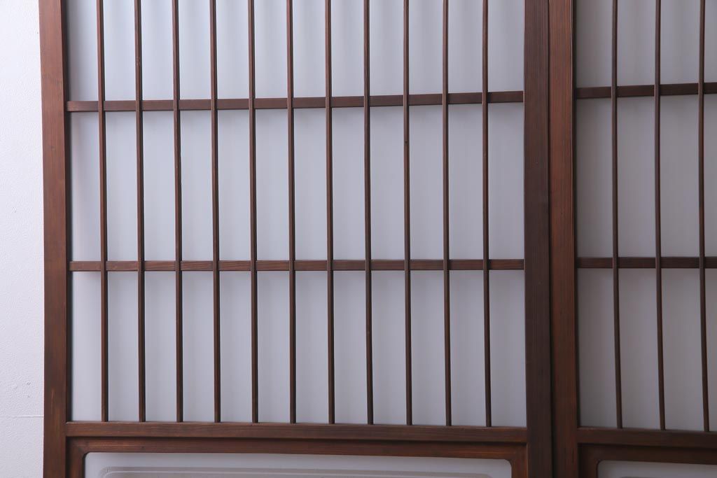 ドア・建具> 引き戸 > レトロ家具 昭和レトロ 腰板ケヤキ材 すりガラスが優しげな印象を与える格子戸(ガラス戸、引き戸、建具)2枚セット