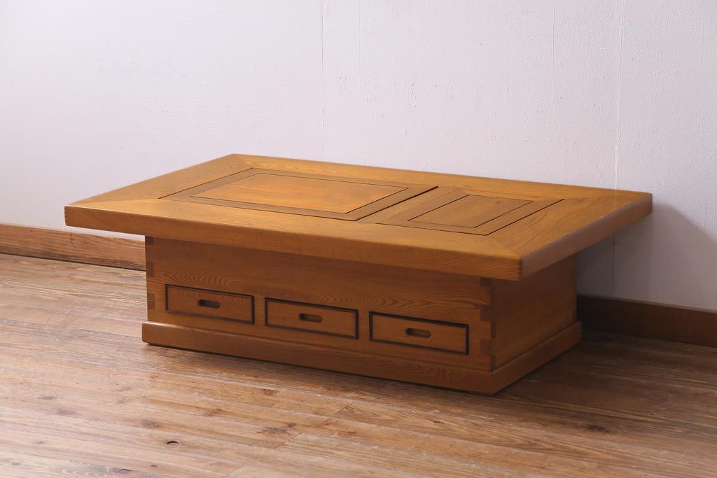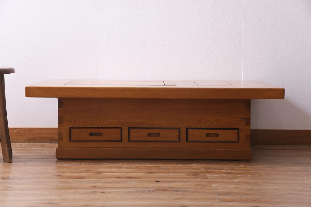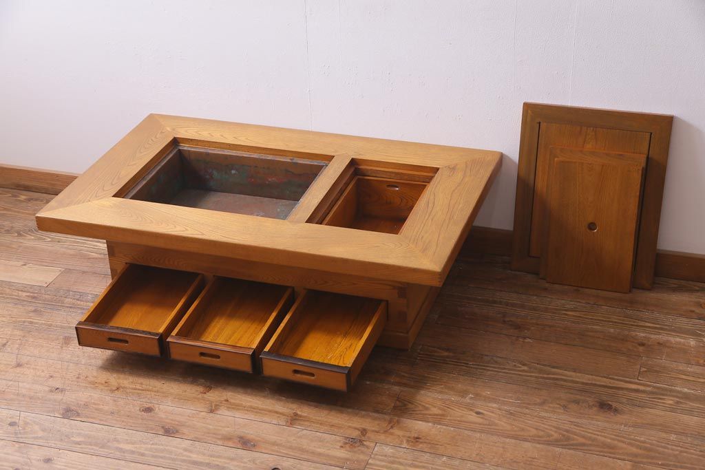 アンティーク雑貨 ビンテージ家具 総ケヤキ材 四尺 重厚かつ品のある佇まいが美しい関西長火鉢(囲炉裏)