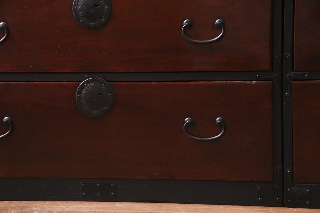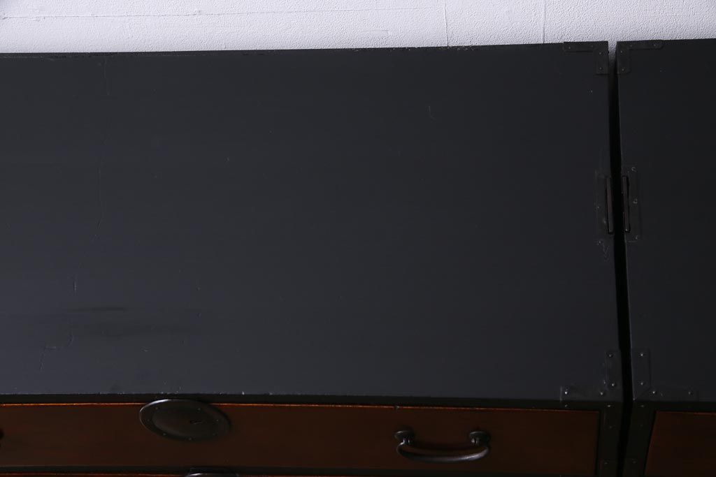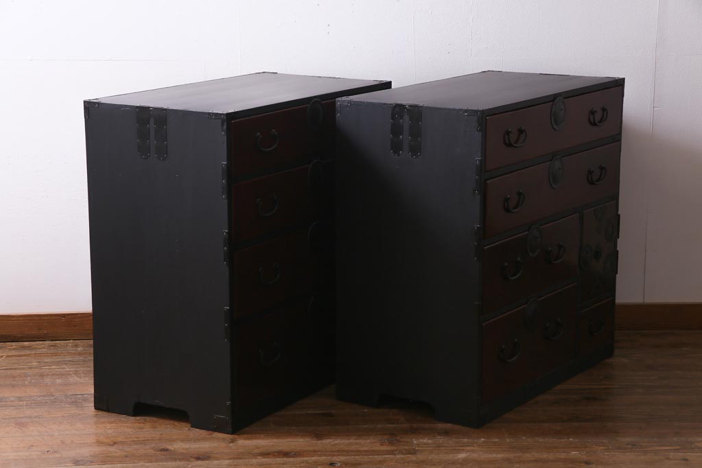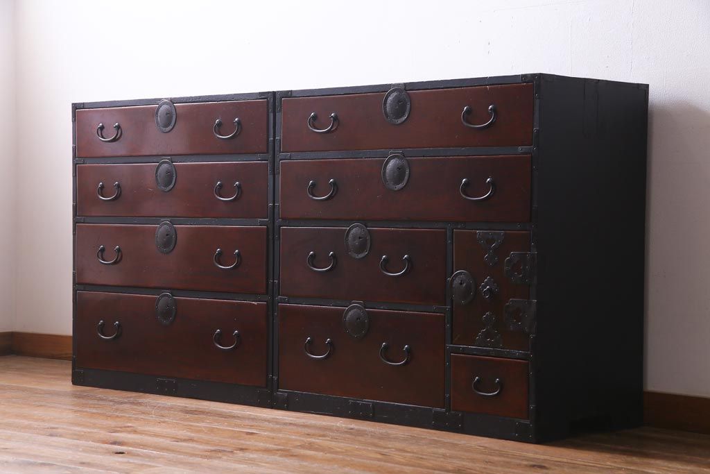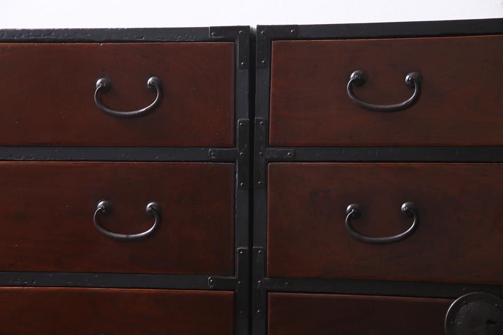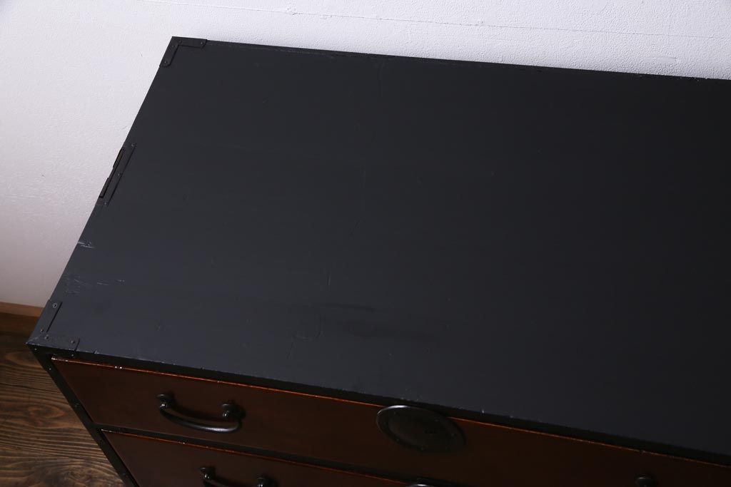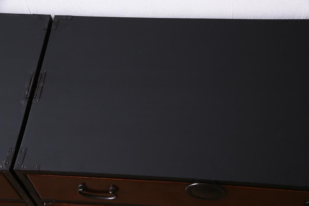 アンティーク家具 和製 前板ケヤキ材 マットなペイントがモダンな印象与える合わせ一間仙台箪笥(夫婦箪笥、衣装箪笥)