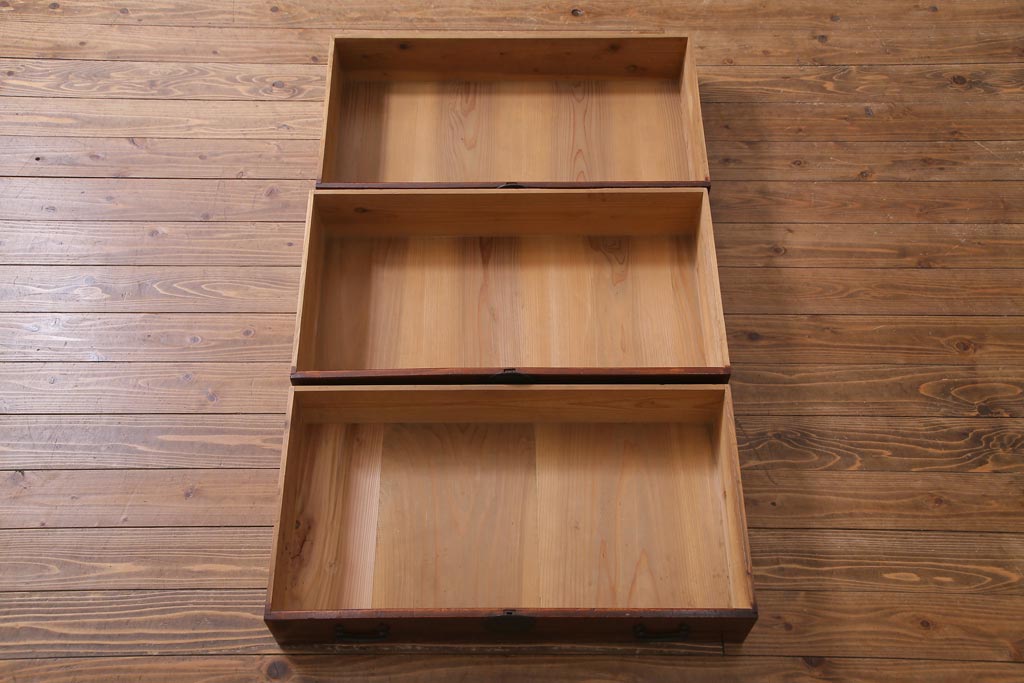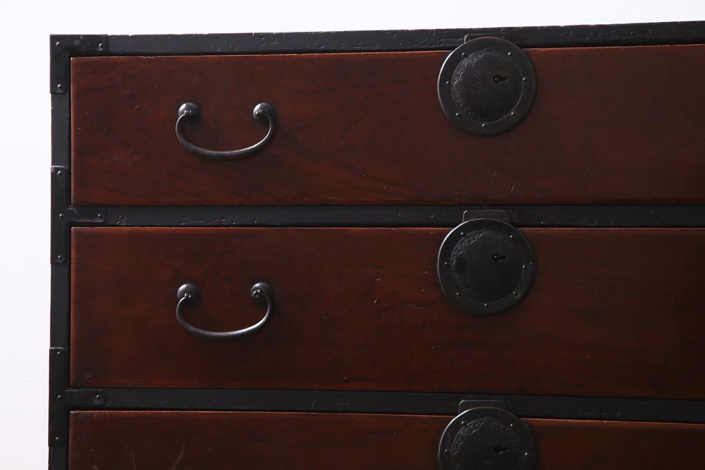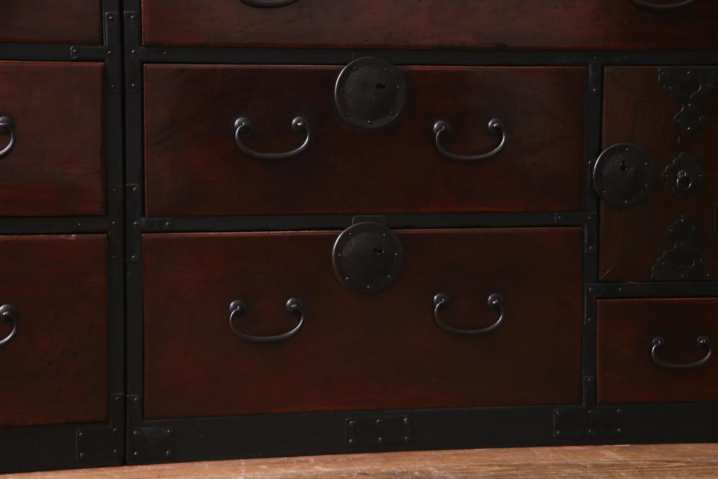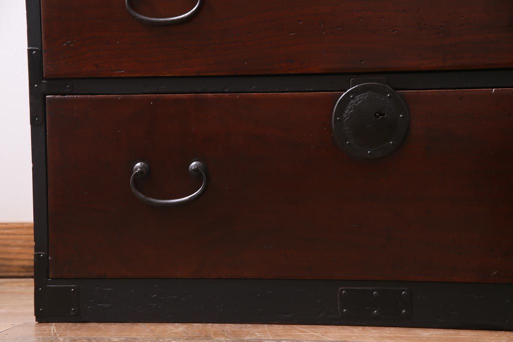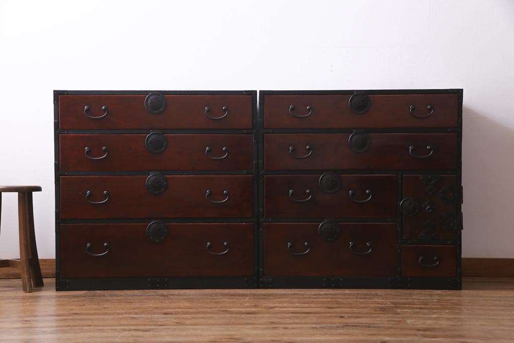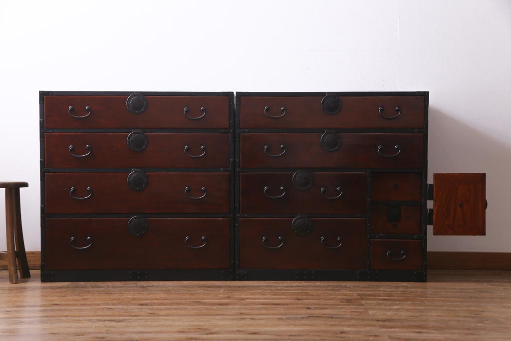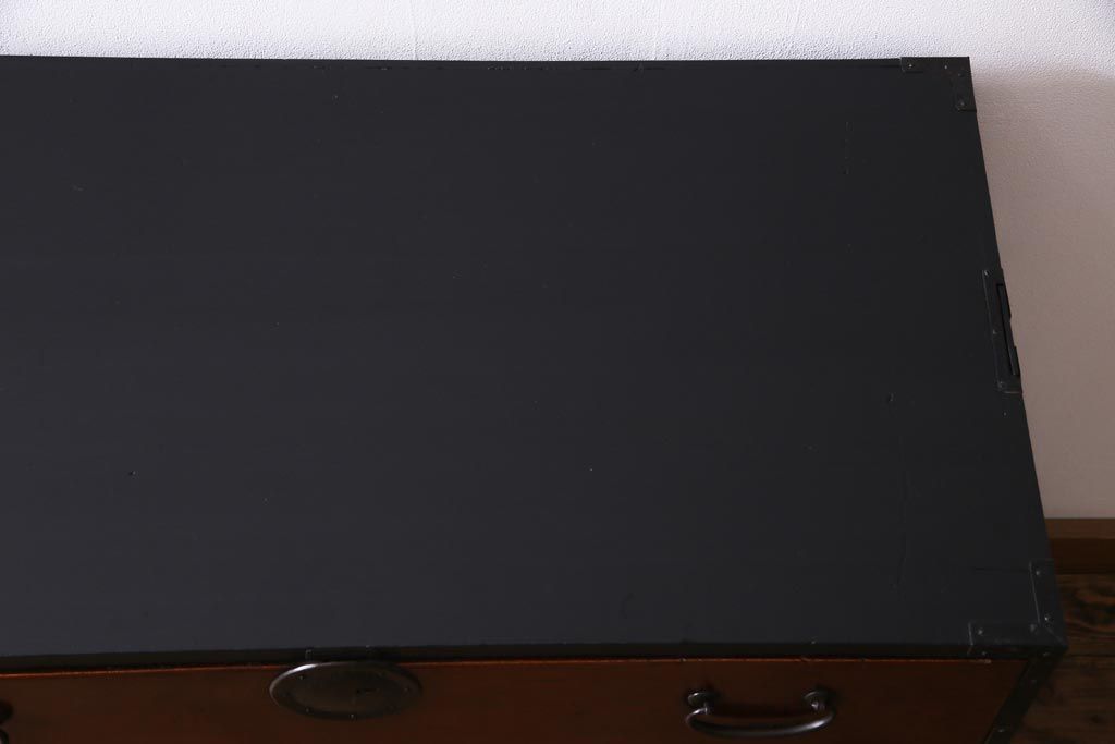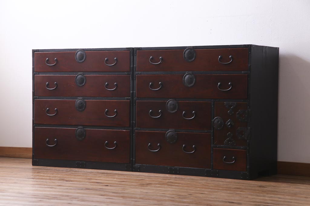アンティーク家具 和製 前板ケヤキ材 マットなペイントがモダンな印象与える合わせ一間仙台箪笥(夫婦箪笥、衣装箪笥)
