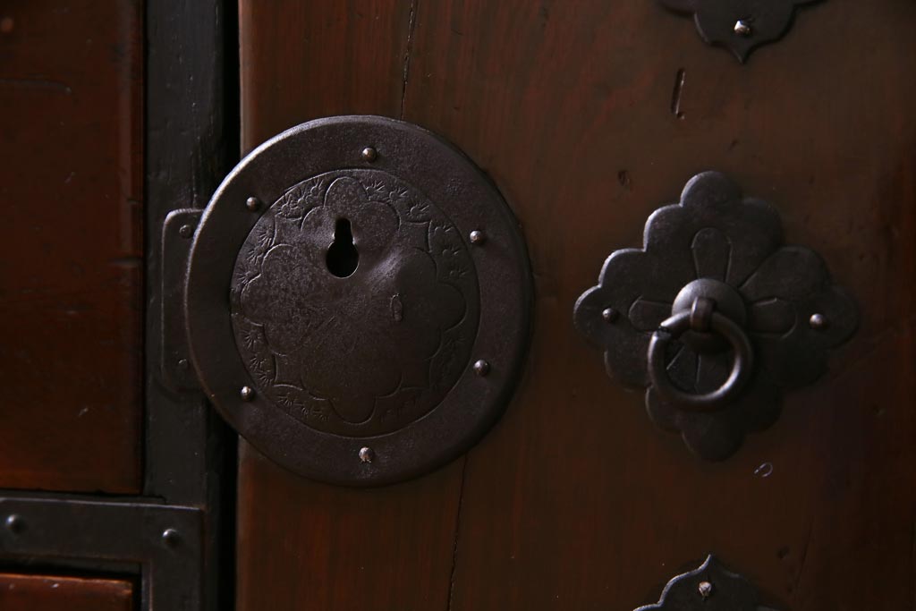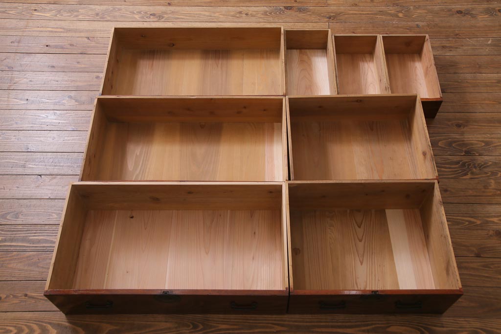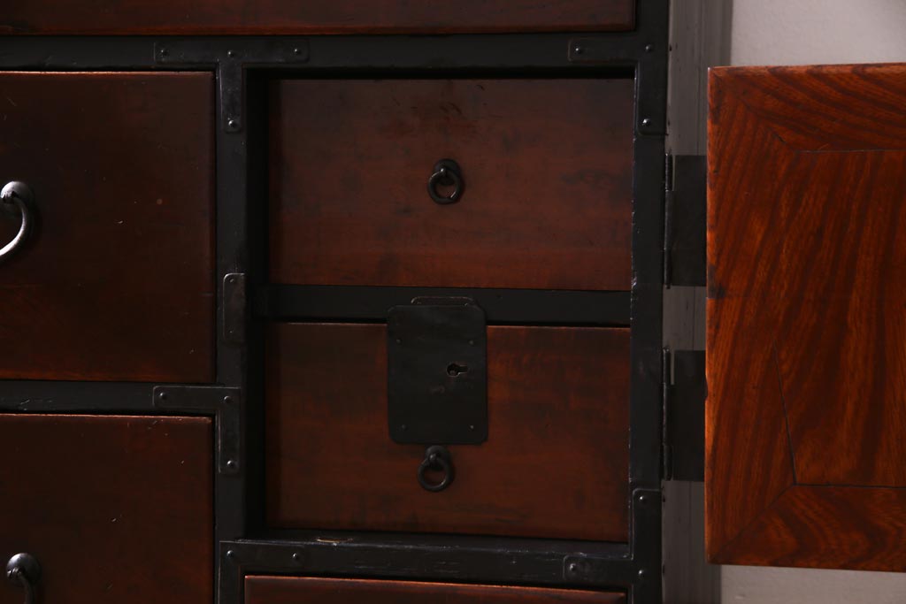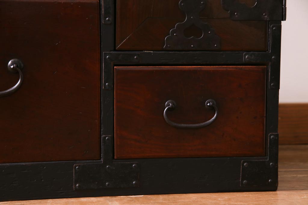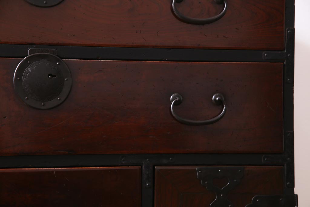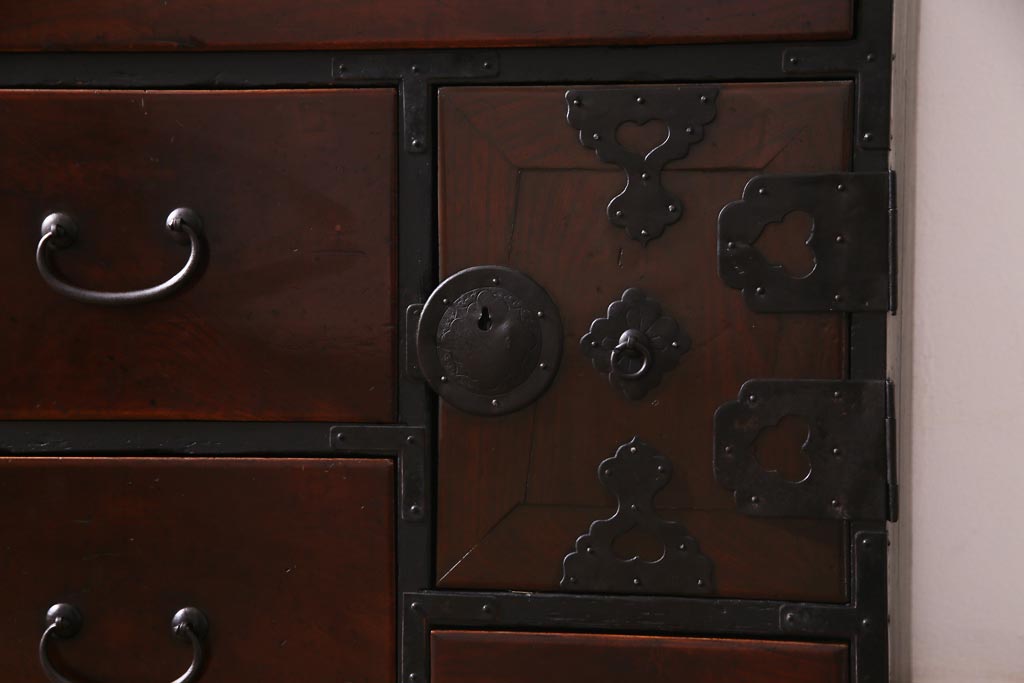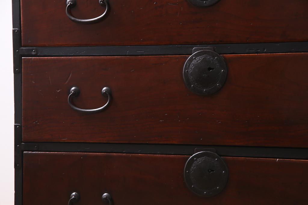 アンティーク家具 和製 前板ケヤキ材 マットなペイントがモダンな印象与える合わせ一間仙台箪笥(夫婦箪笥、衣装箪笥)