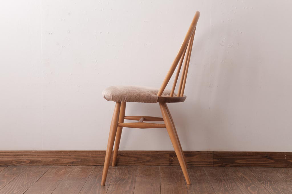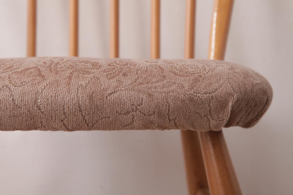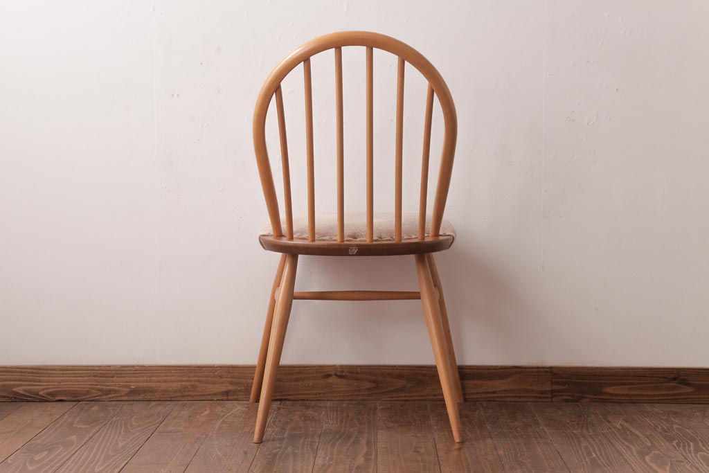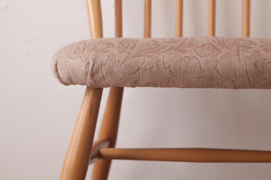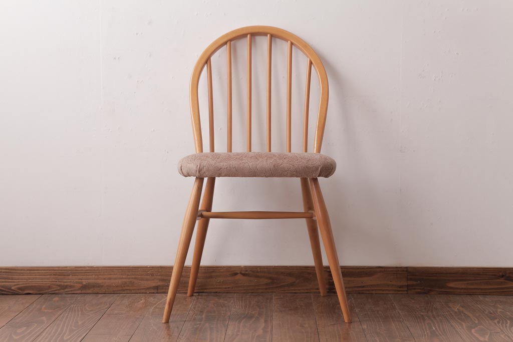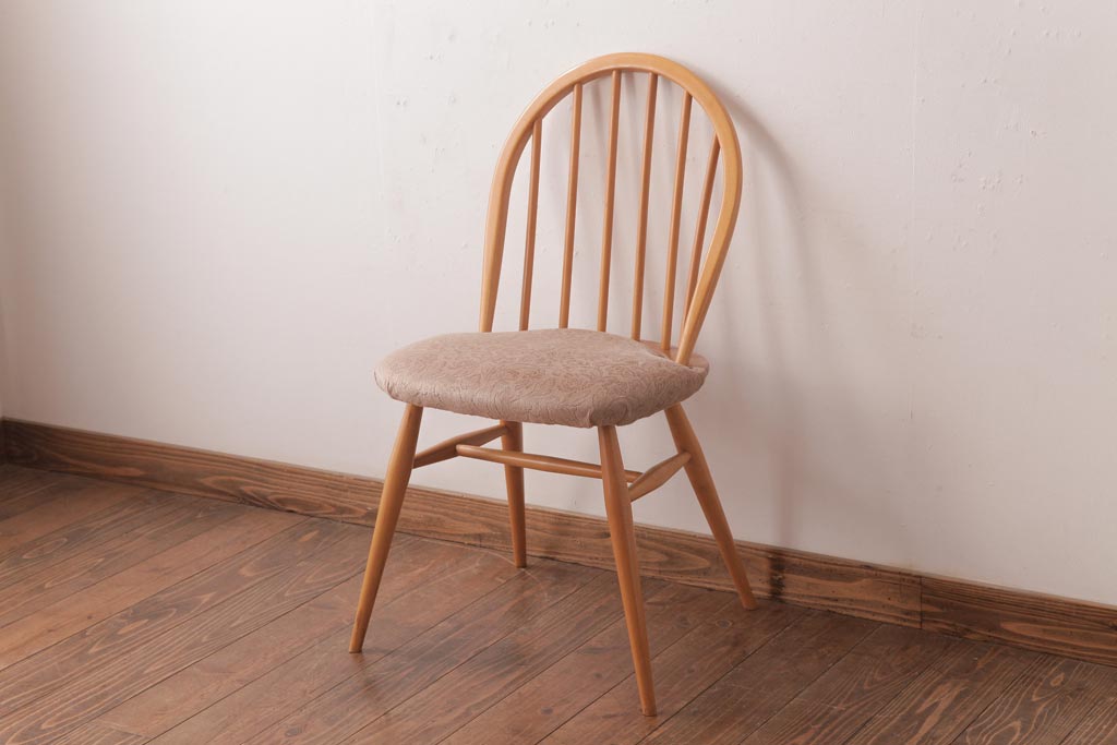 椅子・ベンチ> ウィンザーチェア > ヴィンテージ家具 イギリスビンテージ ERCOL(アーコール) フープバック 布張り座面のウィンザーチェア(ダイニングチェア、ワークチェア、椅子、ウインザーチェア)