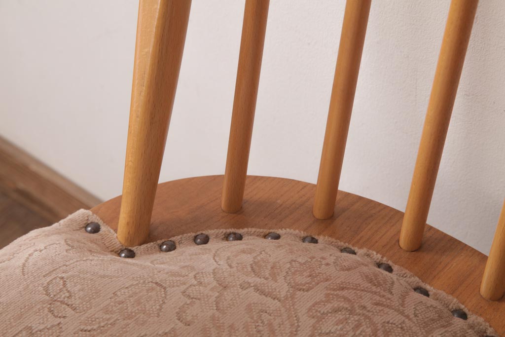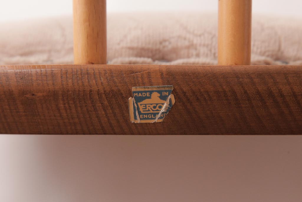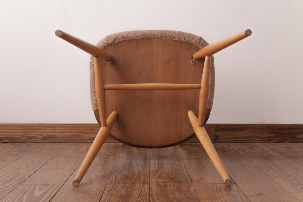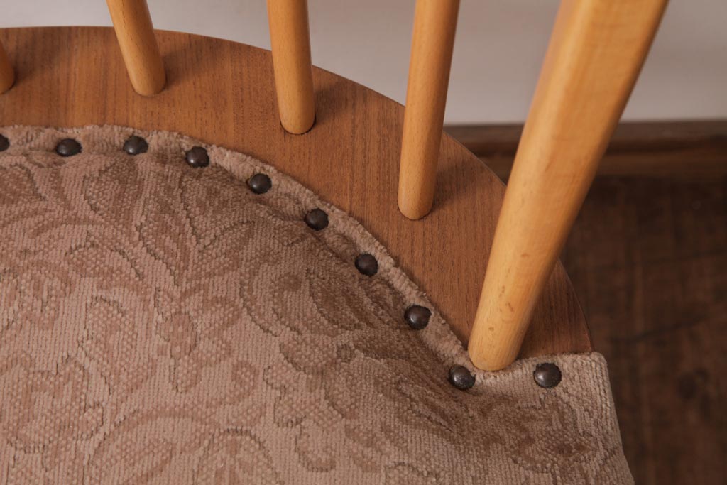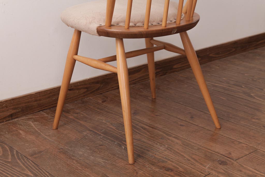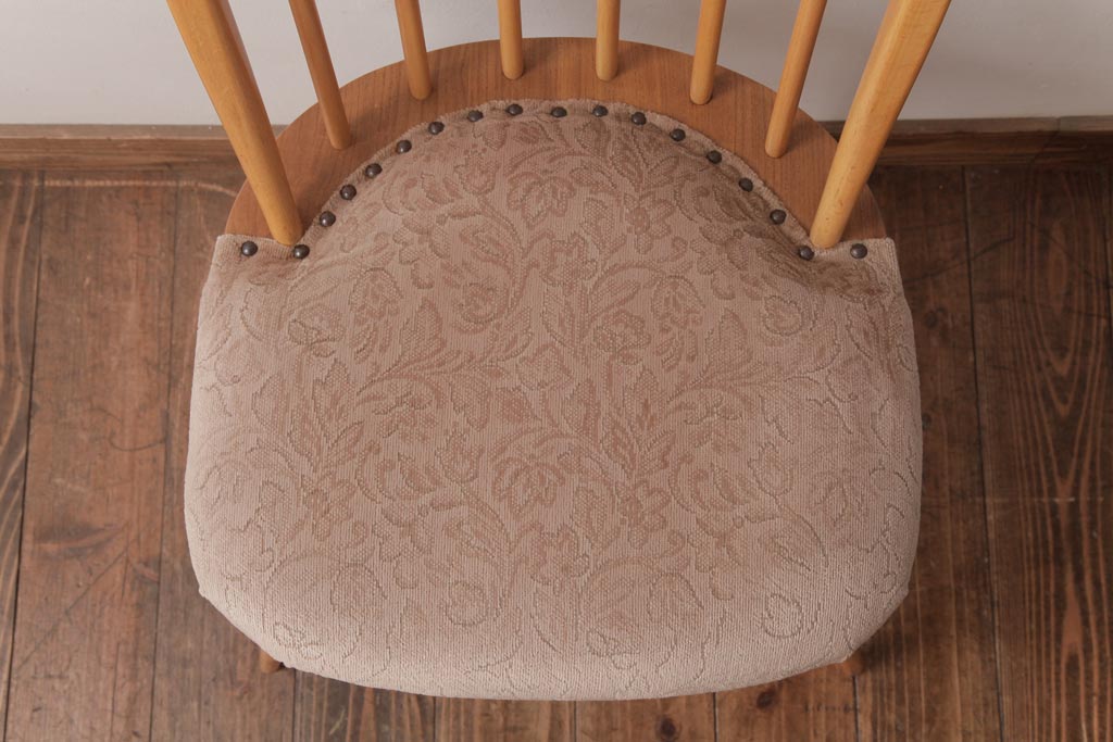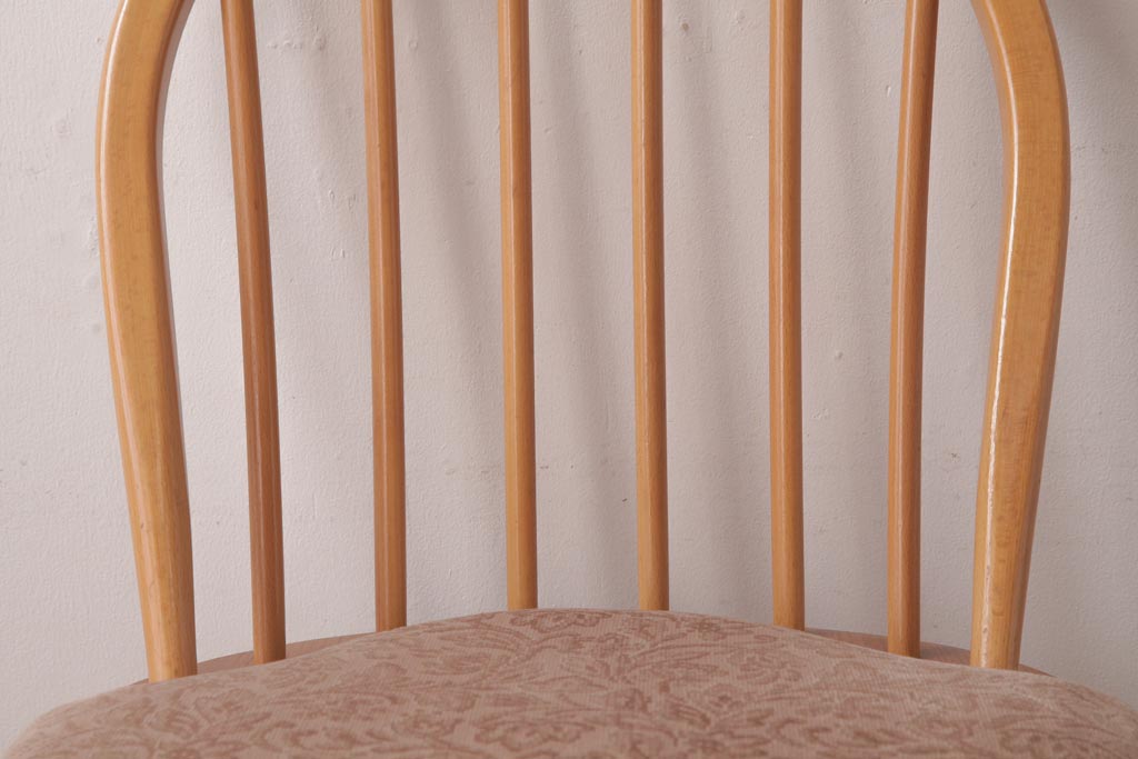 椅子・ベンチ> ウィンザーチェア > ヴィンテージ家具 イギリスビンテージ ERCOL(アーコール) フープバック 布張り座面のウィンザーチェア(ダイニングチェア、ワークチェア、椅子、ウインザーチェア)