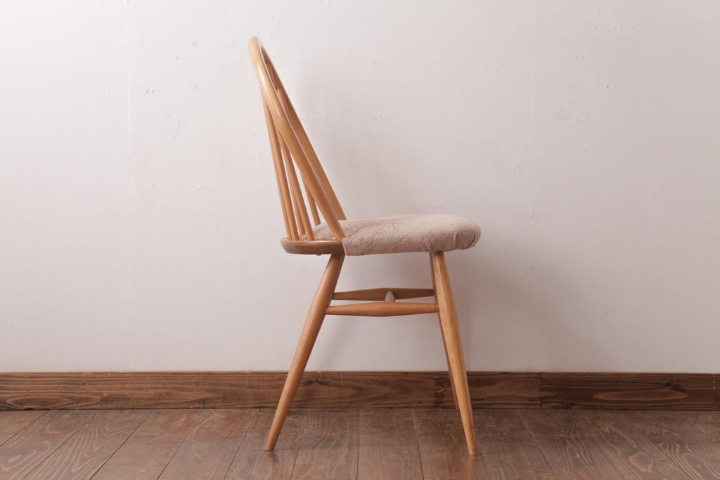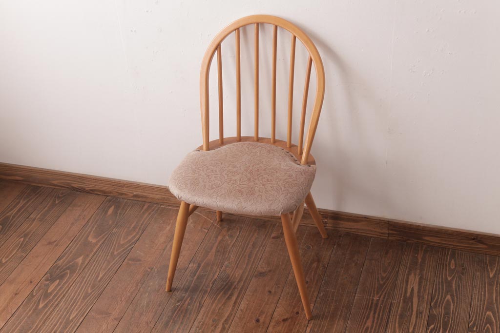 ヴィンテージ家具 イギリスビンテージ ERCOL(アーコール) フープバック 布張り座面のウィンザーチェア(ダイニングチェア、ワークチェア、椅子、ウインザーチェア)