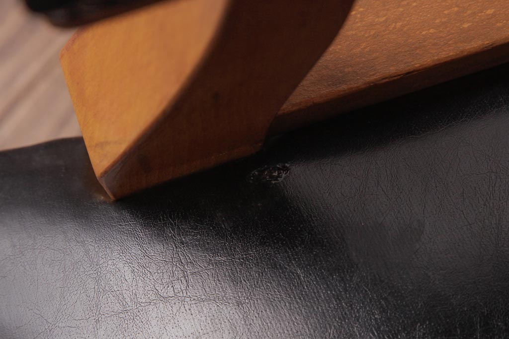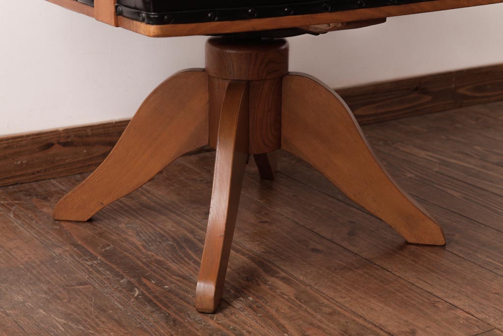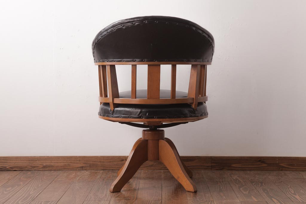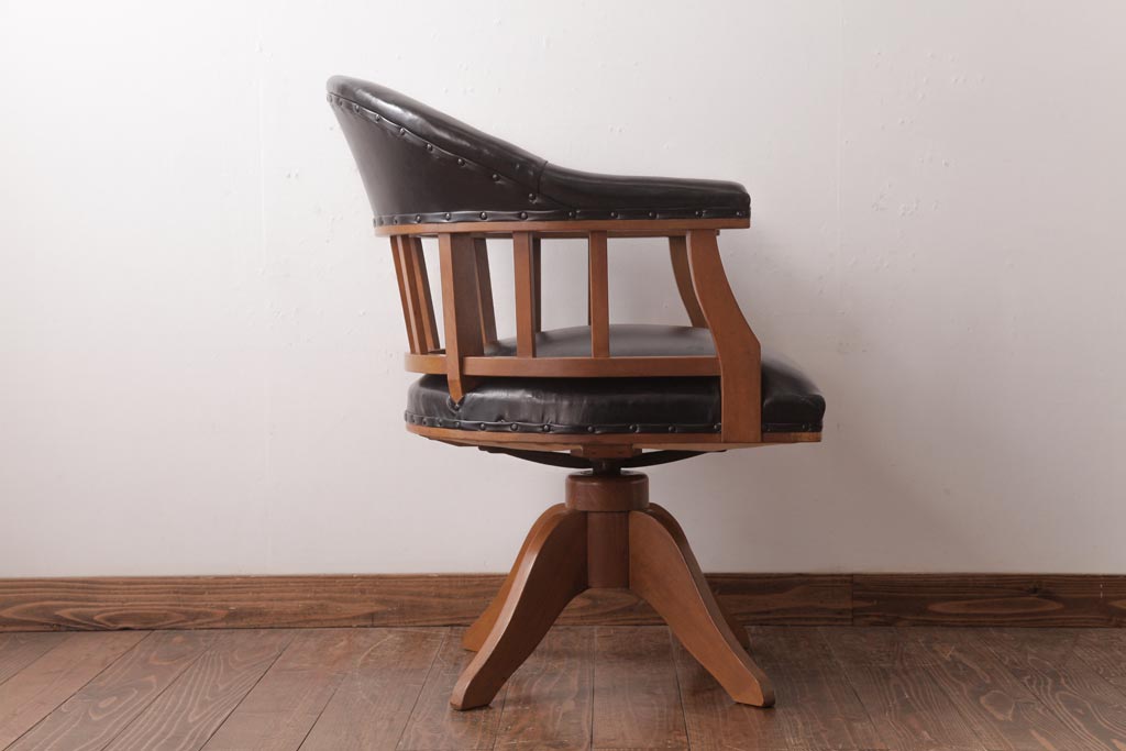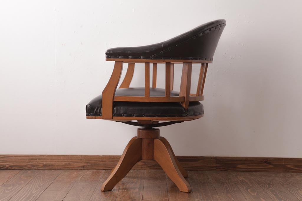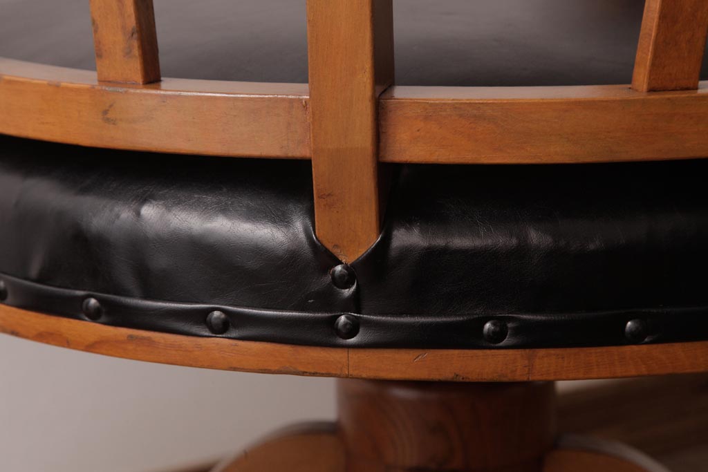 アンティーク家具 ナラ材 黒いレザーと木色のコントラストがお洒落なドクターチェア(回転椅子、アームチェア)