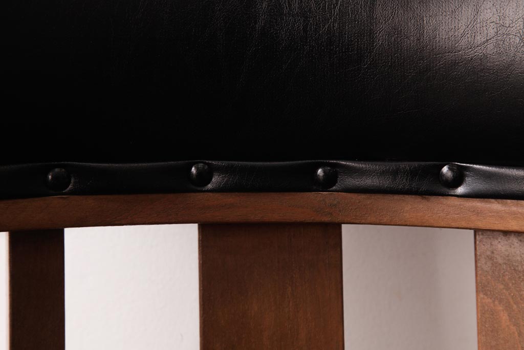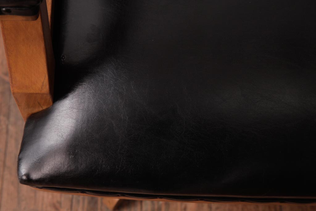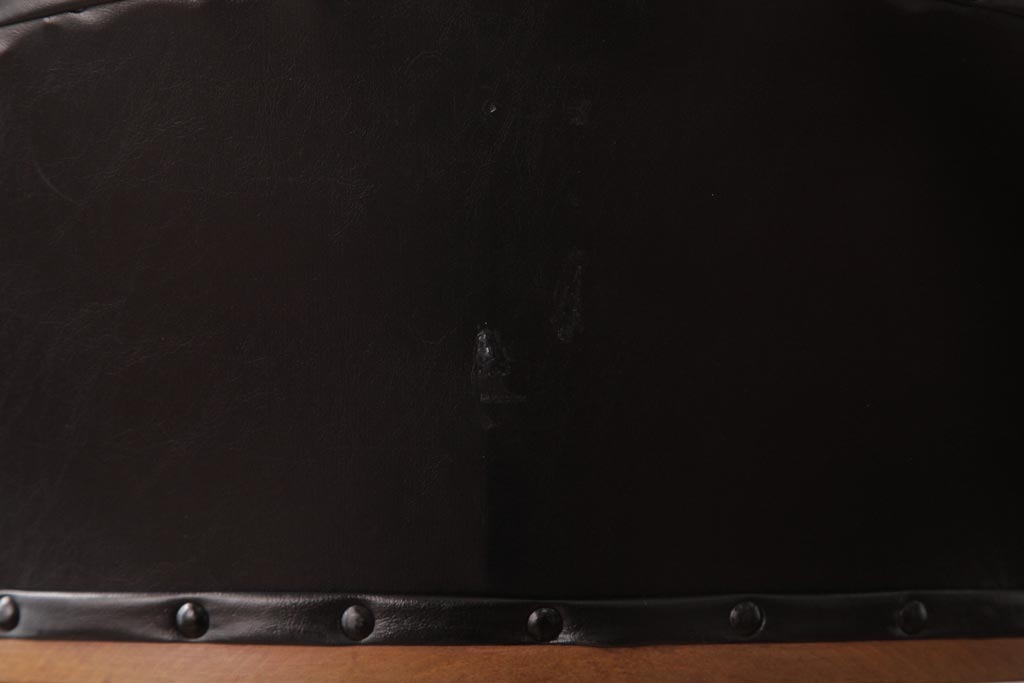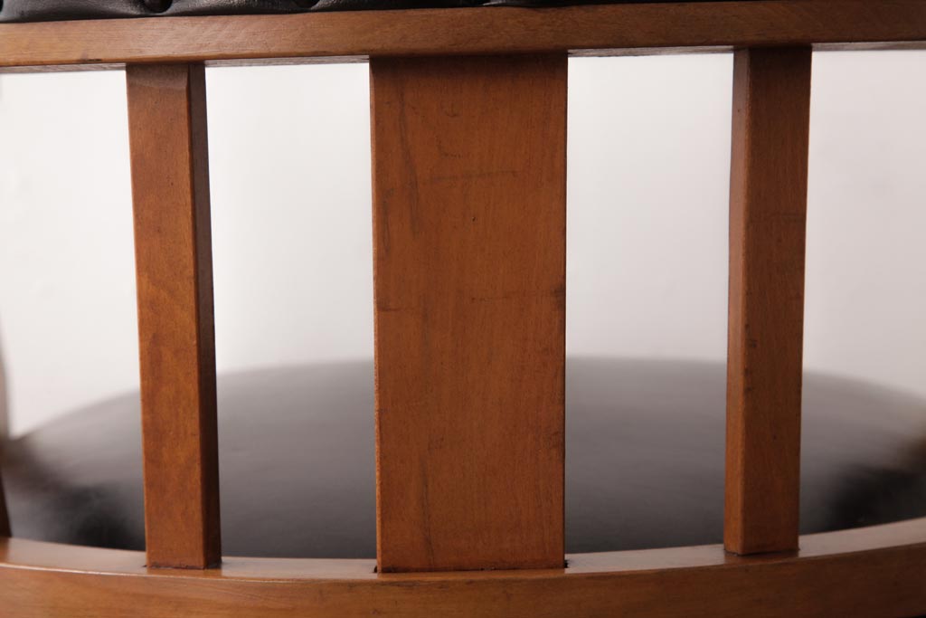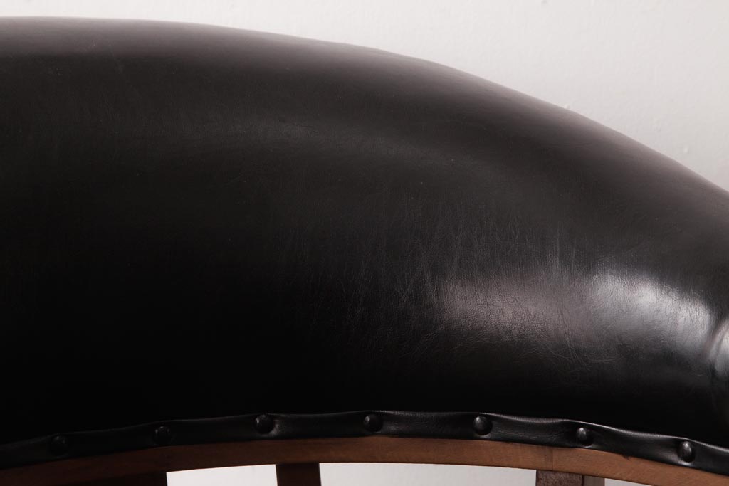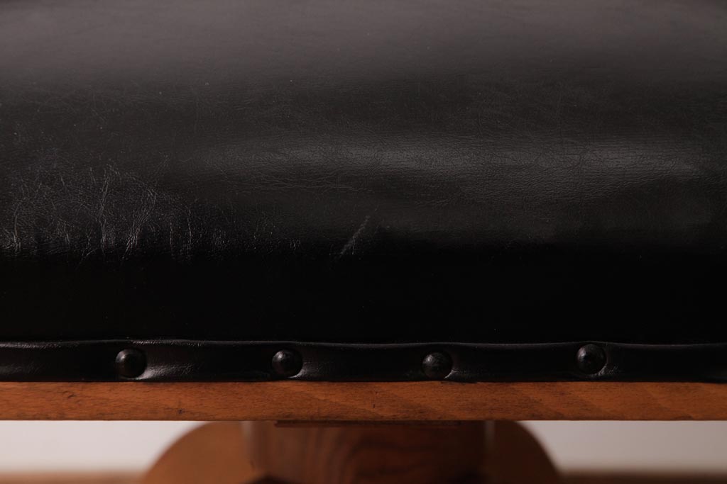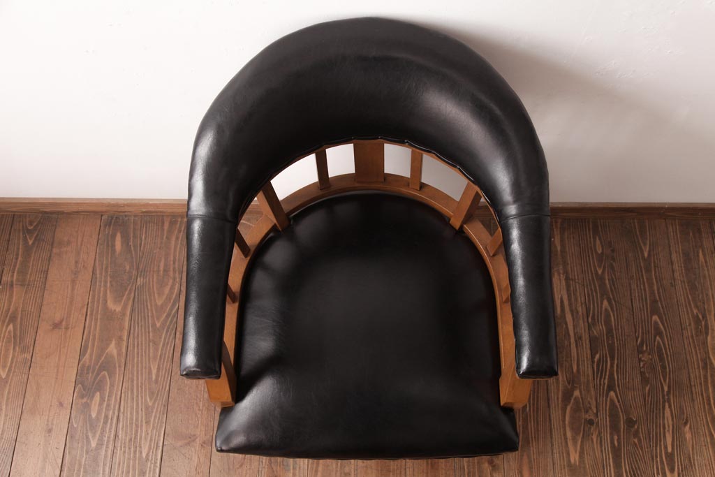 アンティーク家具 ナラ材 黒いレザーと木色のコントラストがお洒落なドクターチェア(回転椅子、アームチェア)です。