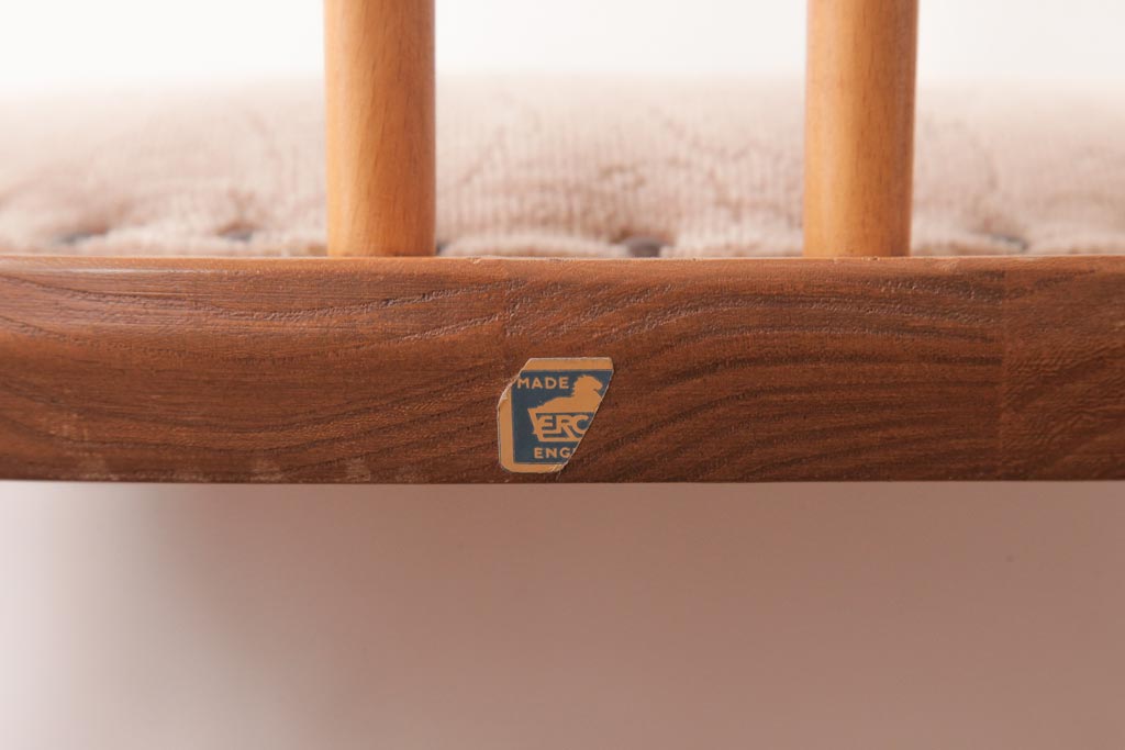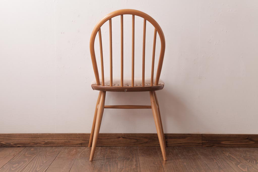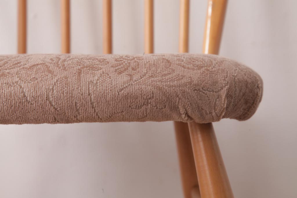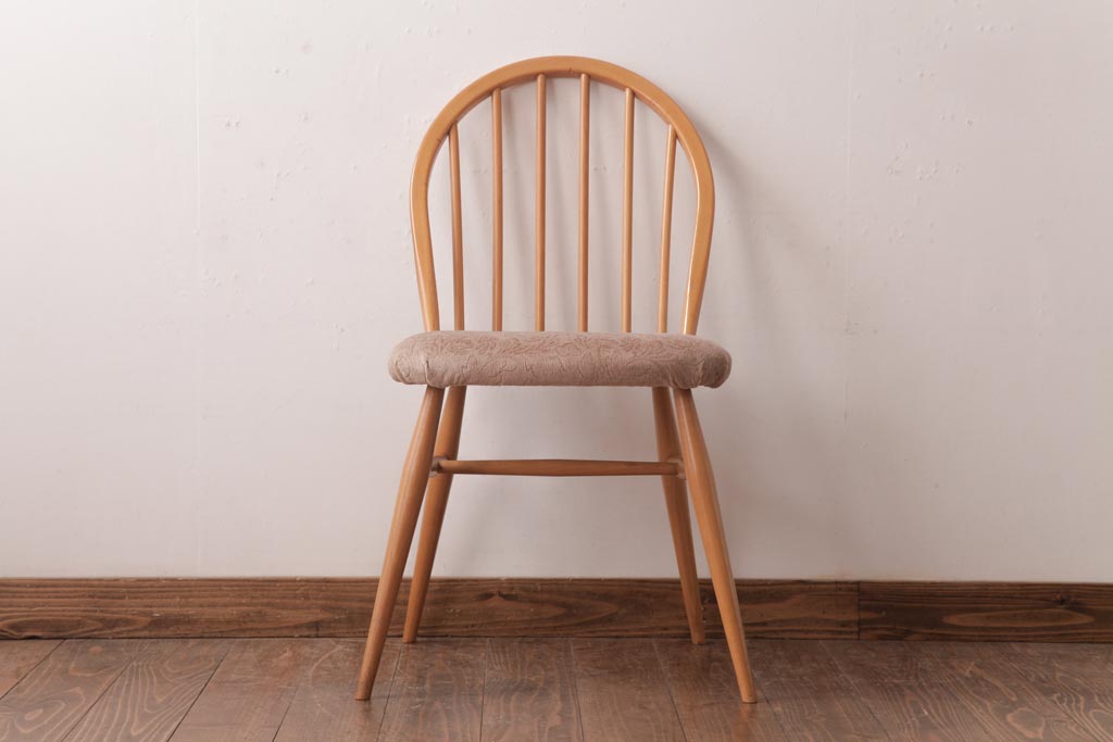椅子・ベンチ> ウィンザーチェア > ヴィンテージ家具 イギリスビンテージ ERCOL(アーコール) フープバック 布張り座面のウィンザーチェア(ダイニングチェア、ワークチェア、椅子、ウインザーチェア)(1)