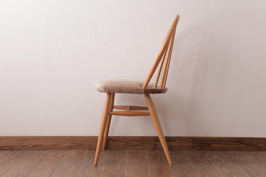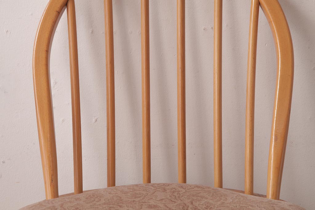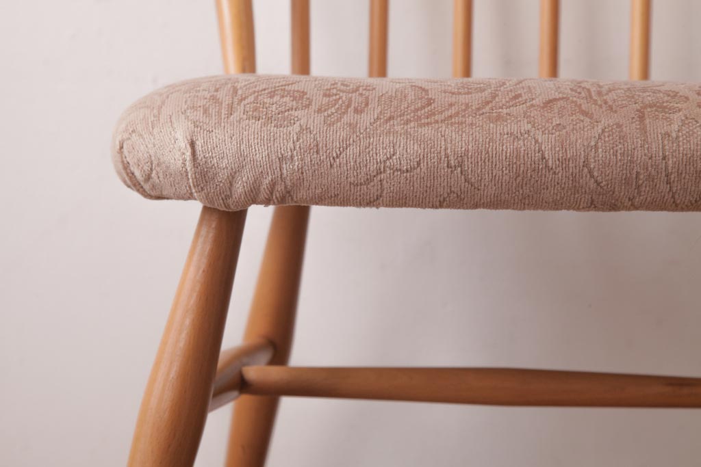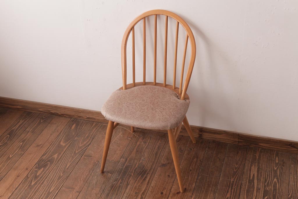 ヴィンテージ家具 イギリスビンテージ ERCOL(アーコール) フープバック 布張り座面のウィンザーチェア(ダイニングチェア、ワークチェア、椅子、ウインザーチェア)(1)