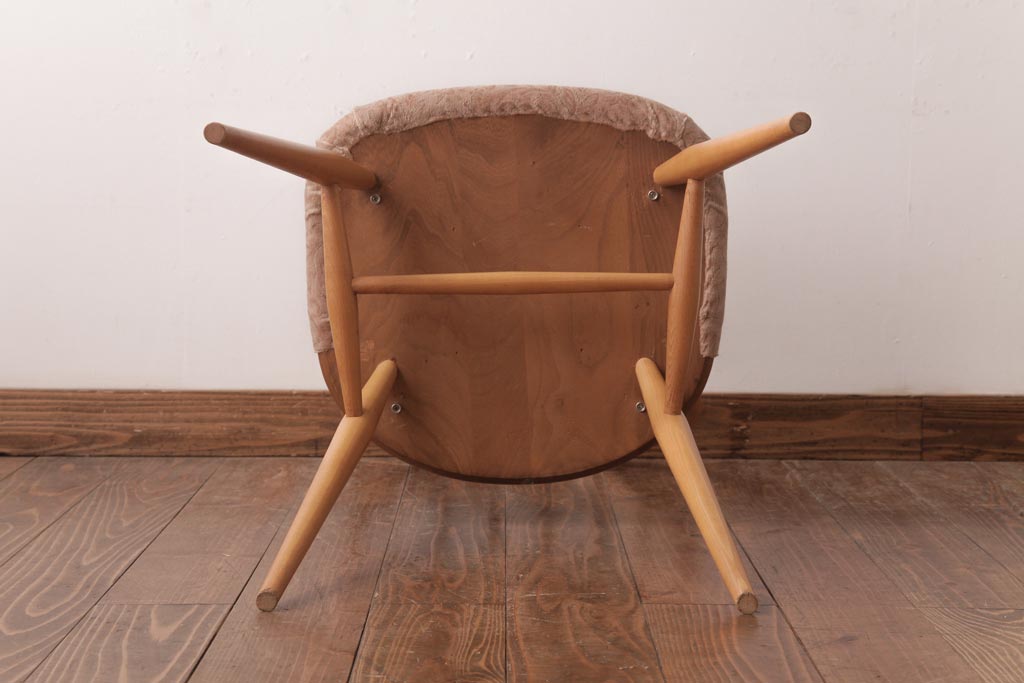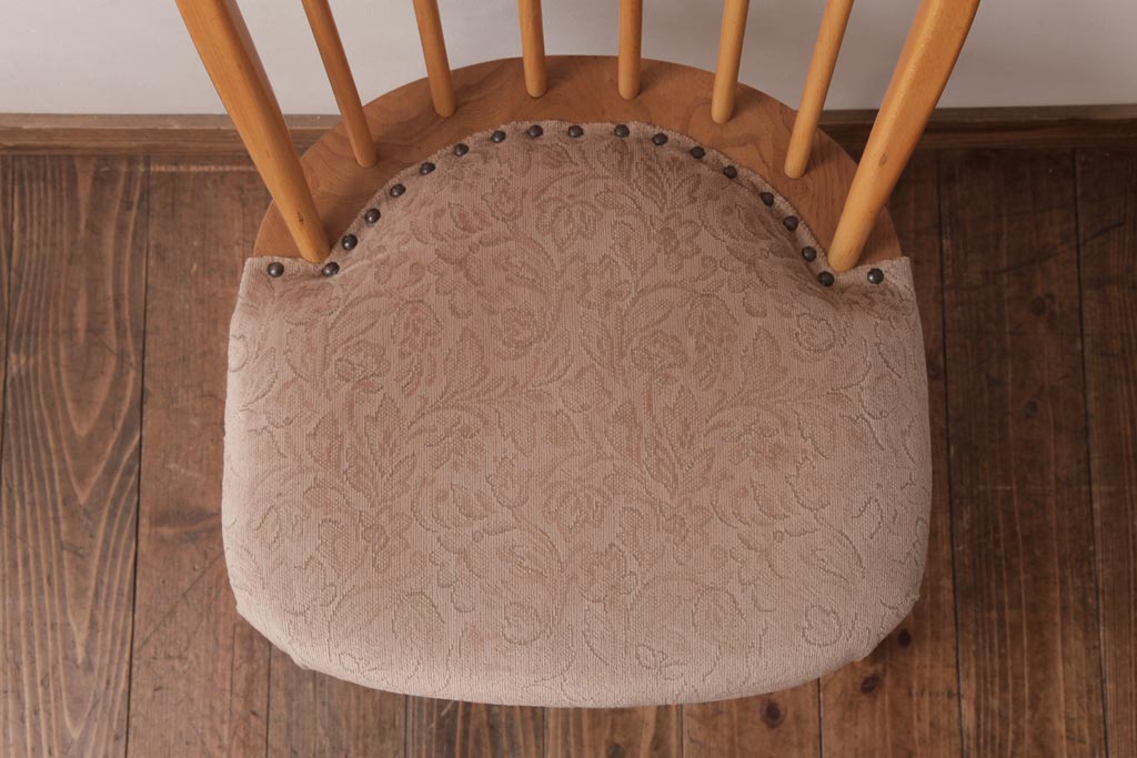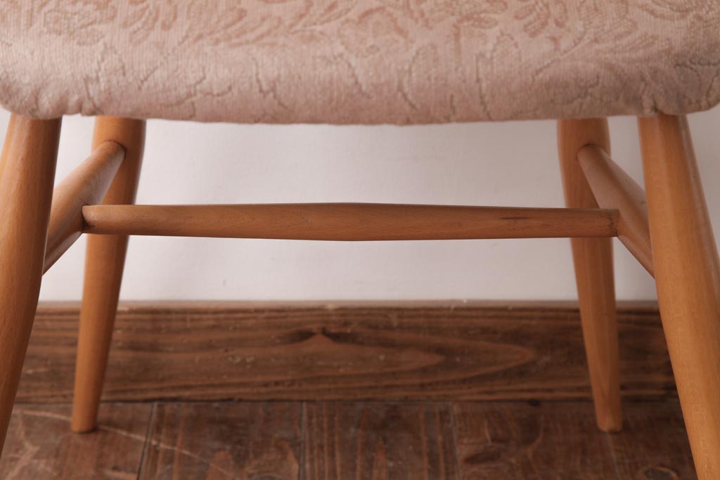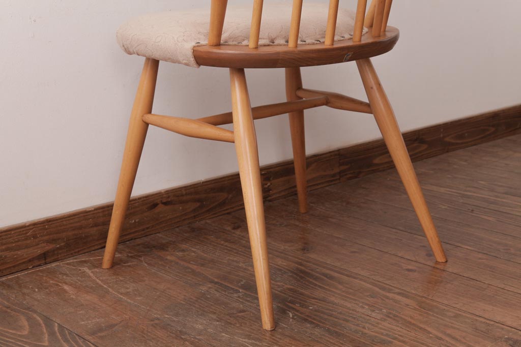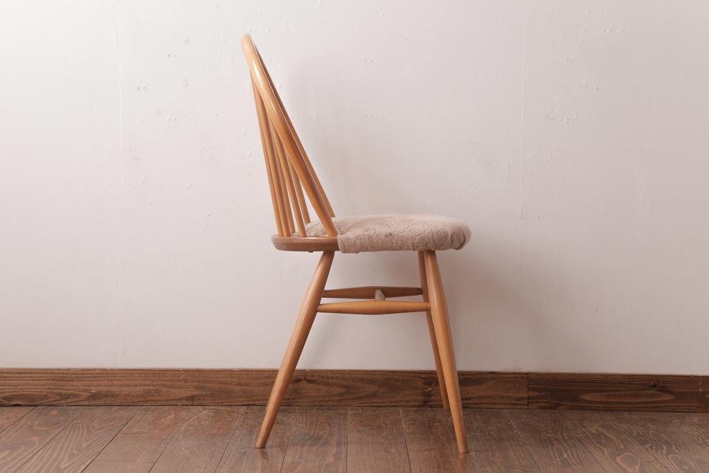 ヴィンテージ家具 イギリスビンテージ ERCOL(アーコール) フープバック 布張り座面のウィンザーチェア(ダイニングチェア、ワークチェア、椅子、ウインザーチェア)(1)