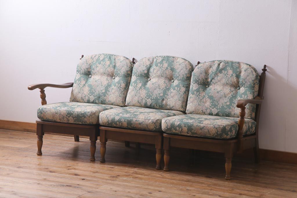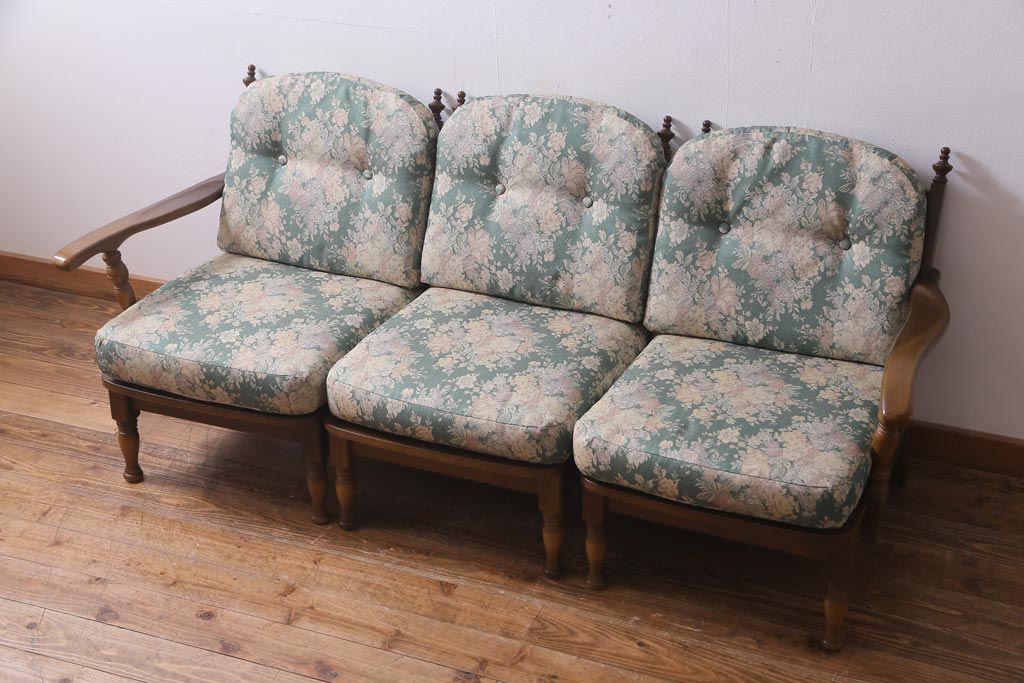 中古 飛騨産業 キツツキマーク 穂高 エレガントな雰囲気漂う3人掛けソファ(アームチェア、リビングソファ)です。
