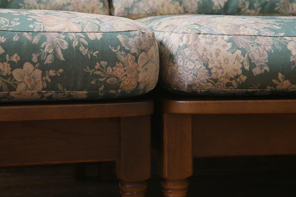 クッション(座面内スポンジ)はそのままですが、座面生地は当店にて張り替えておりますので、キレイな状態です。