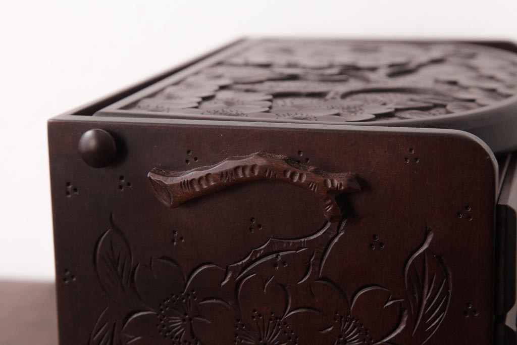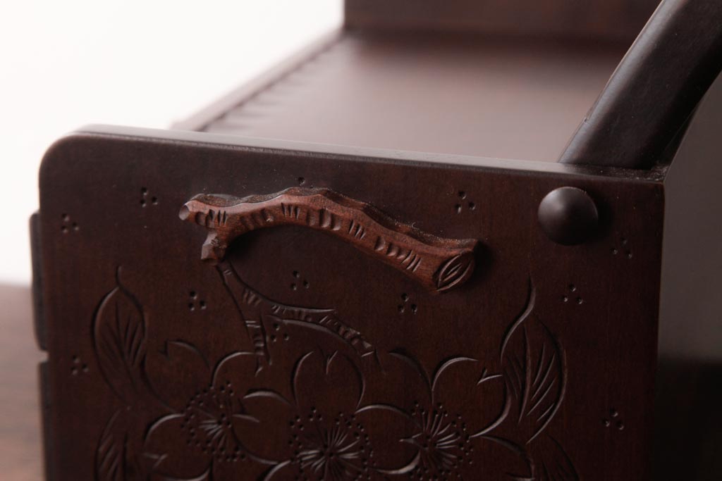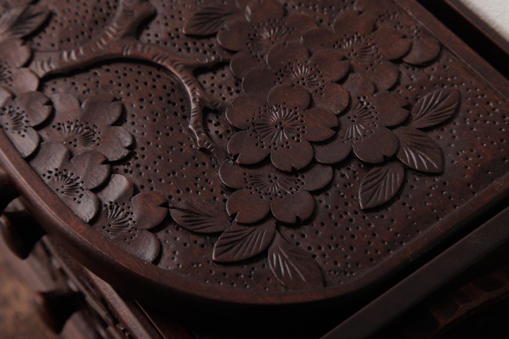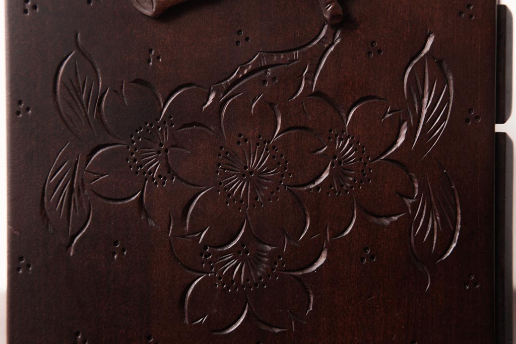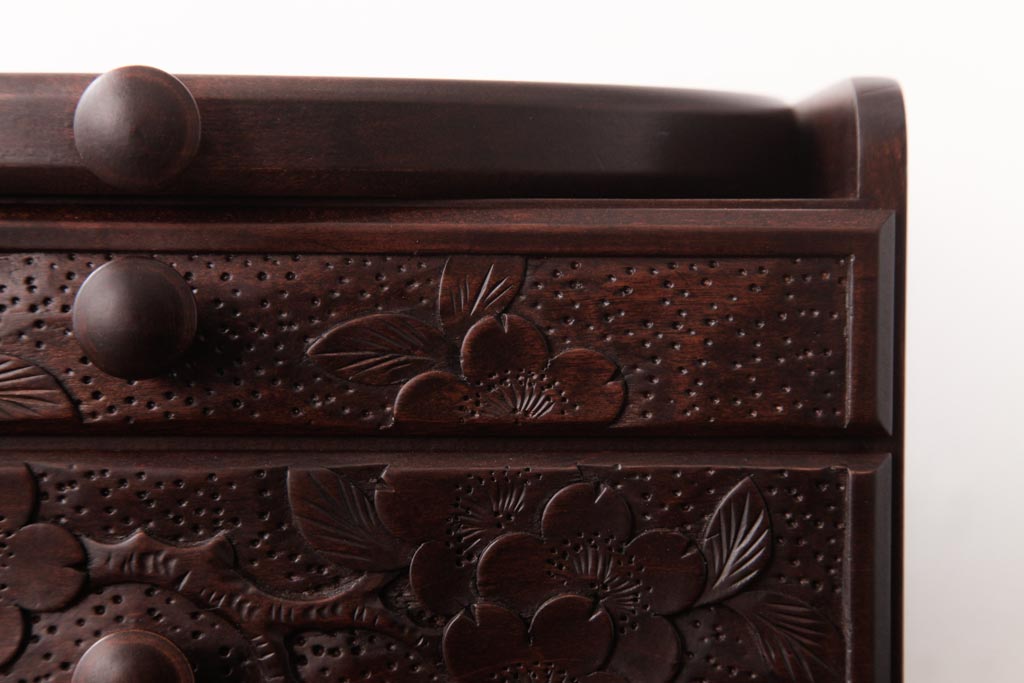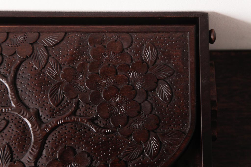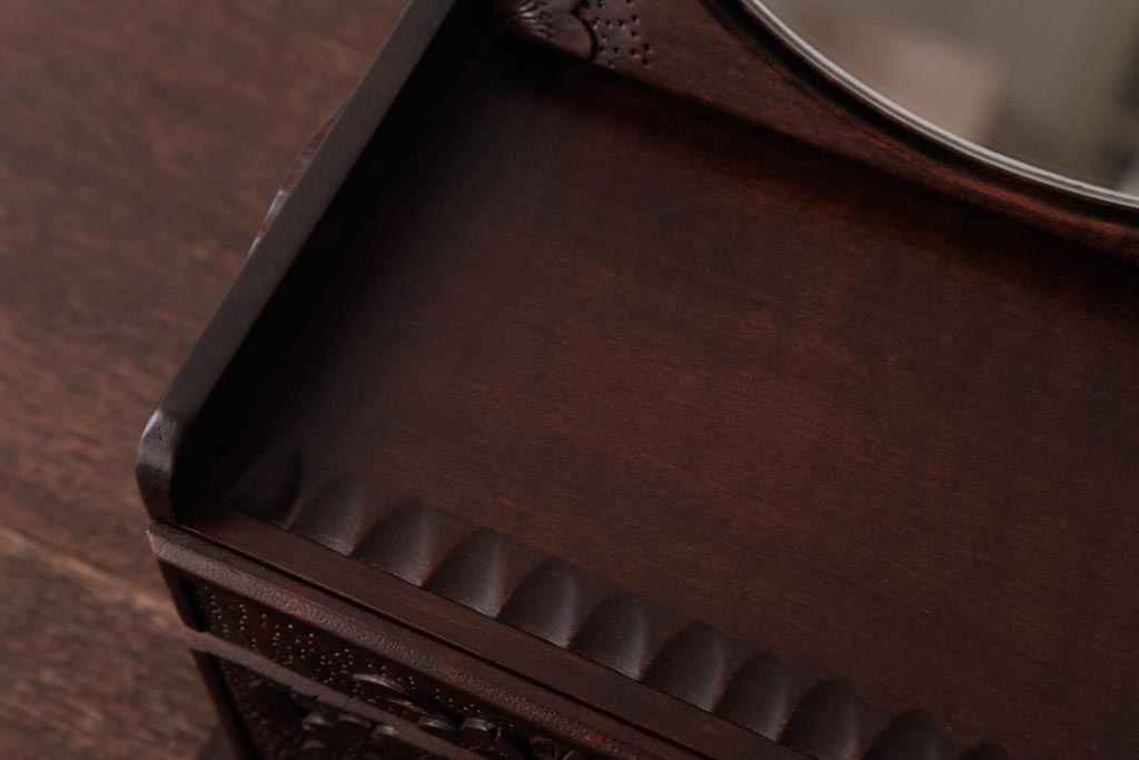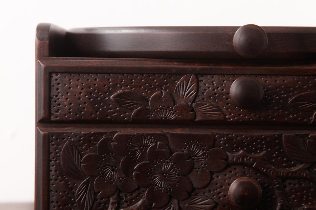 中古 軽井沢彫り 大阪屋家具店 桜の彫刻が美しい姫鏡台(卓上ドレッサー、メイクボックス)