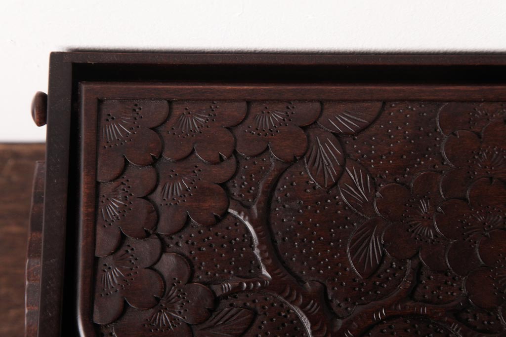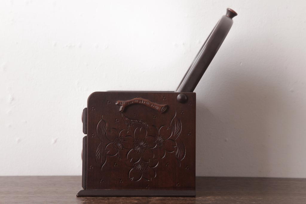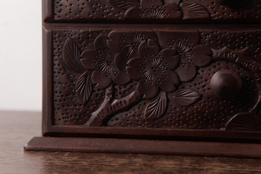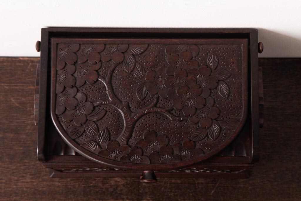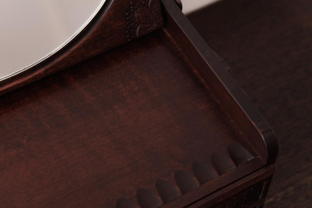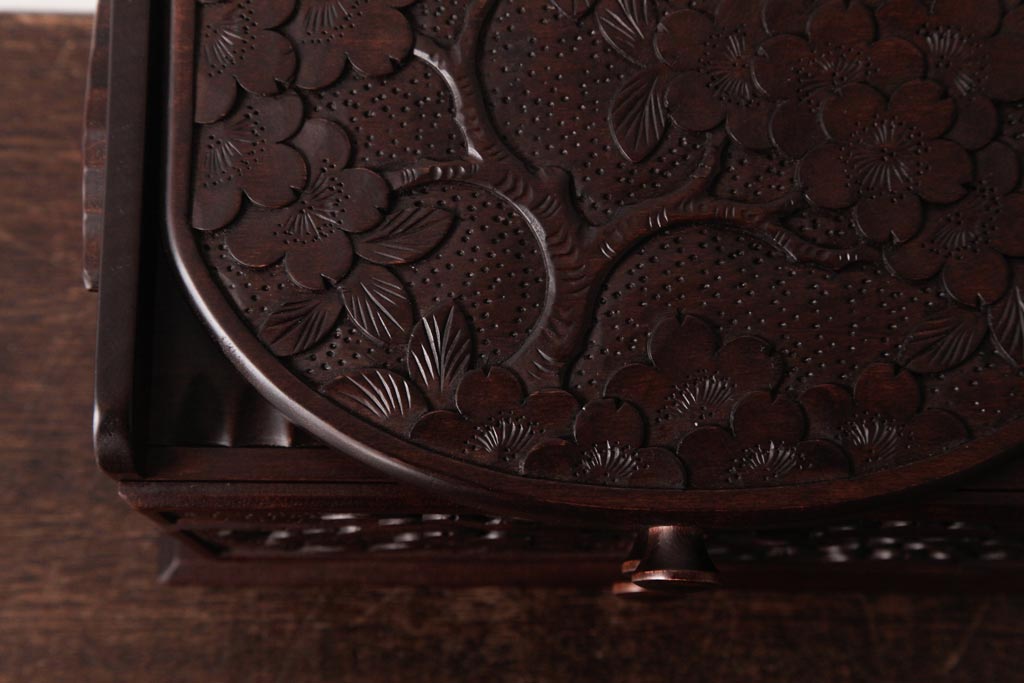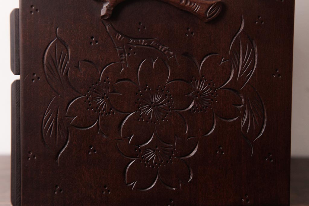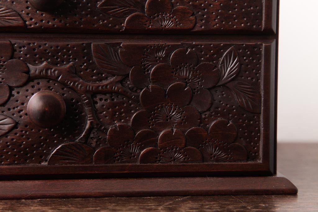 中古 軽井沢彫り 大阪屋家具店 桜の彫刻が美しい姫鏡台(卓上ドレッサー、メイクボックス)