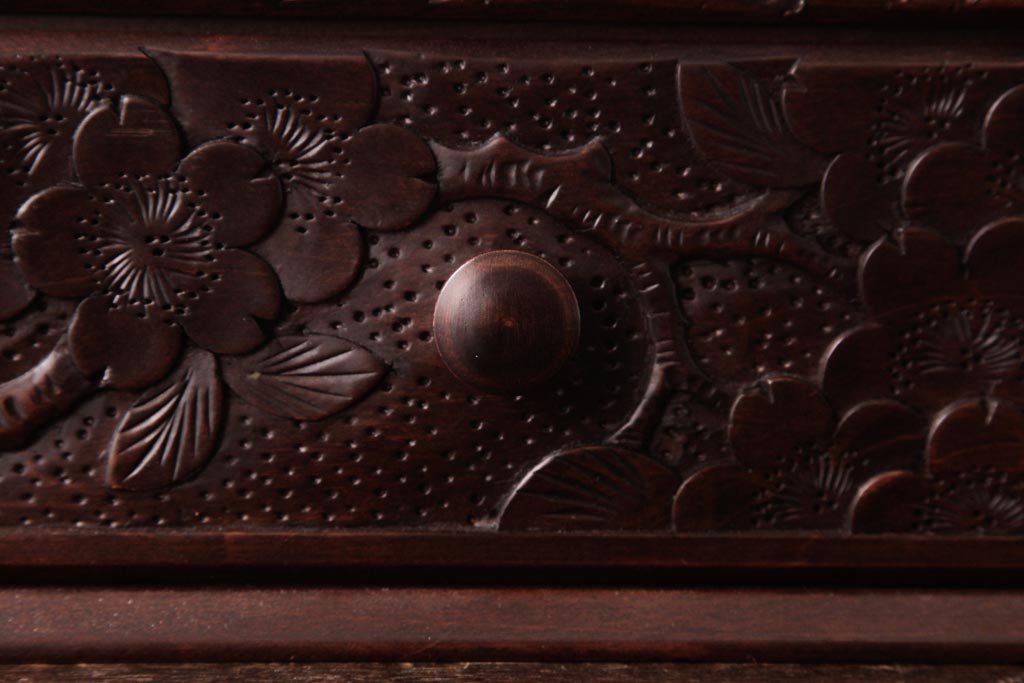 桜の彫刻が美しく、寝室のデスクや