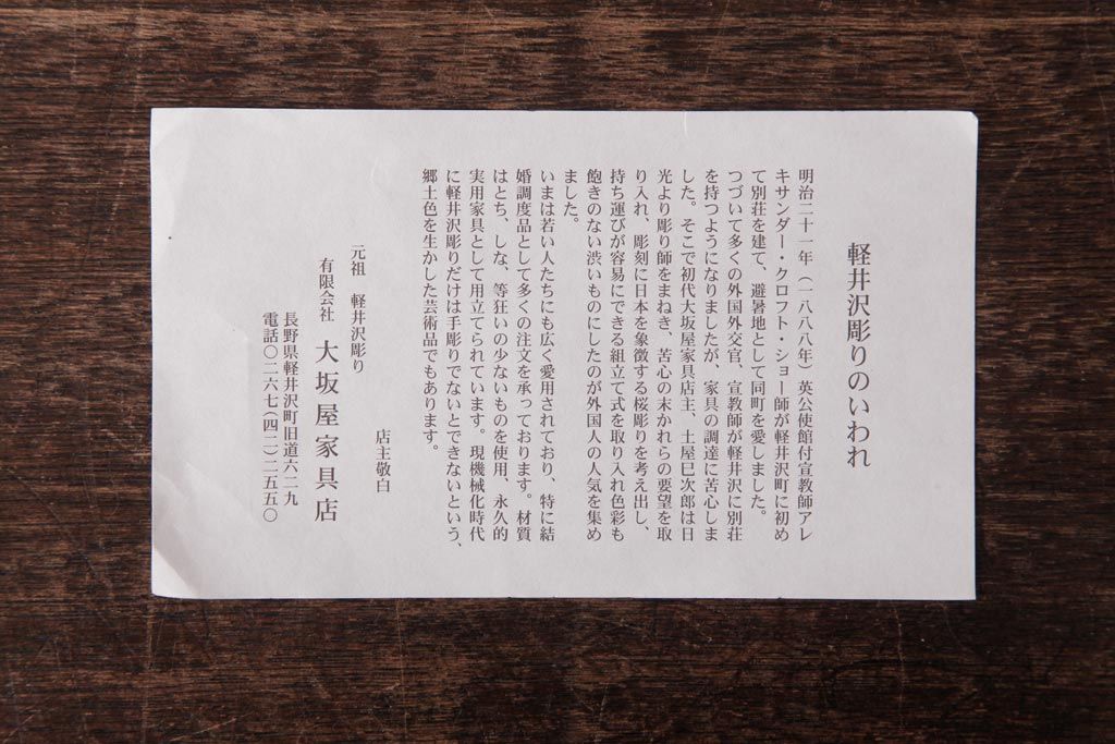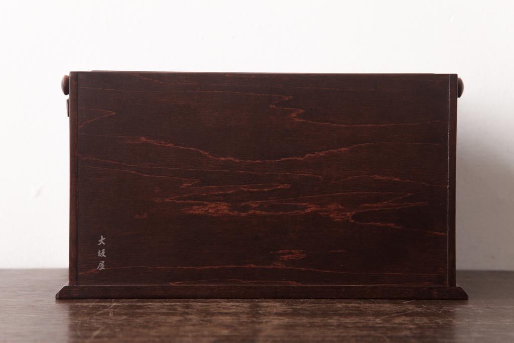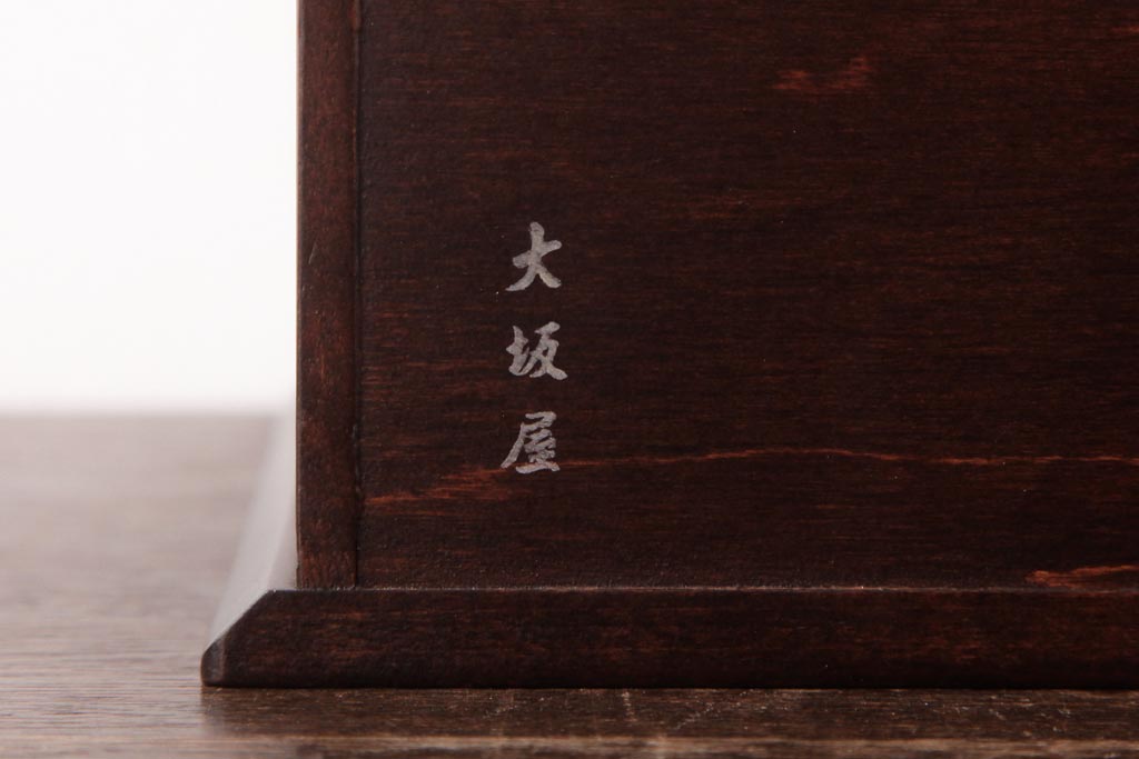 中古 軽井沢彫り 大阪屋家具店 桜の彫刻が美しい姫鏡台(卓上ドレッサー、メイクボックス)です。