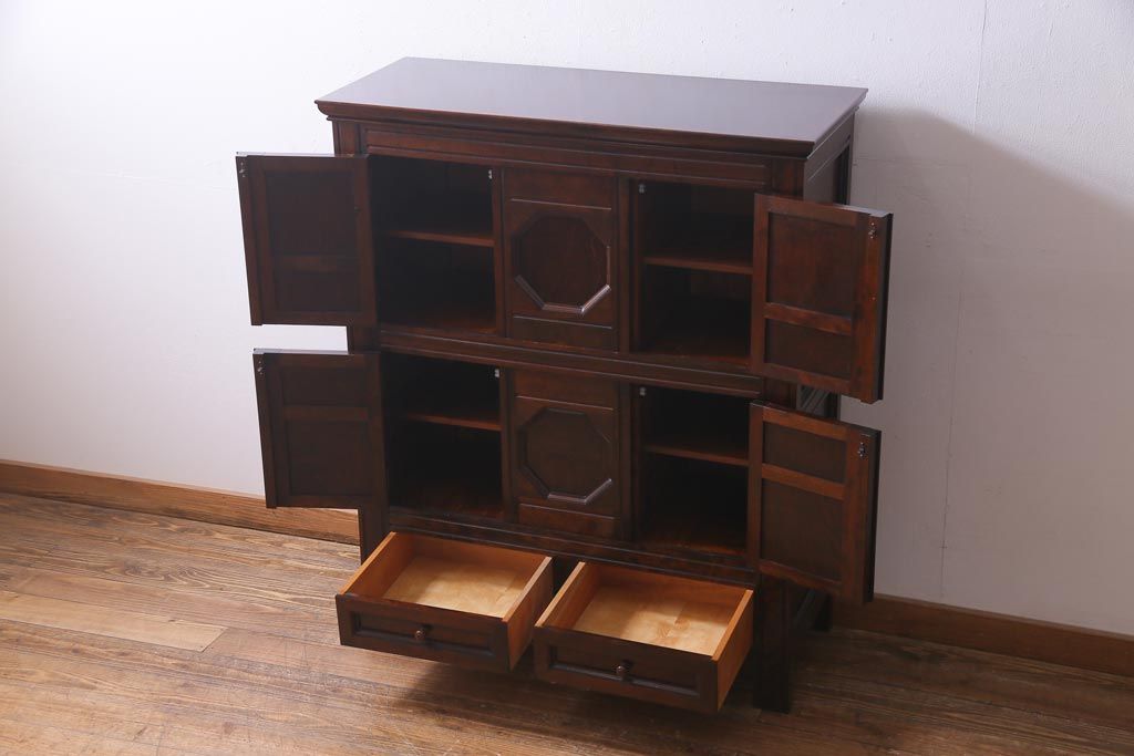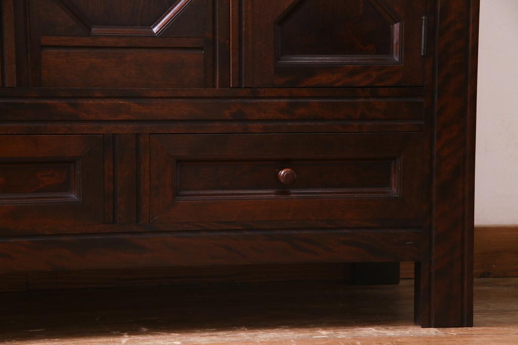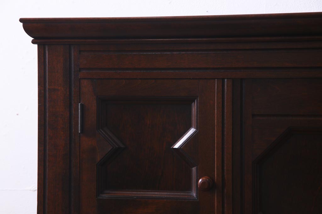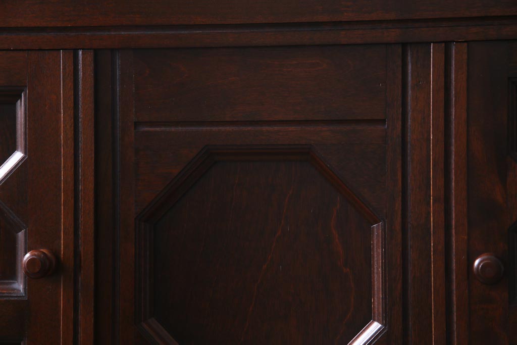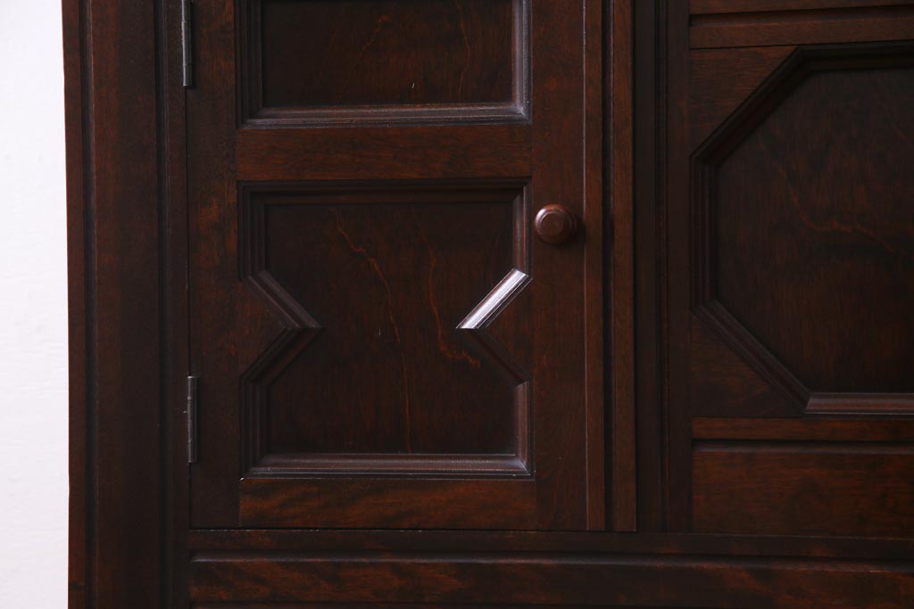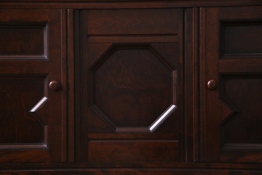 中古 松本民芸家具 B型サイドボード ジャコビアン様式がクラシカルなキャビネット(収納棚、戸棚)(定価約51万円)