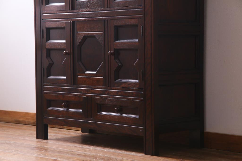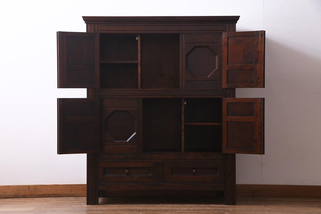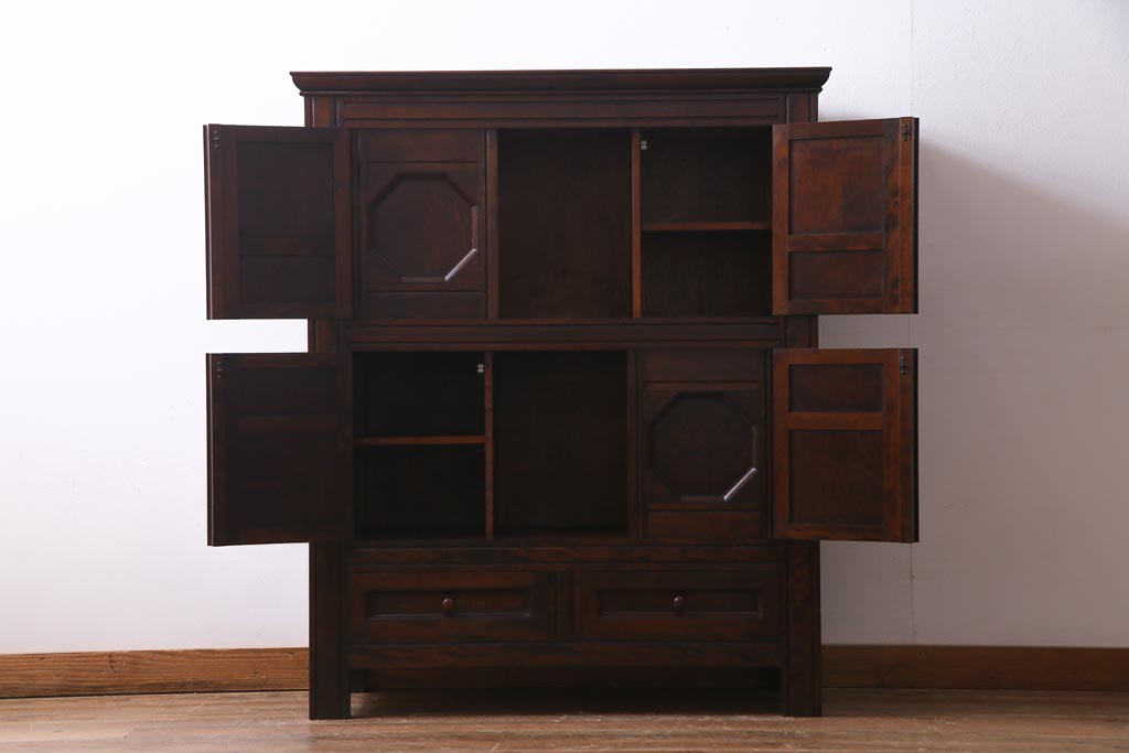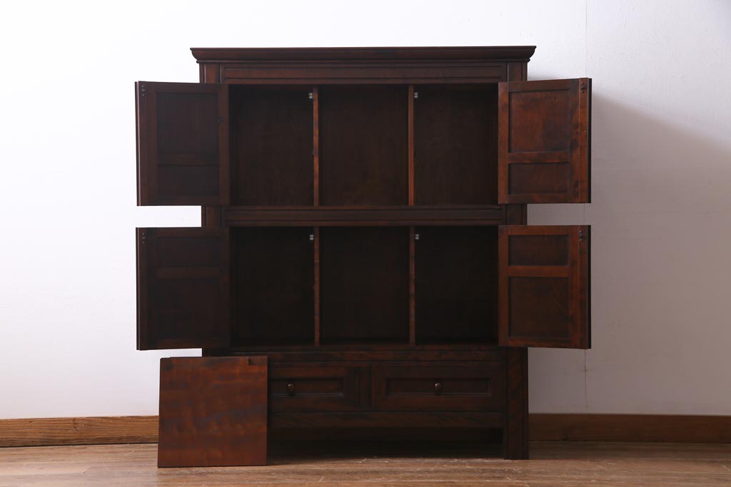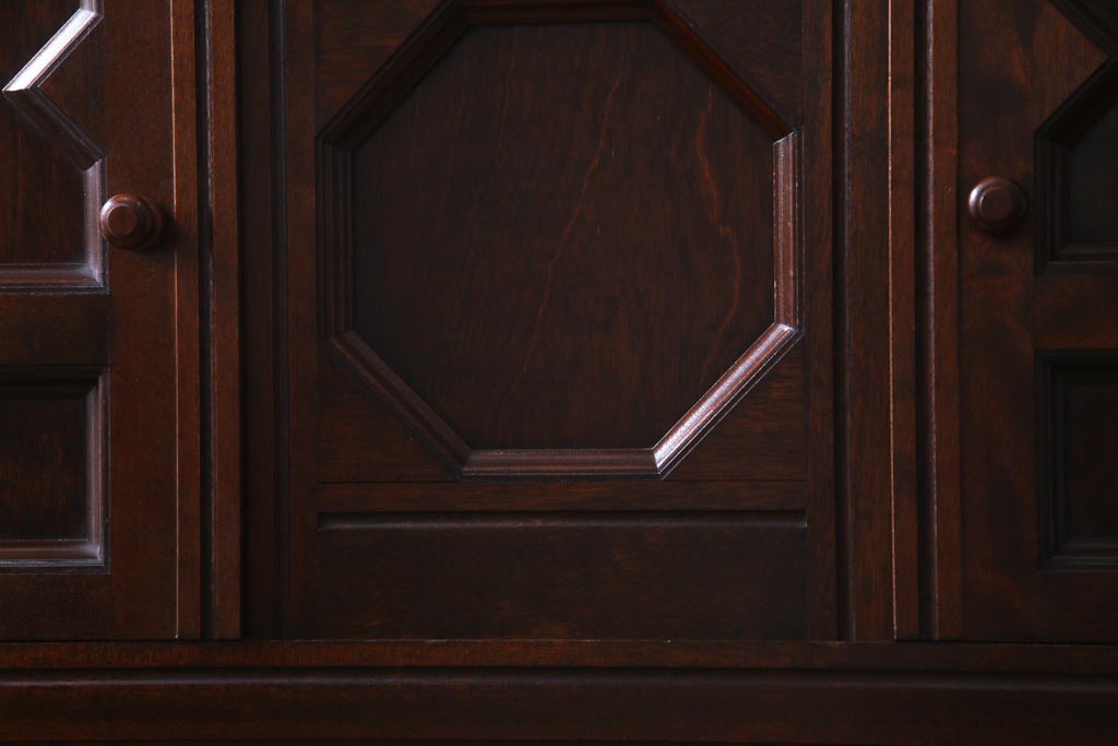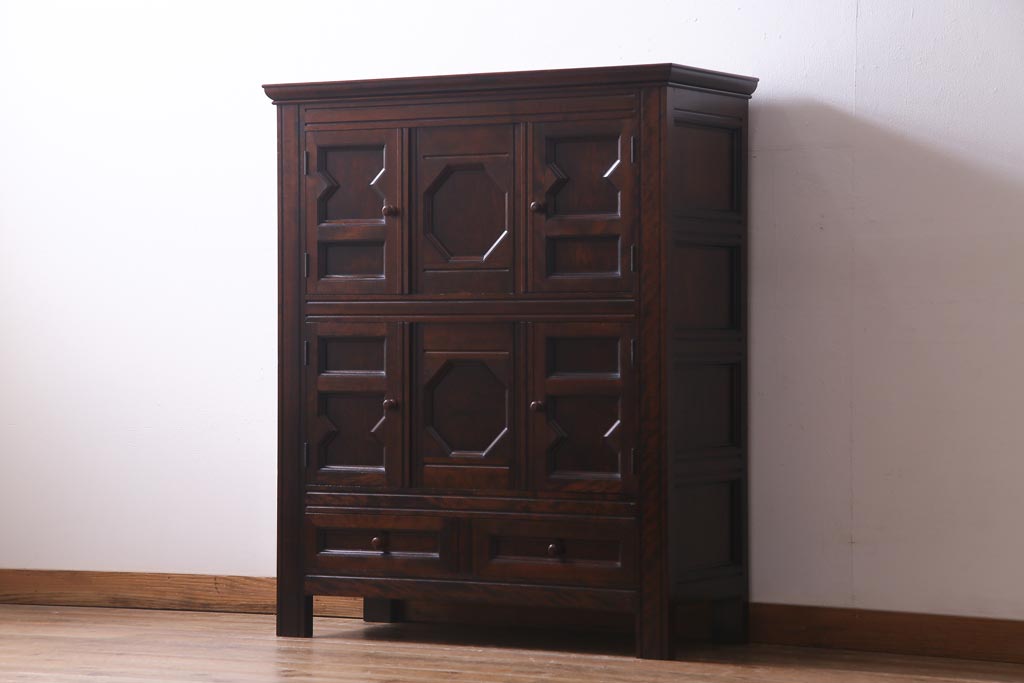 中古 松本民芸家具 B型サイドボード ジャコビアン様式がクラシカルなキャビネット(収納棚、戸棚)(定価約51万円)
