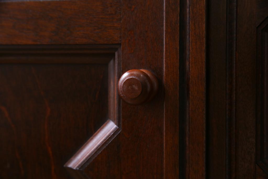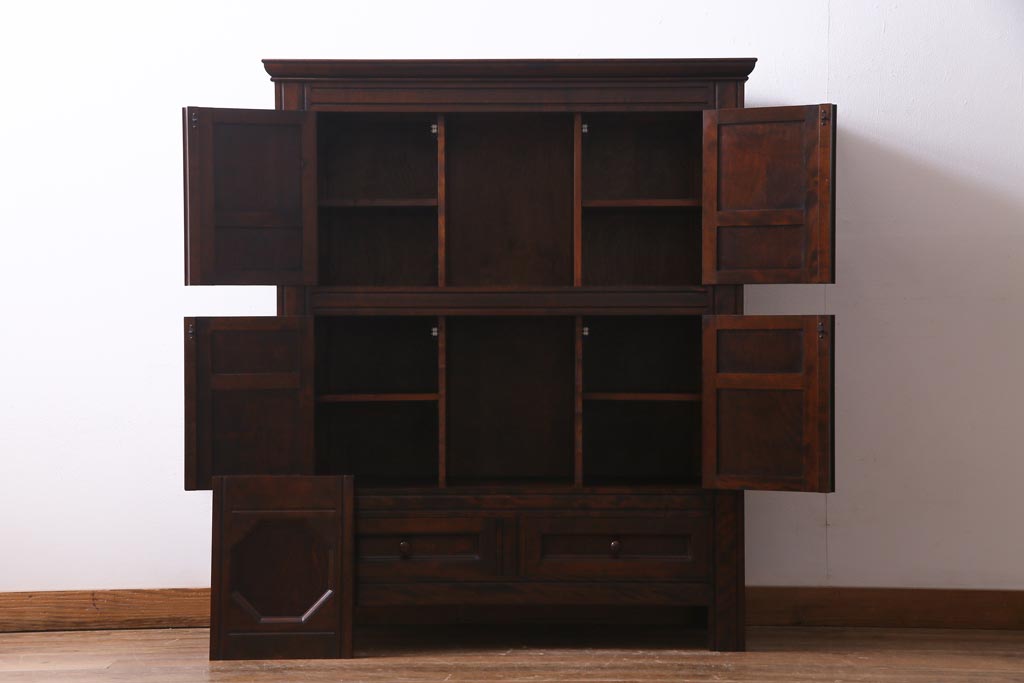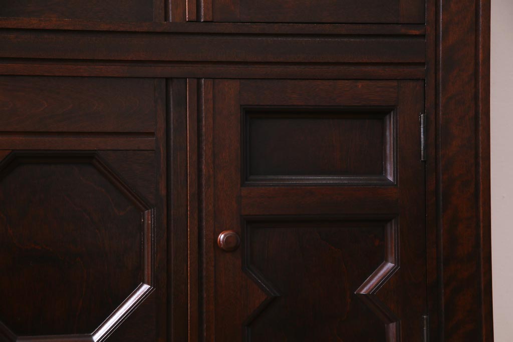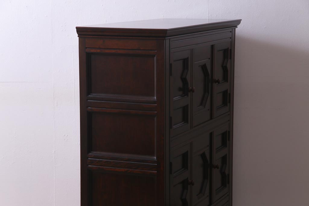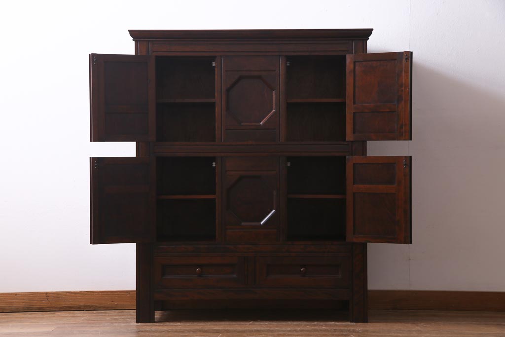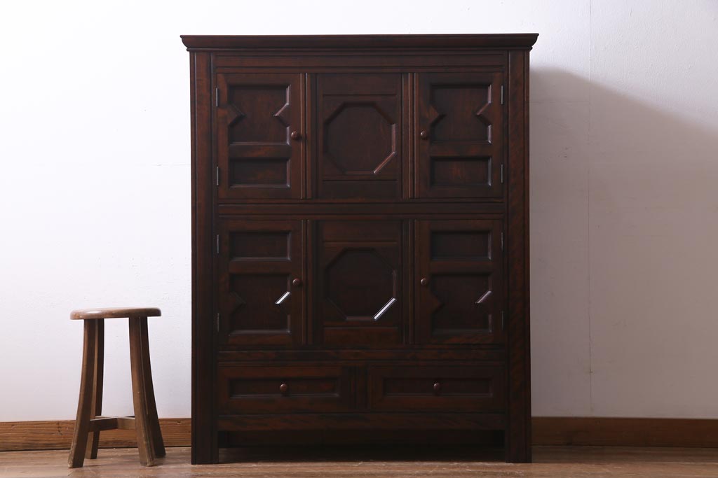 中古 松本民芸家具 B型サイドボード ジャコビアン様式がクラシカルなキャビネット(収納棚、戸棚)(定価約51万円)