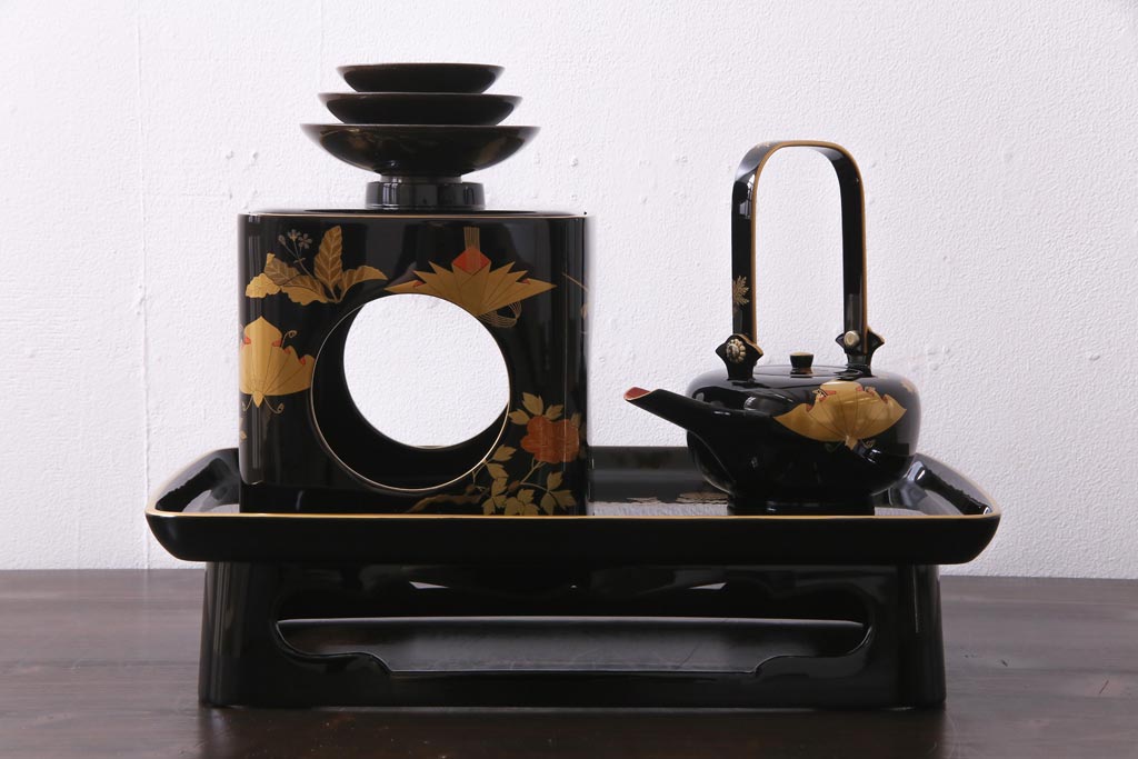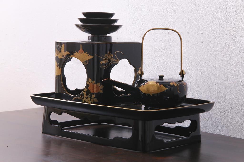 中古 伝統工芸 輪島塗 共箱付き 草花蒔絵 螺鈿 漆器 優雅で気品あふれる屠蘇器(とそき)(定価約70万円)