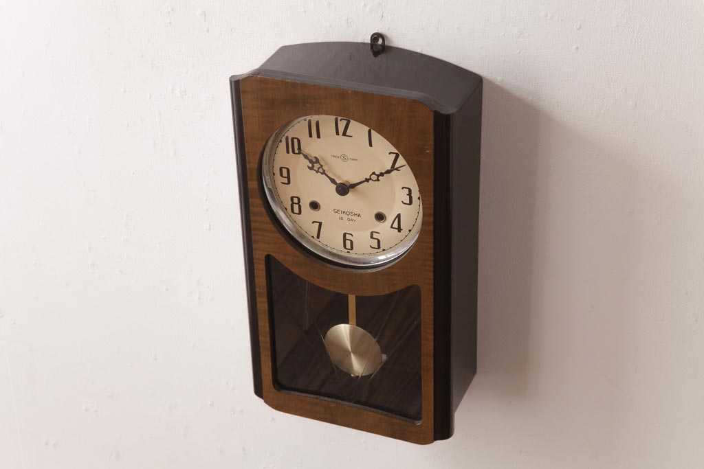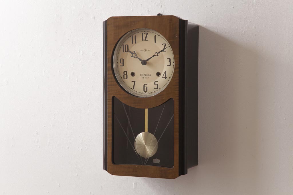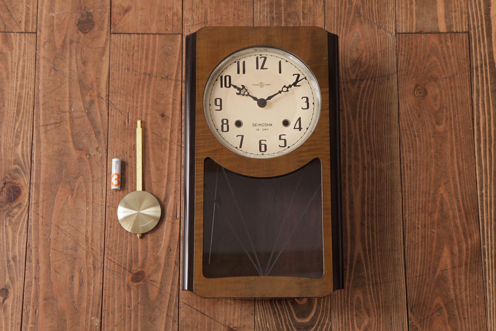時計> 掛け時計 > レトロ雑貨 精工舎(SEIKOSHA、セイコー) 内部交換済・電池式 14DAY 掛時計(柱時計、振り子時計、古時計)