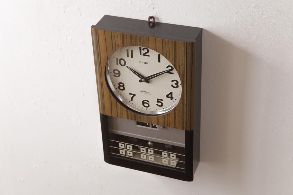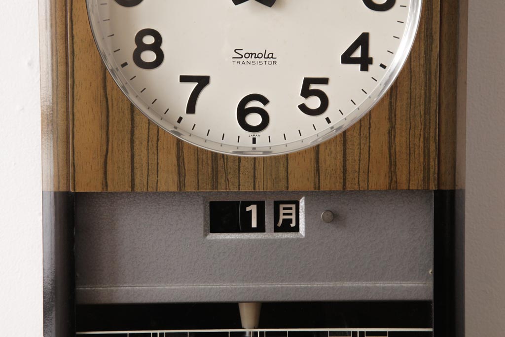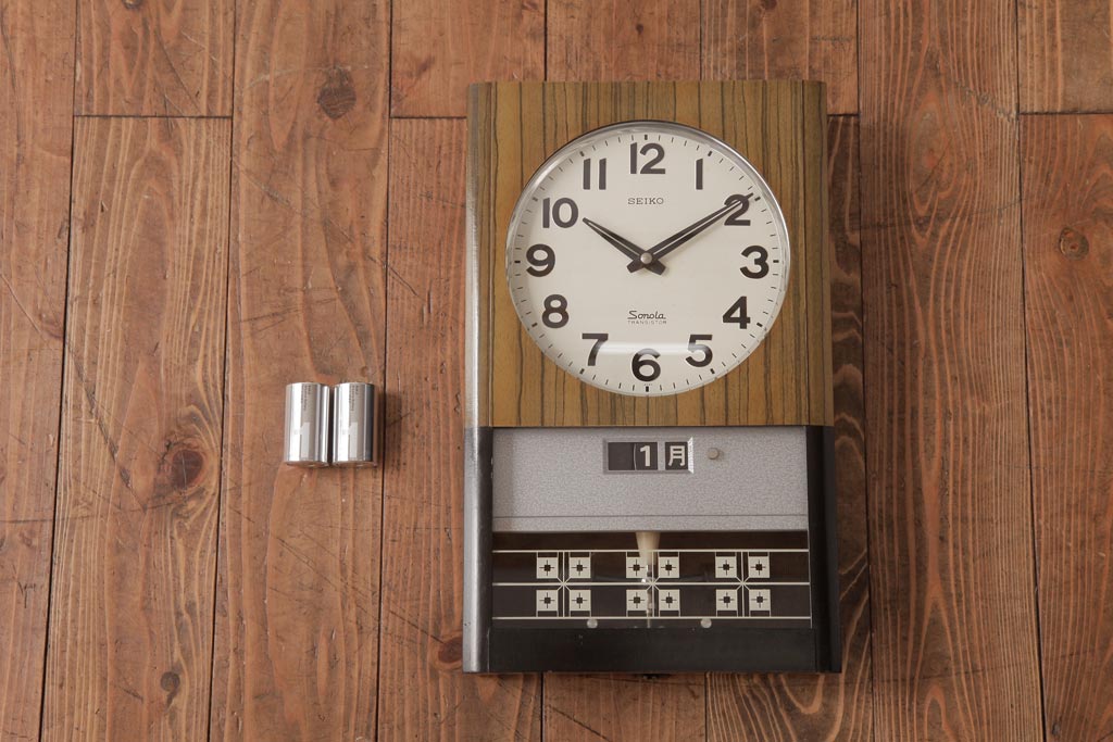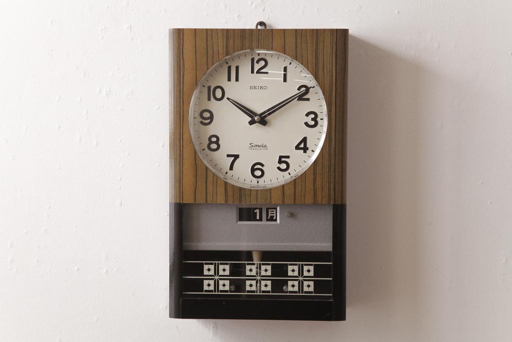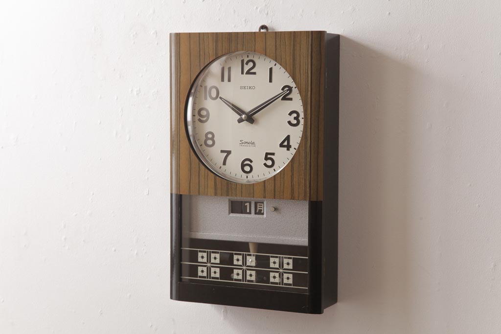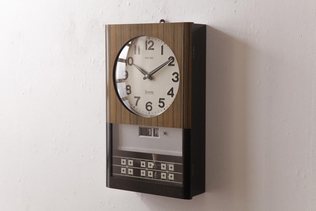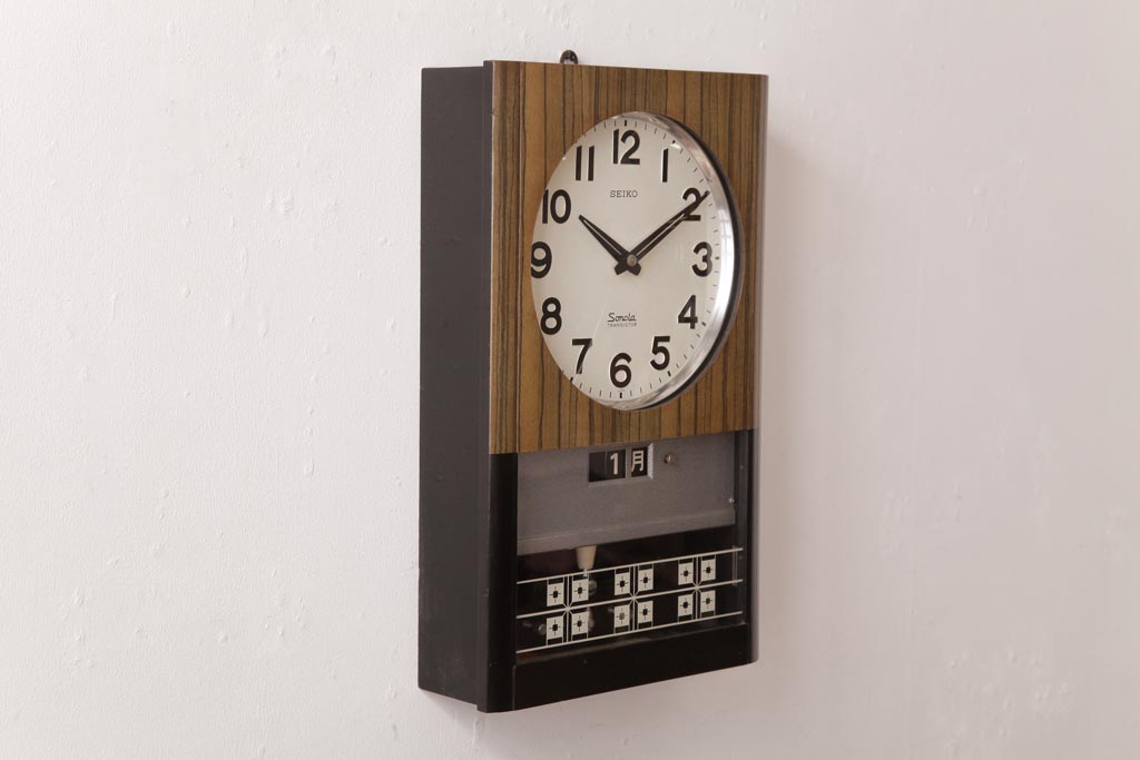 レトロ雑貨 昭和期 SEIKO(セイコー) 電池式 カレンダー付き レトロモダンな掛け時計(柱時計、振り子時計)