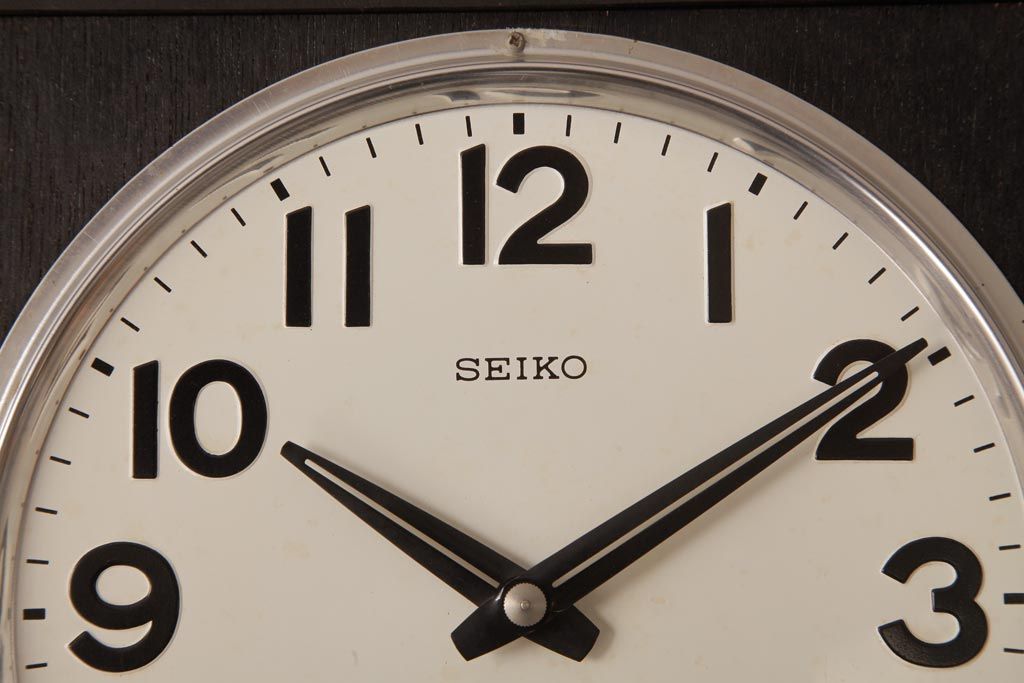 時計> 掛け時計 > レトロ雑貨 昭和期 SEIKO(セイコー) 電池式 カレンダー付き レトロモダンな掛け時計(柱時計、振り子時計)