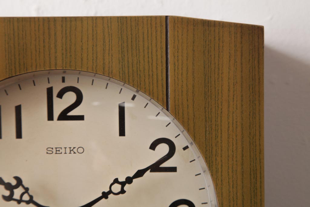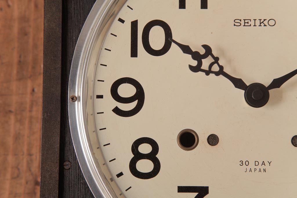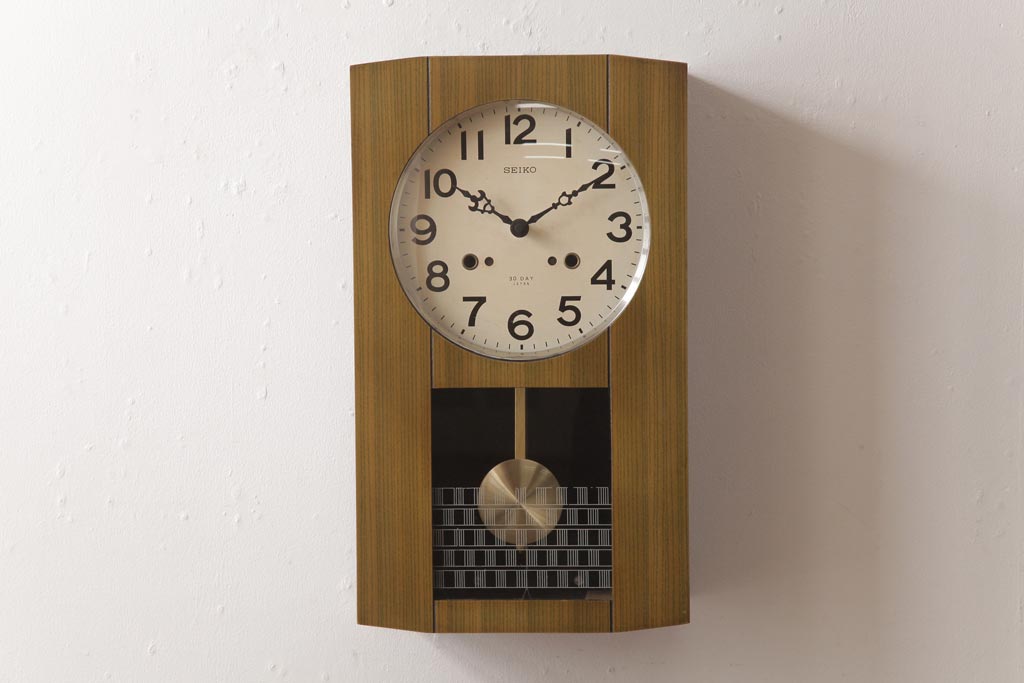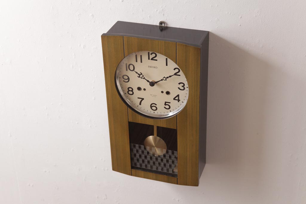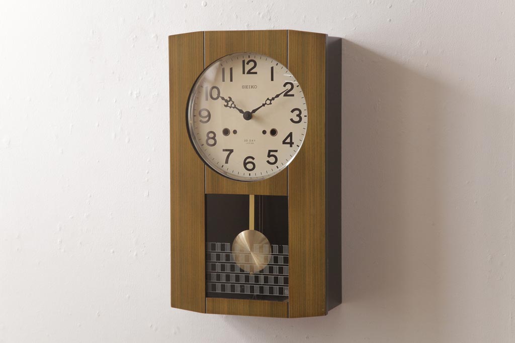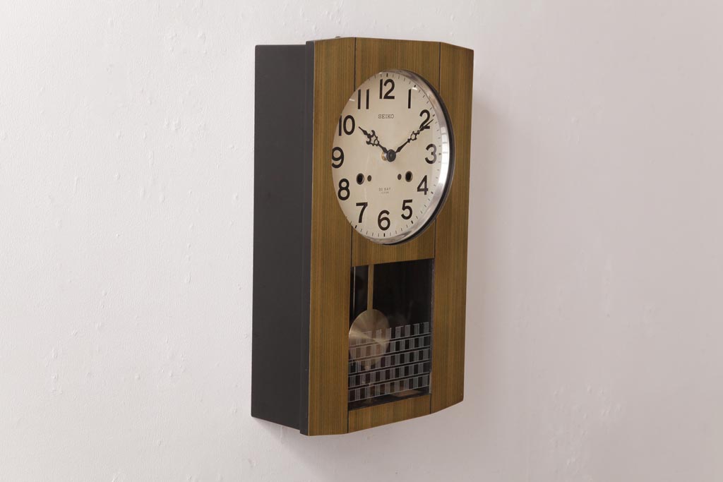 時計> 掛け時計 > レトロ雑貨 昭和中期 SEIKO(セイコー) 内部交換済・電池式 30DAY 直線を意識したデザインの掛け時計(柱時計、振り子時計)