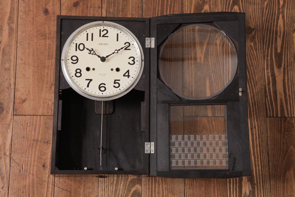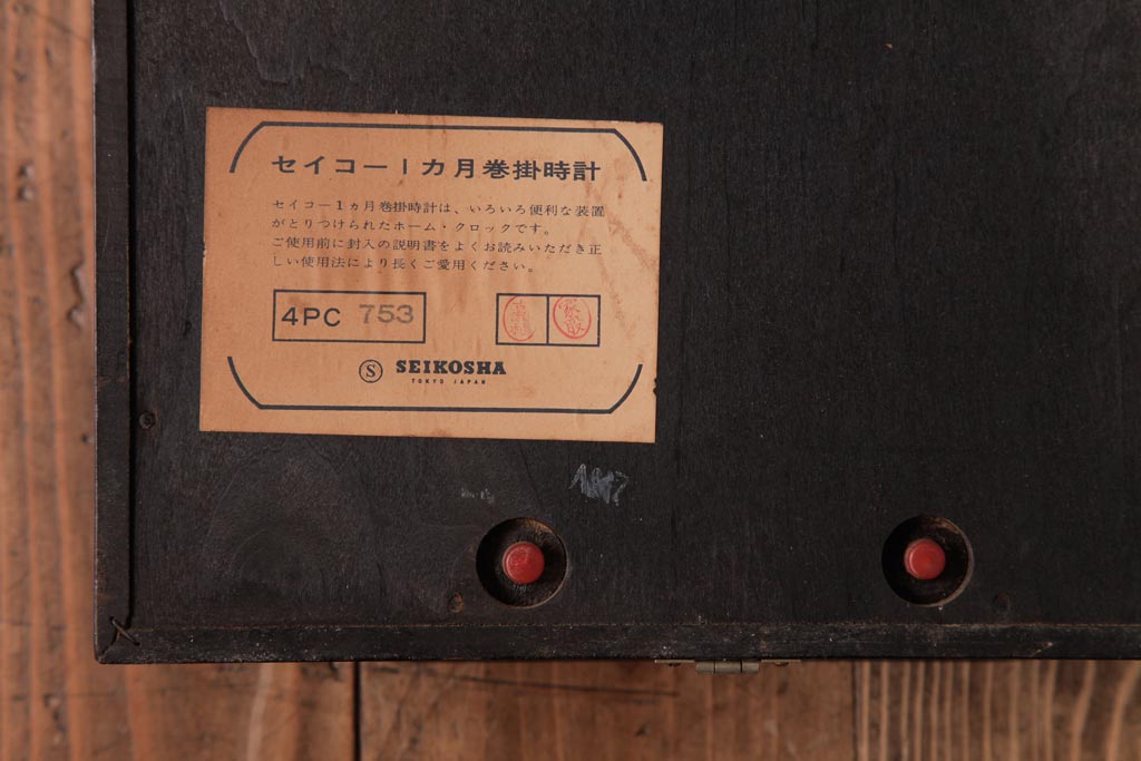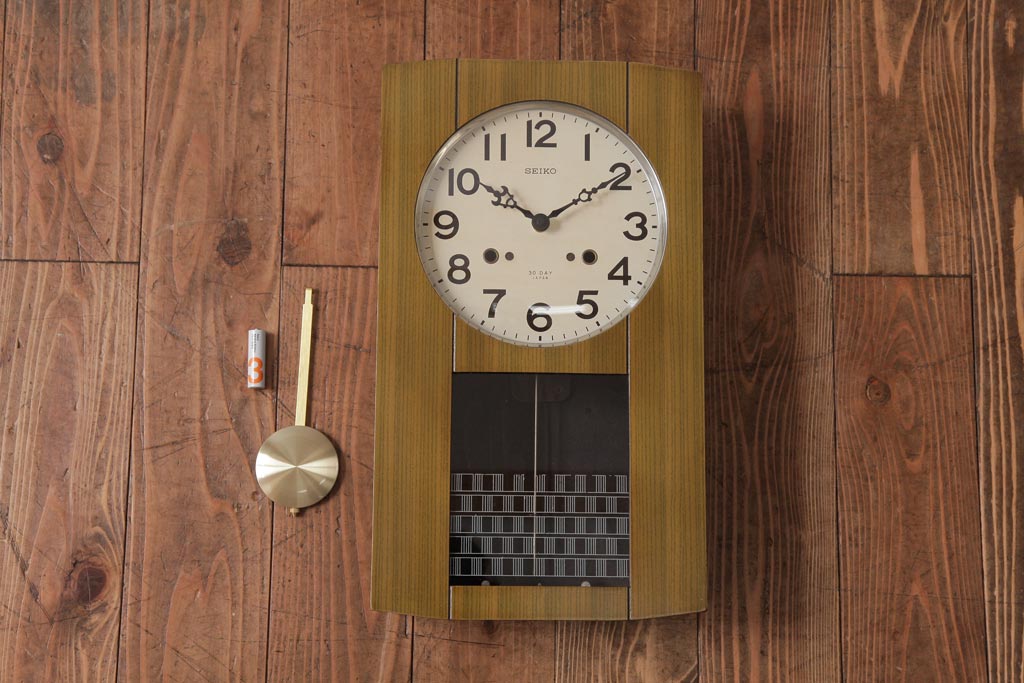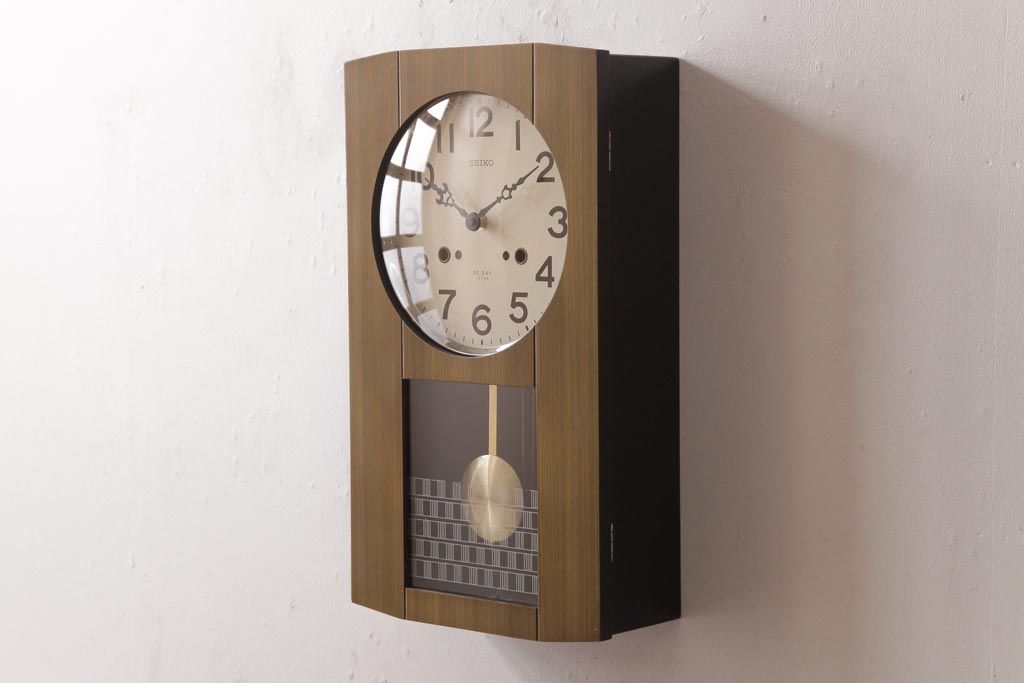 レトロ雑貨 昭和中期 SEIKO(セイコー) 内部交換済・電池式 30DAY 直線を意識したデザインの掛け時計(柱時計、振り子時計)