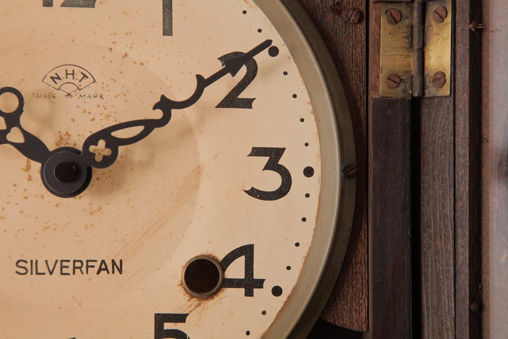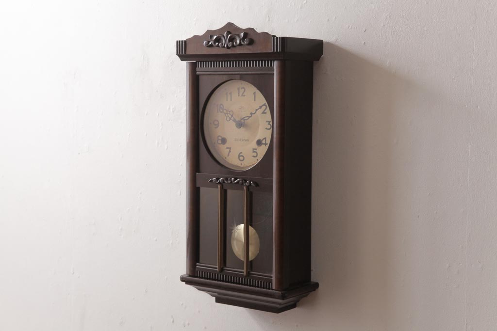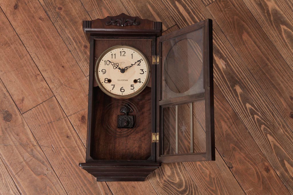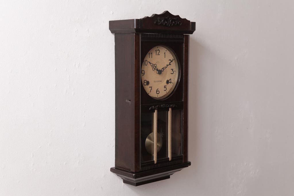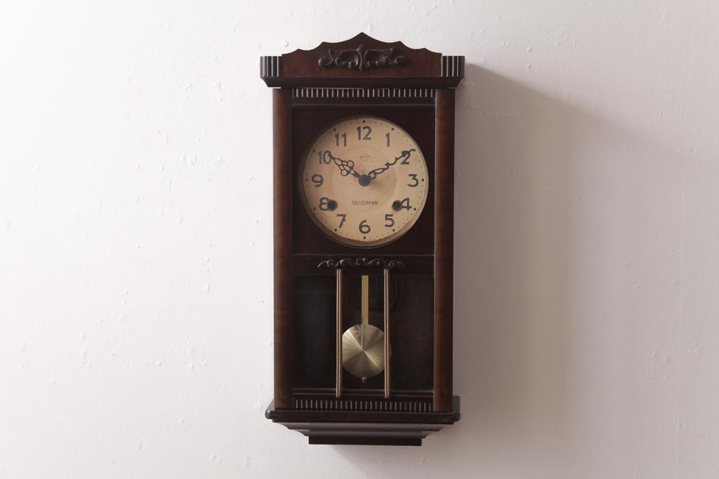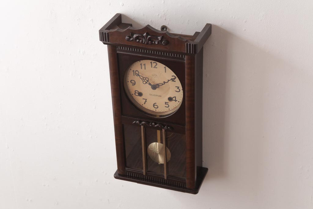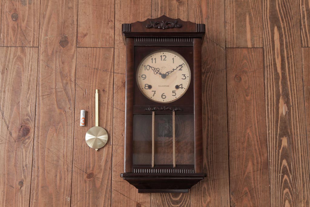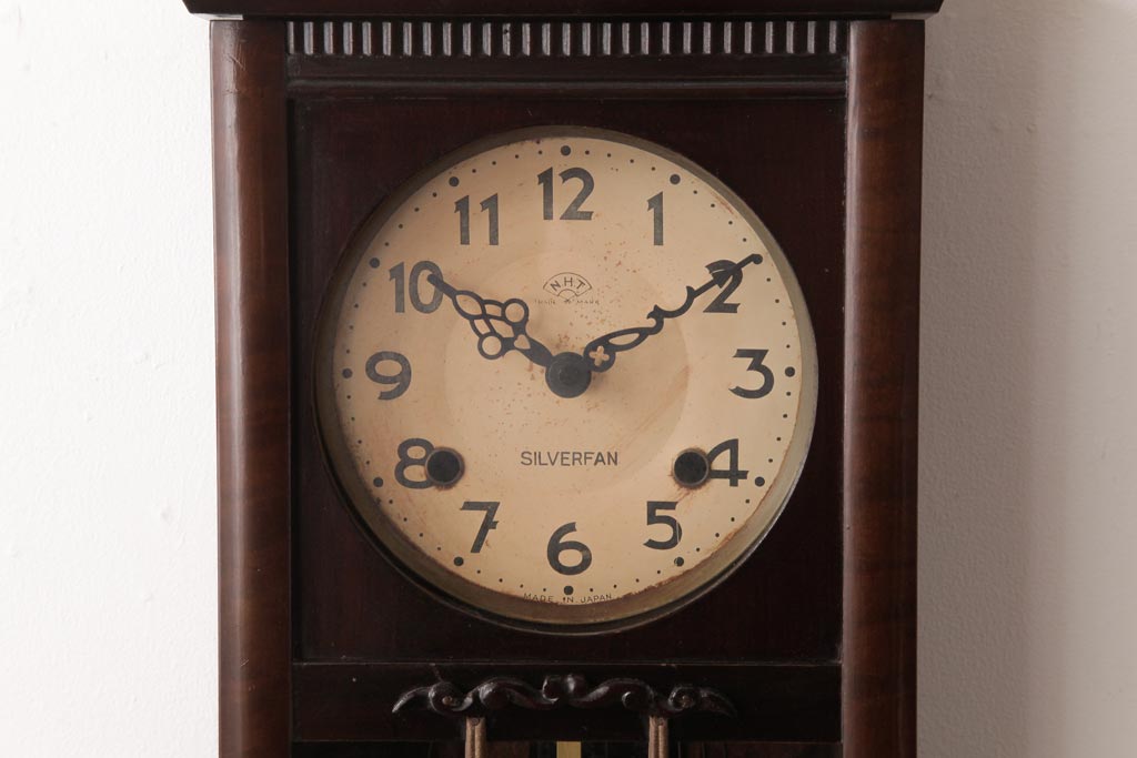 時計> 掛け時計 > ビンテージ雑貨 堀田時計店 N.H.T SILVERFAN 内部交換済・電池式 振り子掛時計(柱時計、壁掛け時計)