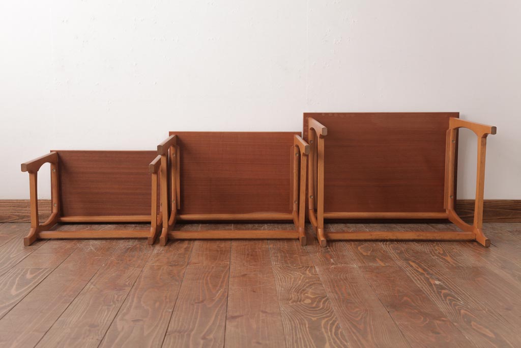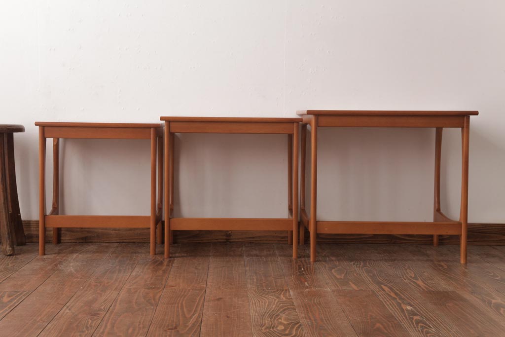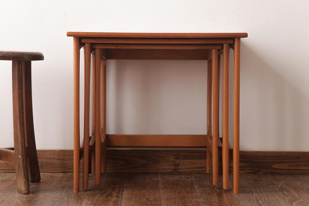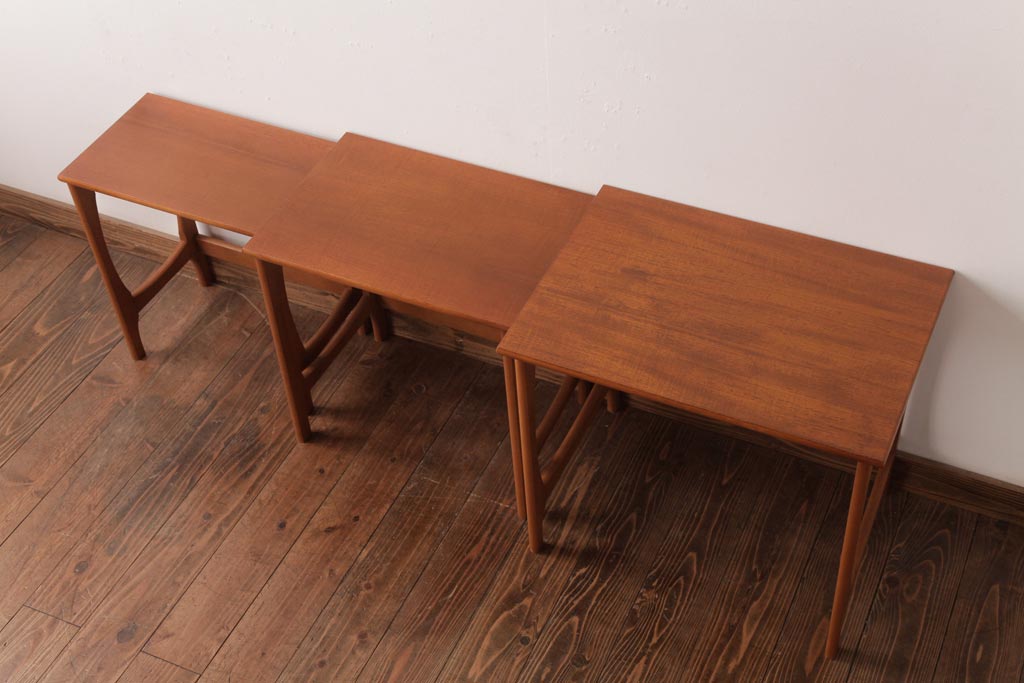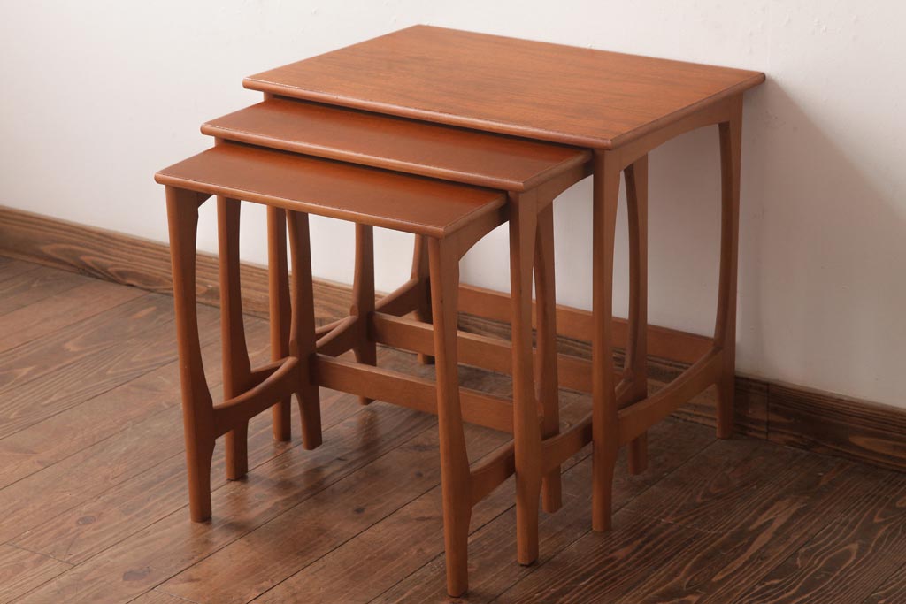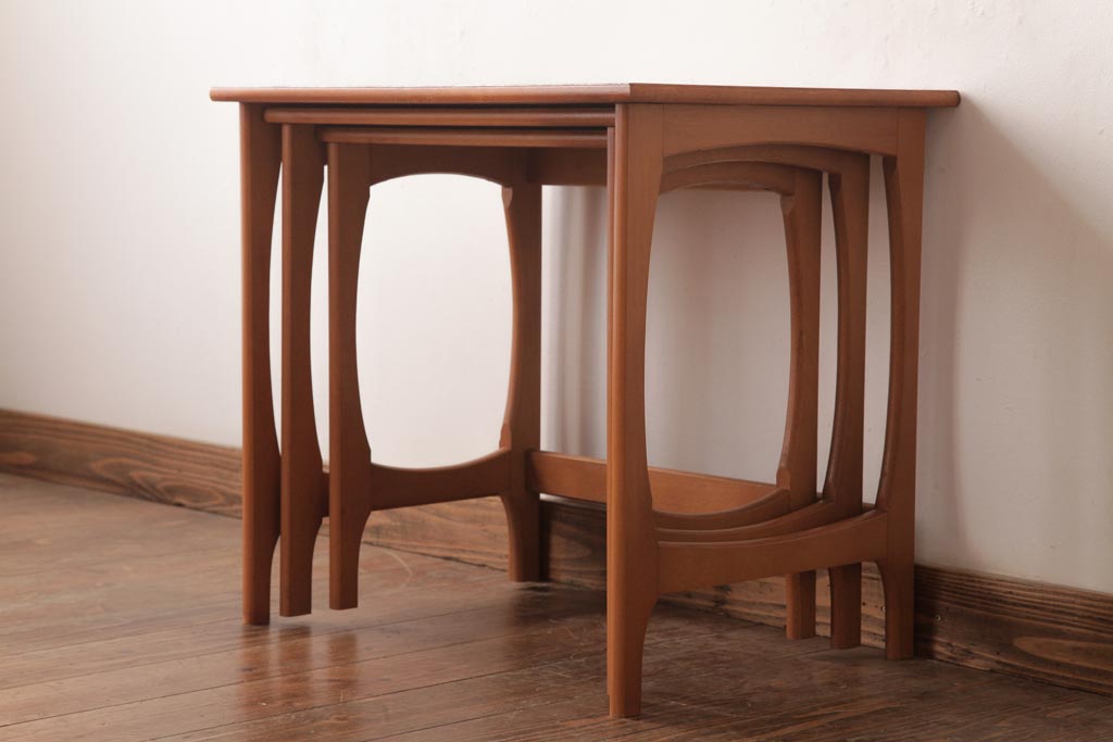ヴィンテージ家具 北欧ビンテージ 脚のデザインがおしゃれなネストテーブル(サイドテーブル、カフェテーブル)