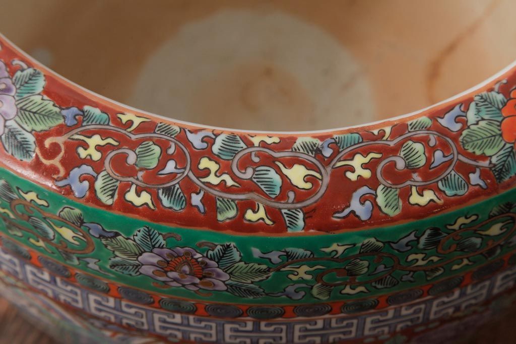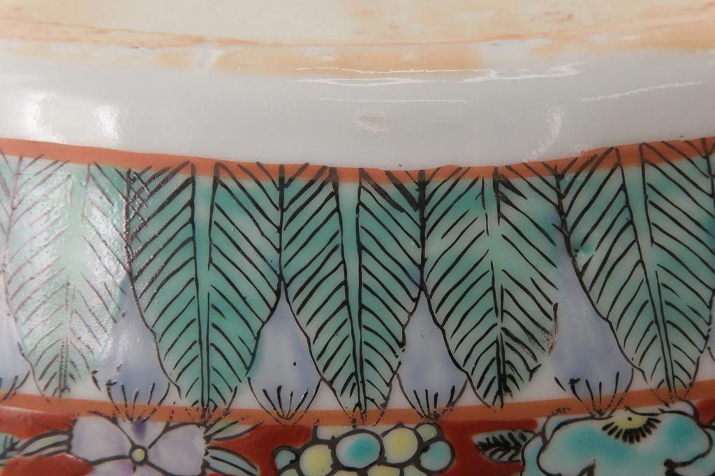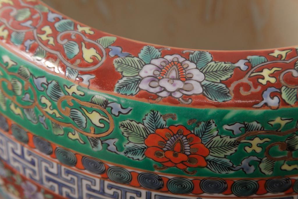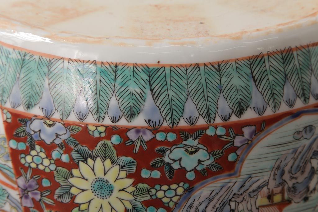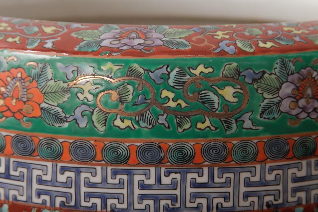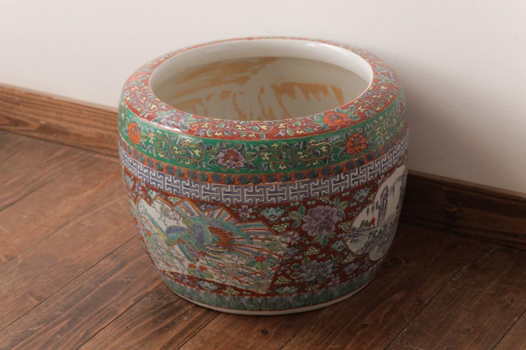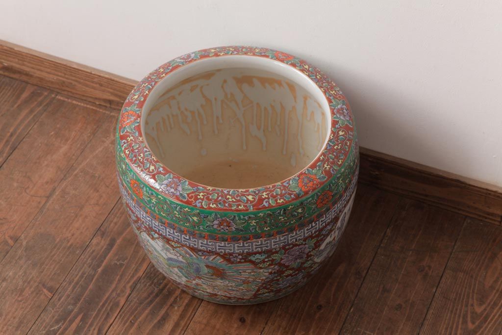 アンティーク雑貨 和製アンティーク 色彩豊かな十錦手火鉢(瀬戸火鉢)