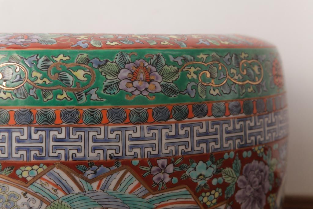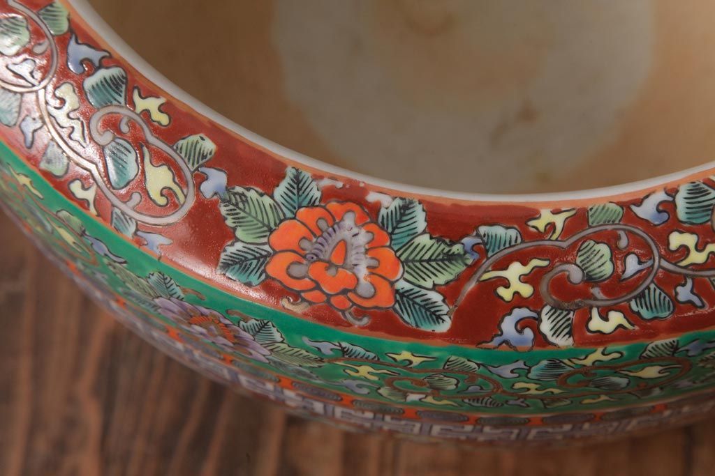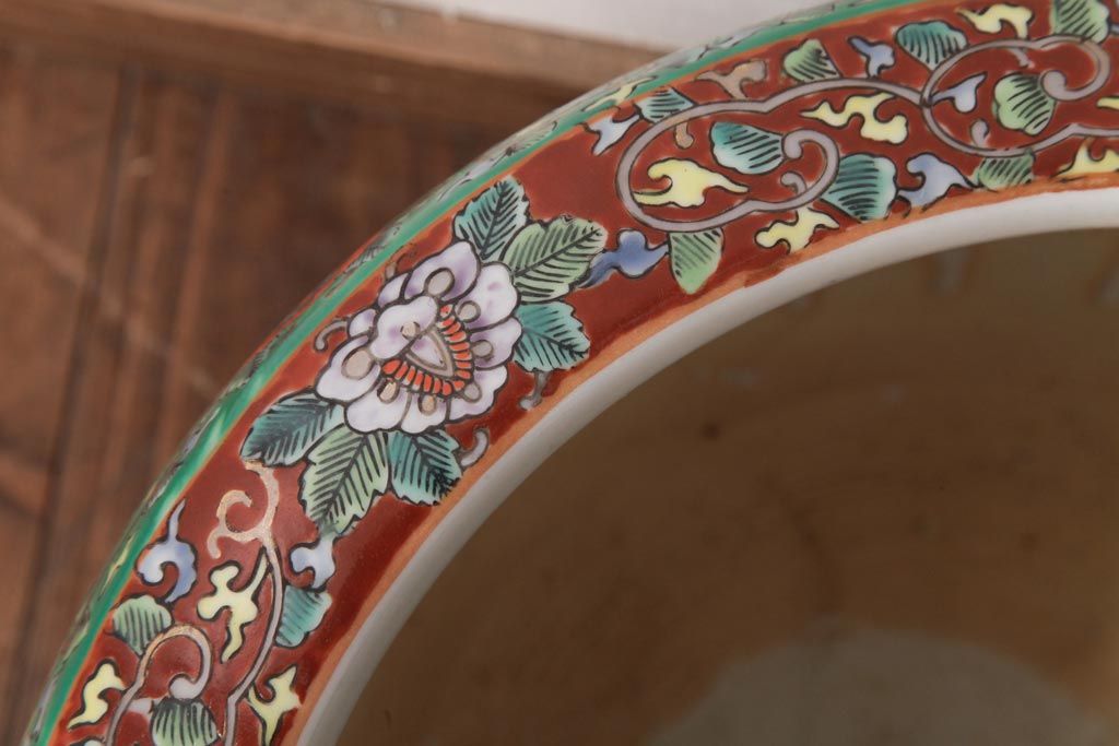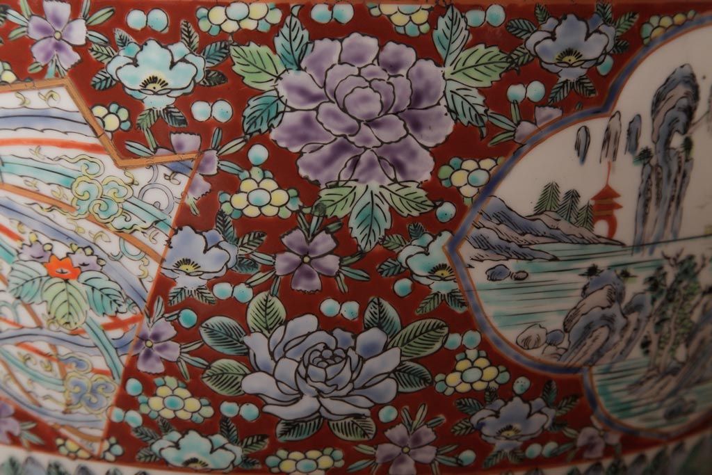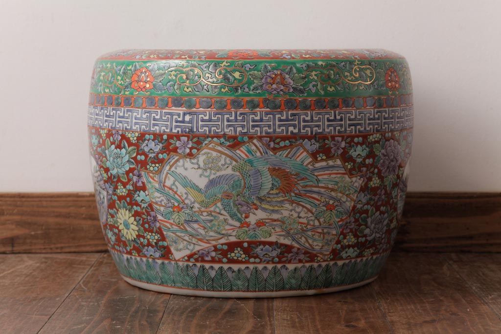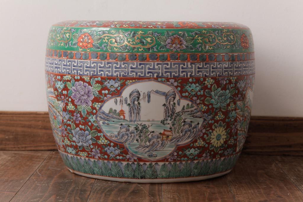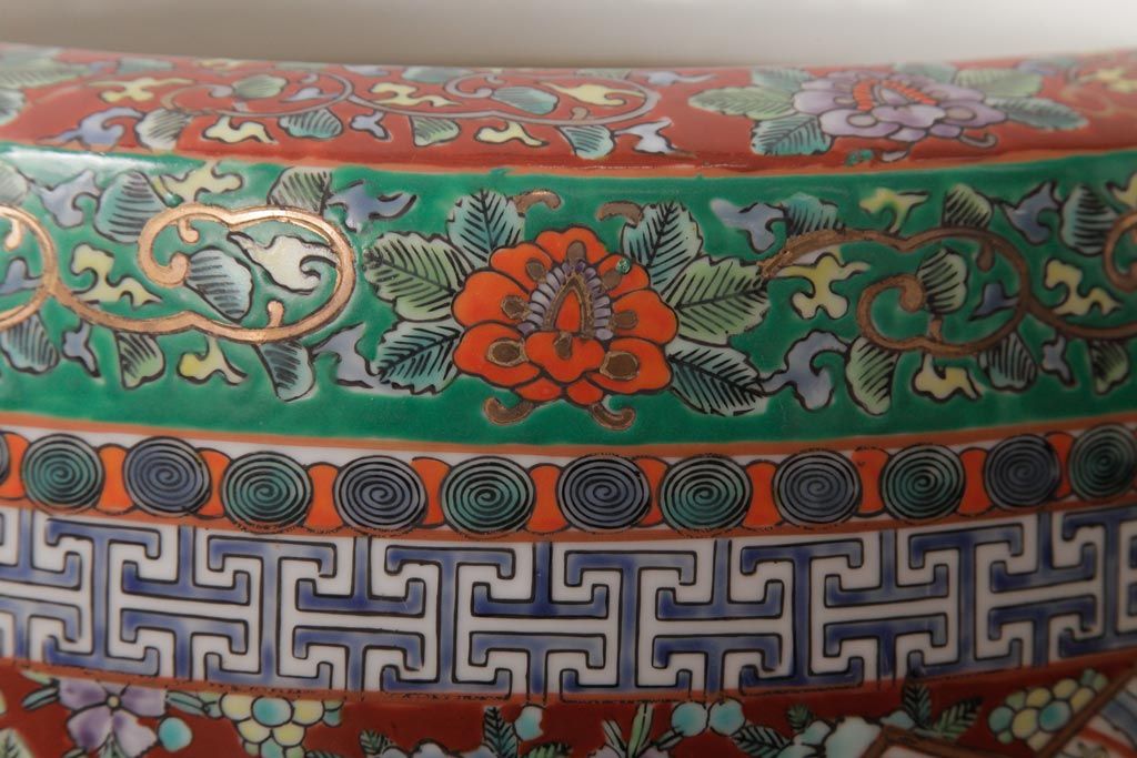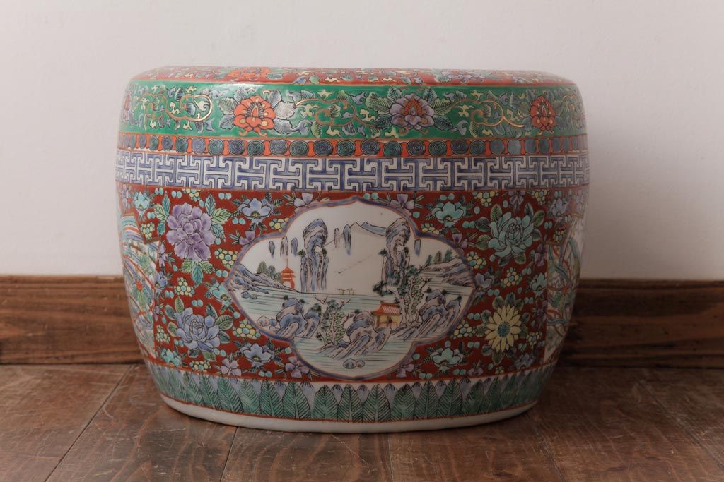アンティーク雑貨 和製アンティーク 色彩豊かな十錦手火鉢(瀬戸火鉢)