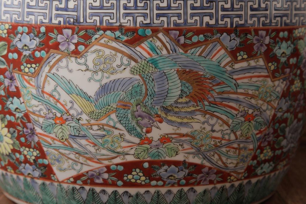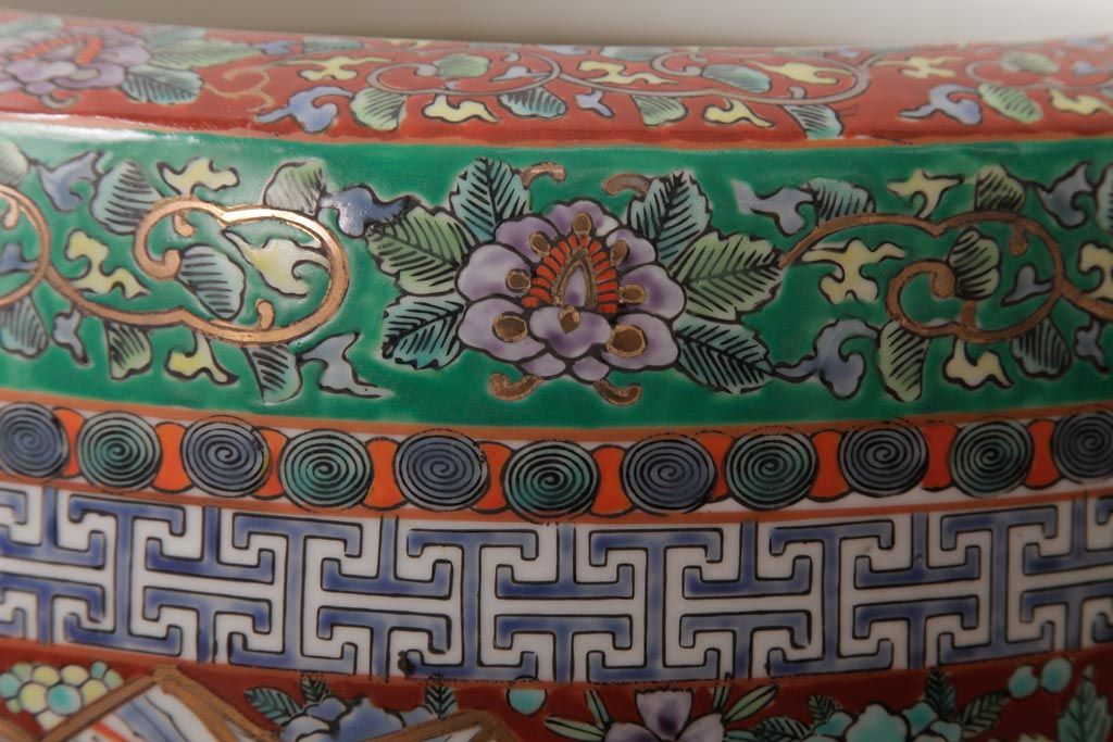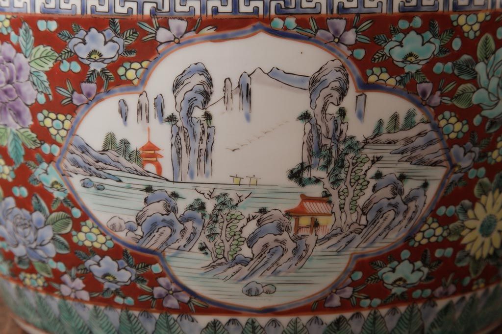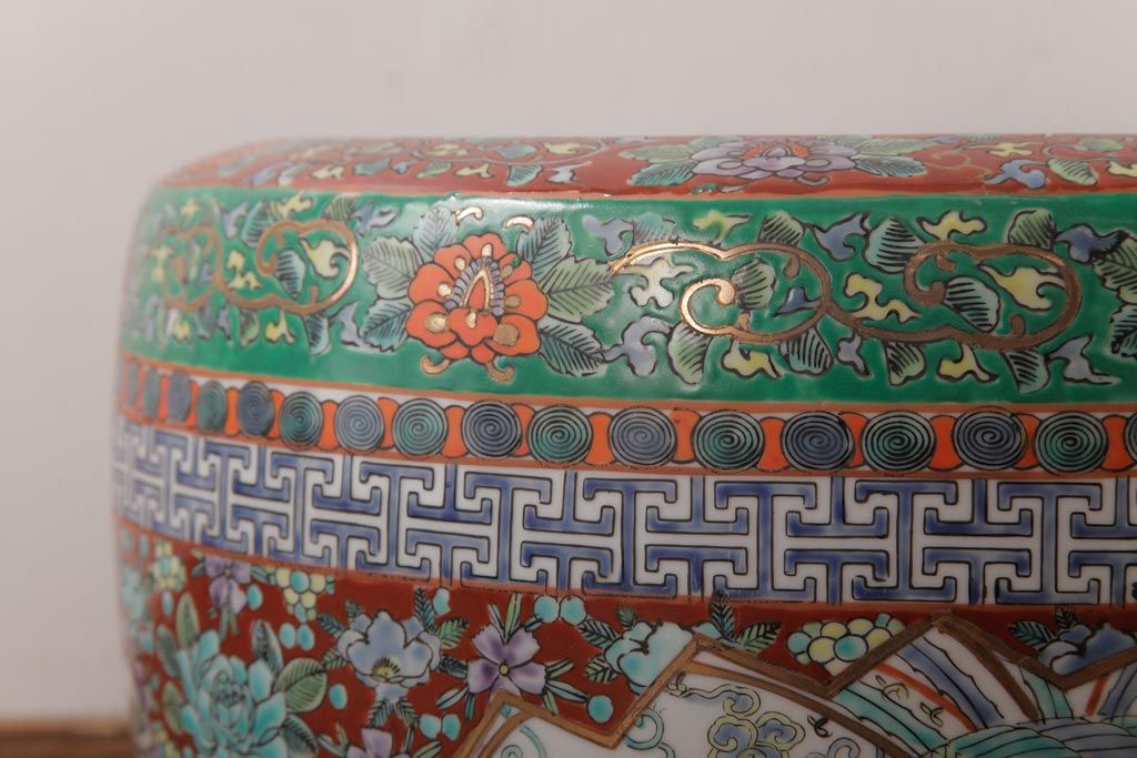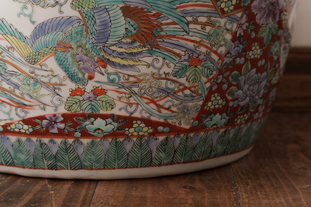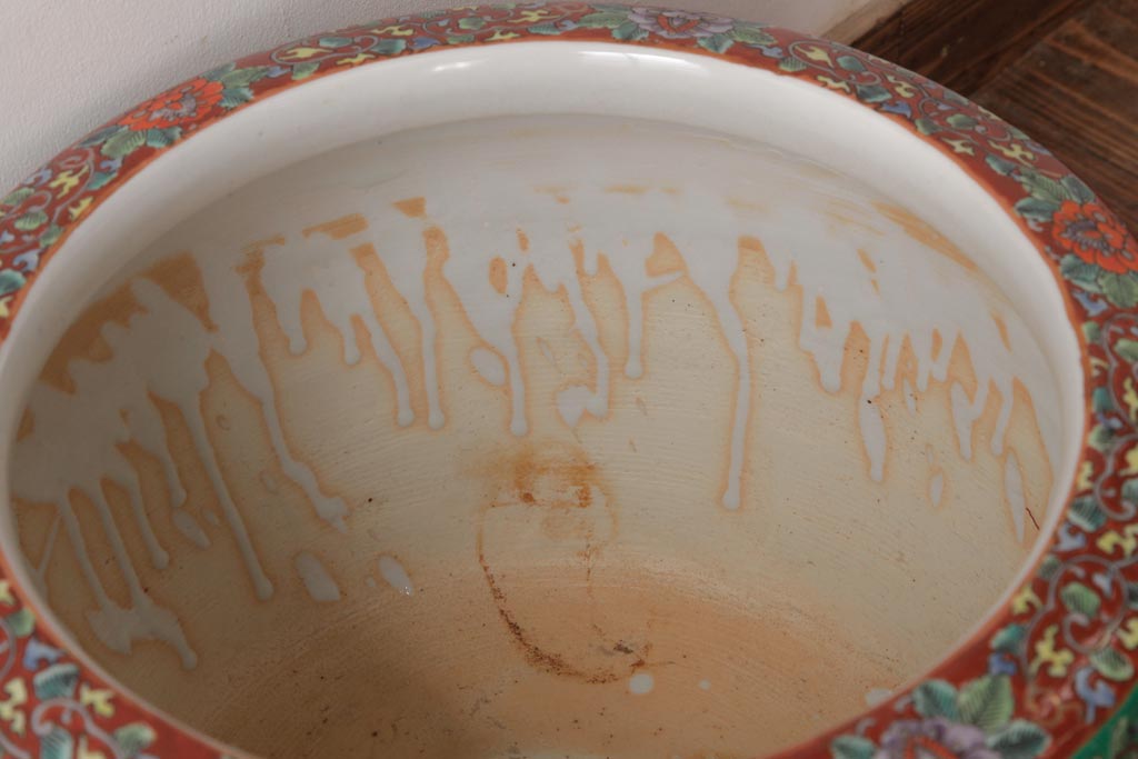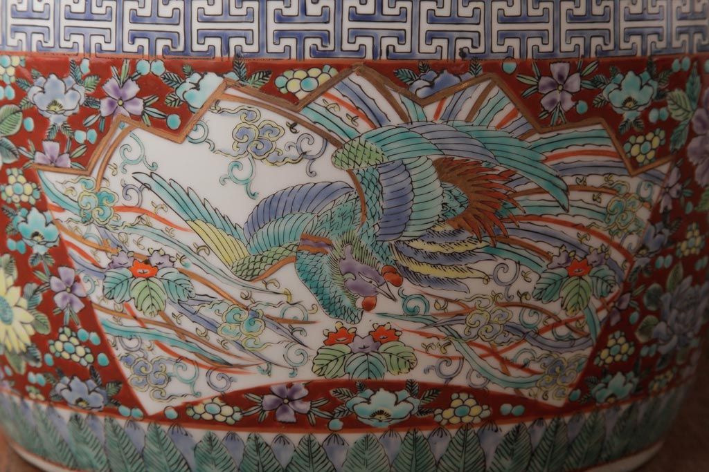 アンティーク雑貨 和製アンティーク 色彩豊かな十錦手火鉢(瀬戸火鉢)