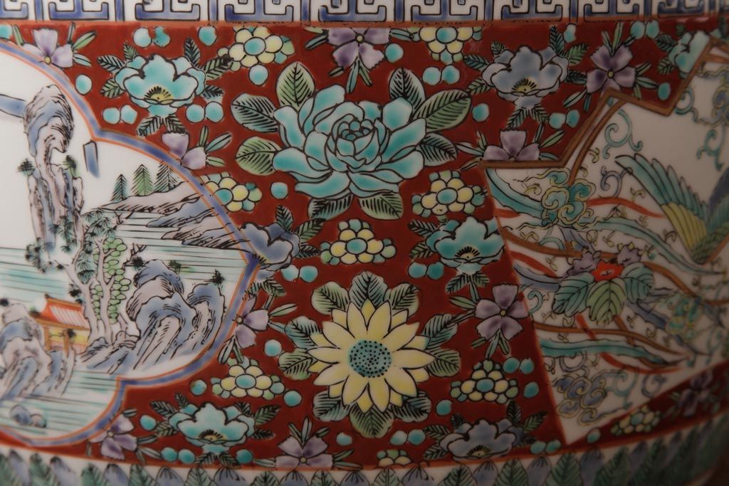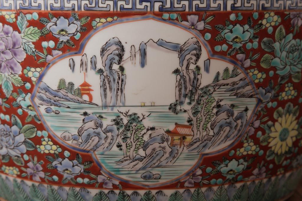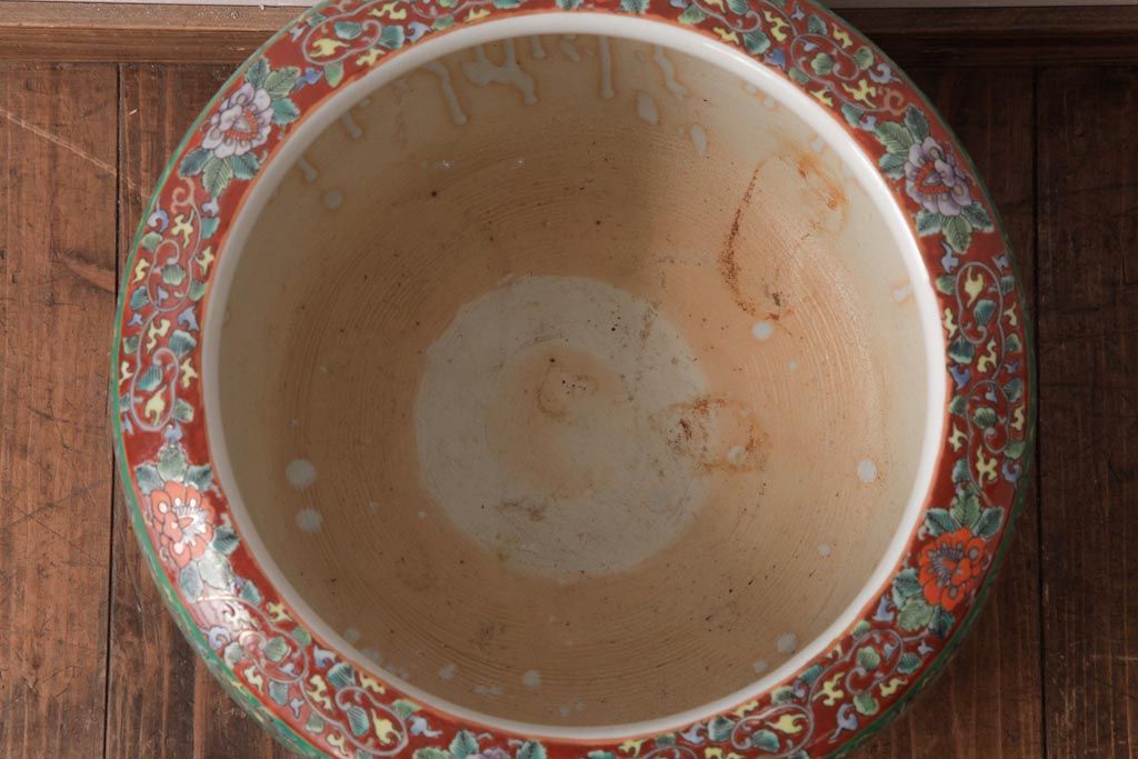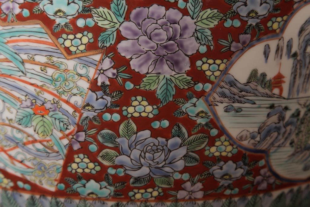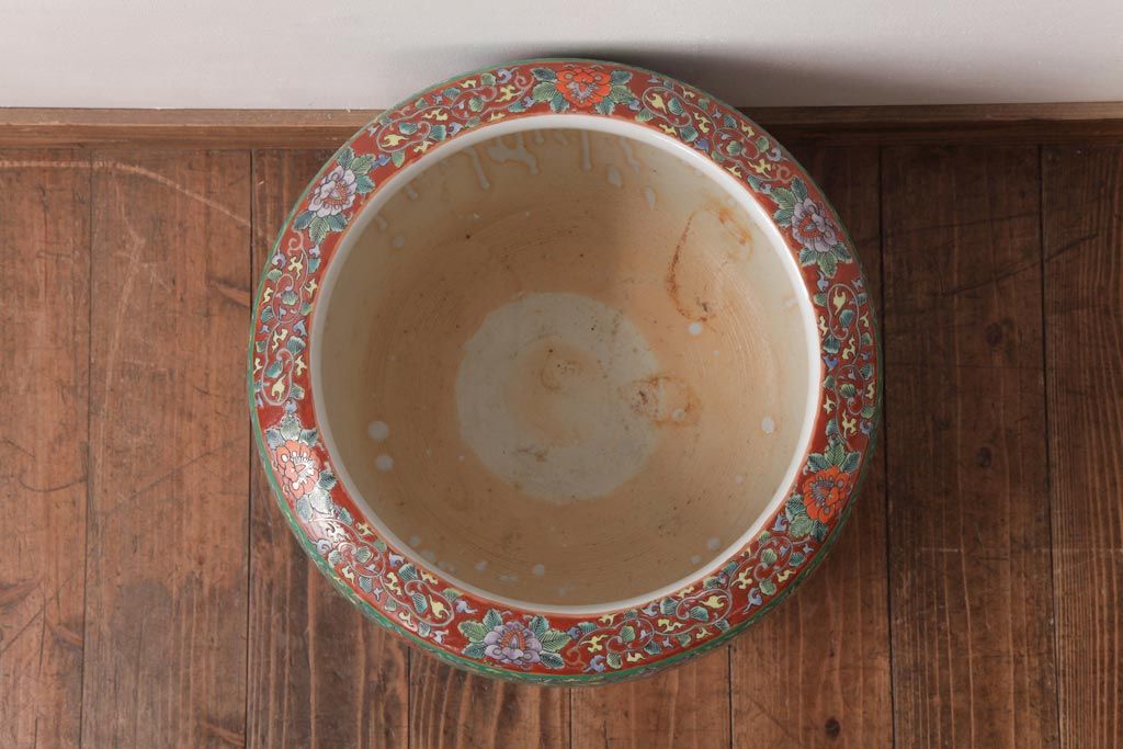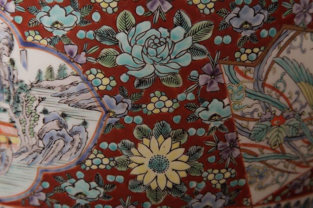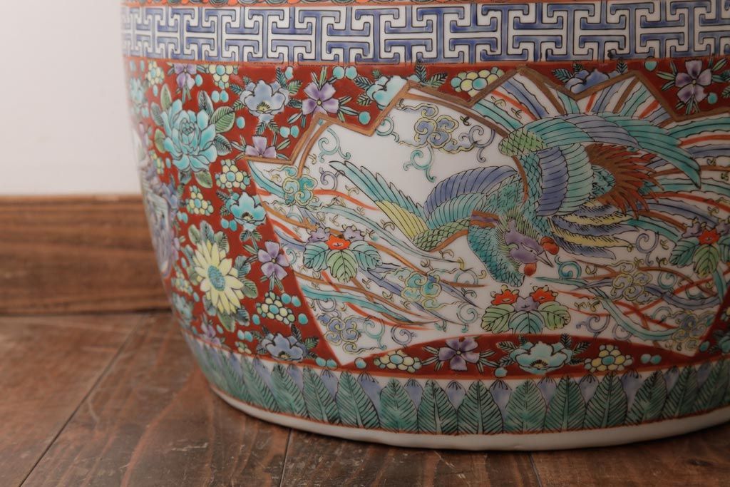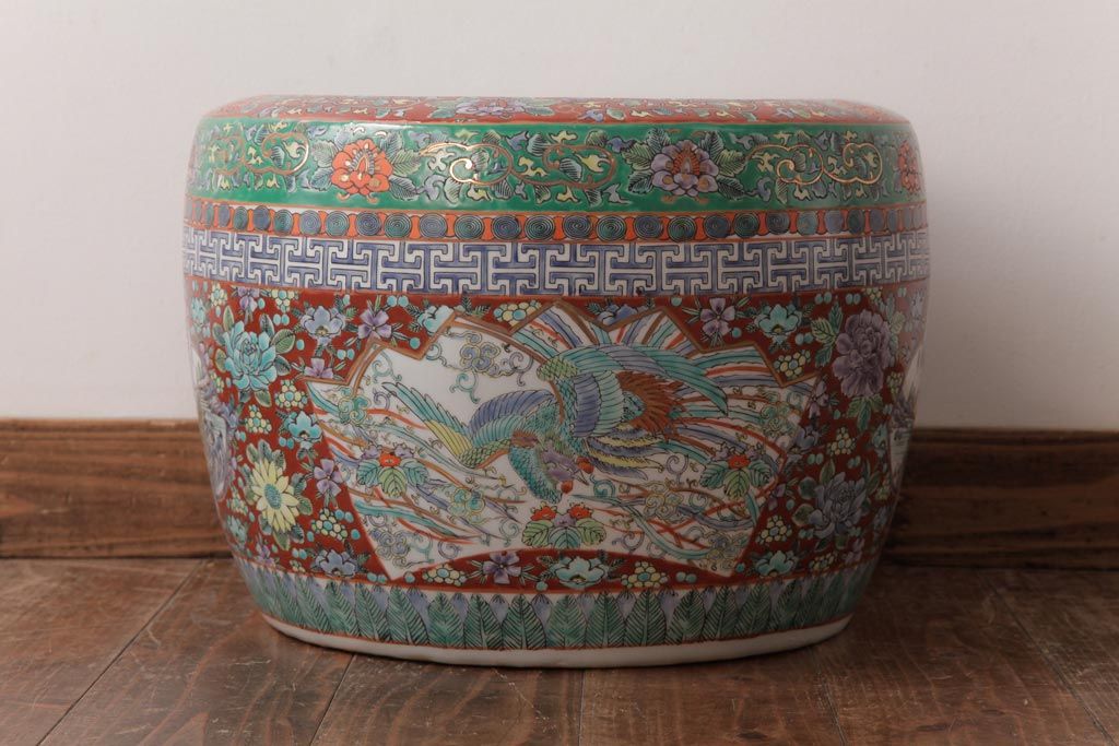 アンティーク雑貨 和製アンティーク 色彩豊かな十錦手火鉢(瀬戸火鉢)