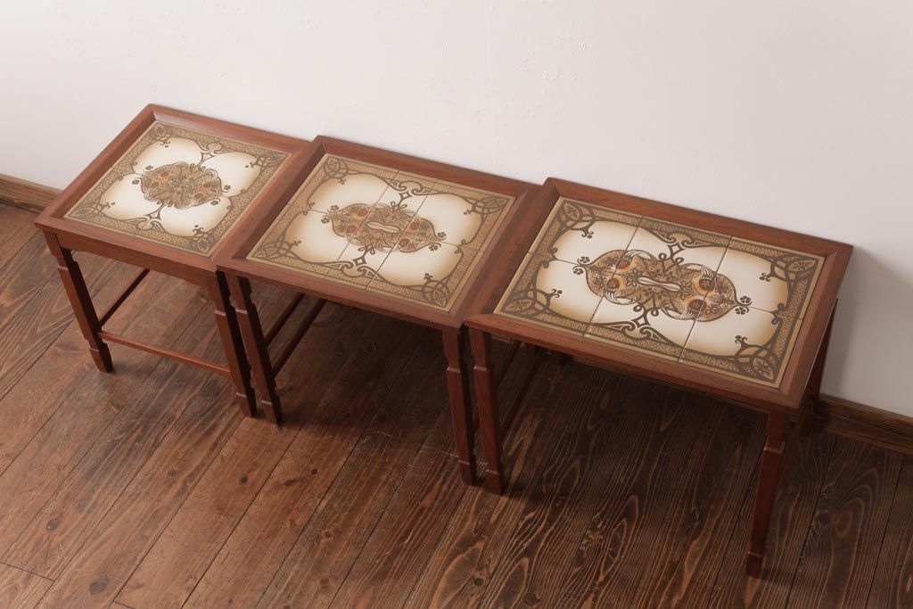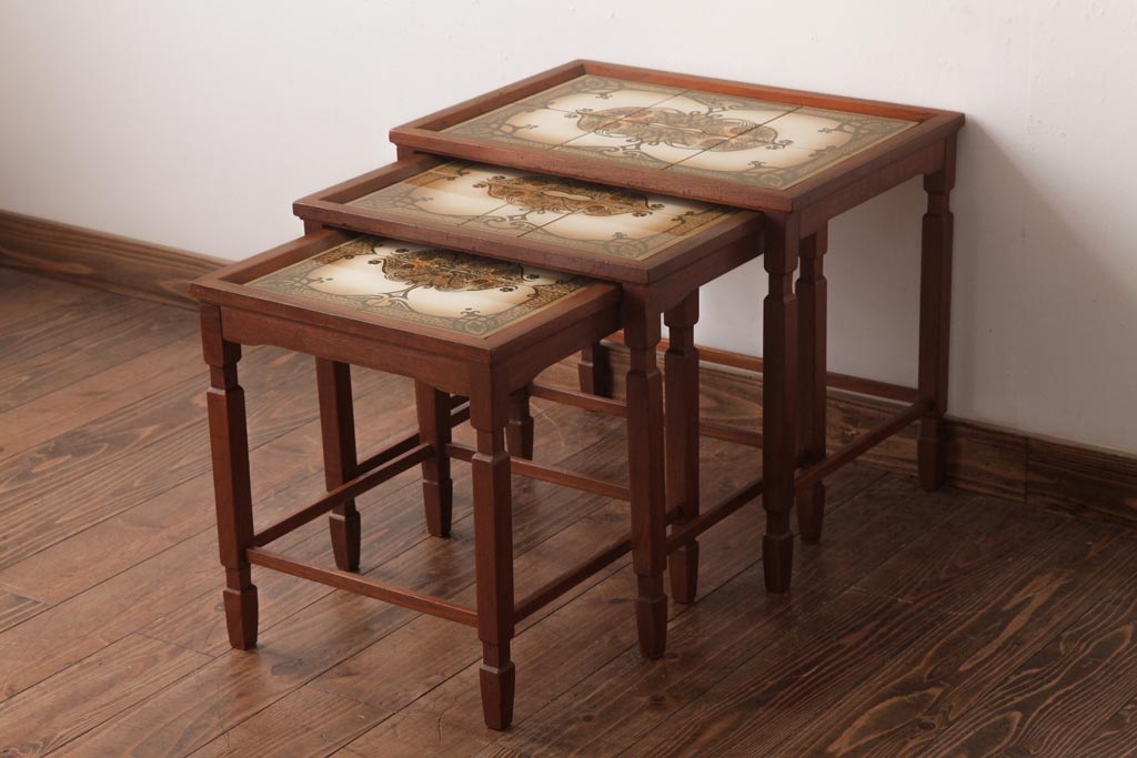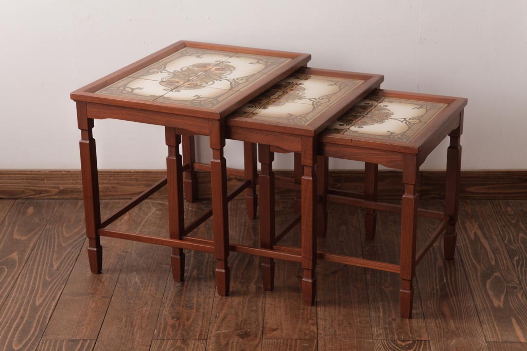 ヴィンテージ家具 北欧家具 デンマークビンテージ タイルトップのネストテーブル(サイドテーブル、カフェテーブル)