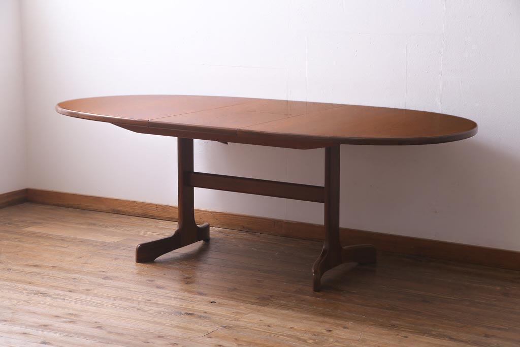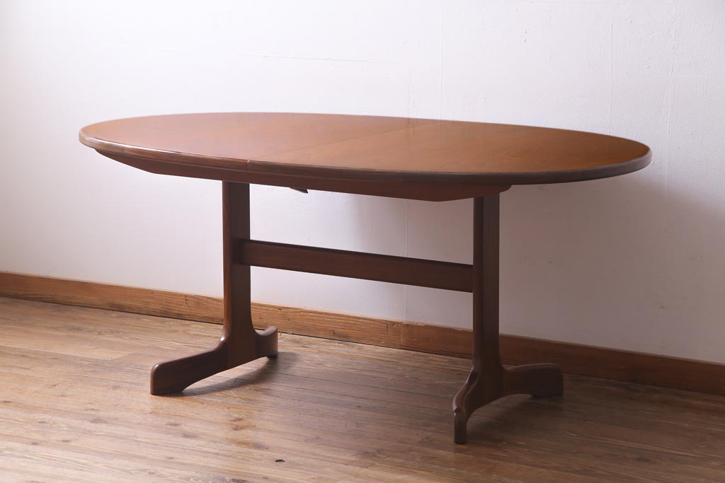ヴィンテージ家具 G-PLAN(ジープラン) 北欧家具 チーク材 オーバル型のシンプルなエクステンションテーブル(ダイニングテーブル、ビンテージ)