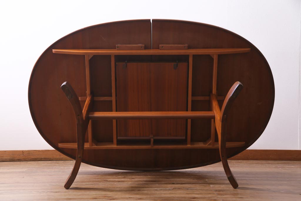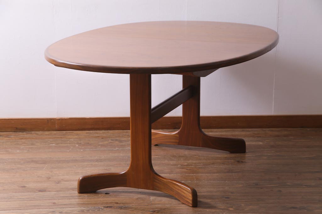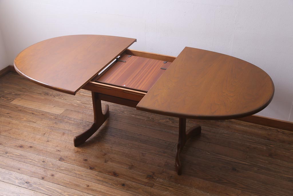 ラフジュ工房> テーブル> エクステンションテーブル > ヴィンテージ家具 G-PLAN(ジープラン) 北欧家具 チーク材 オーバル型のシンプルなエクステンションテーブル(ダイニングテーブル、ビンテージ)