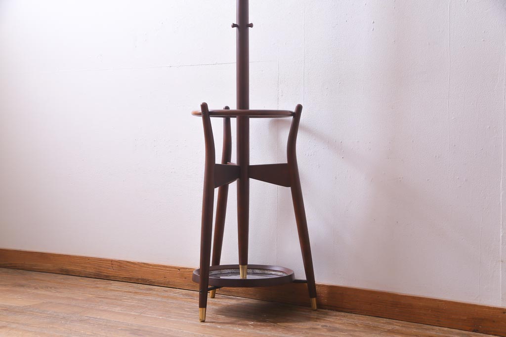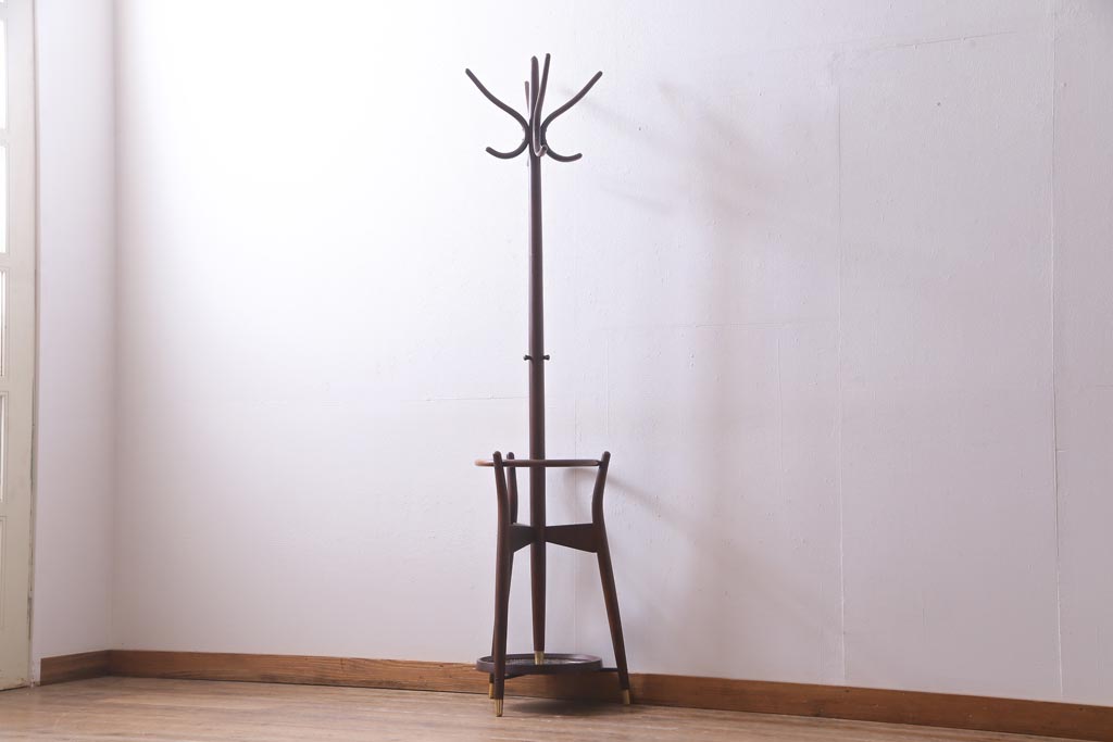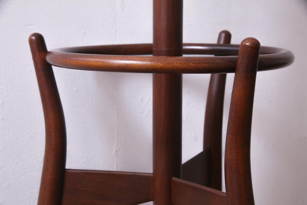 ラフジュ工房> ハンガーラック・衣桁> ポールハンガー > ヴィンテージ家具 秋田木工 曲げ木 品のある傘立て付きポールハンガー(帽子掛け、ビンテージ)