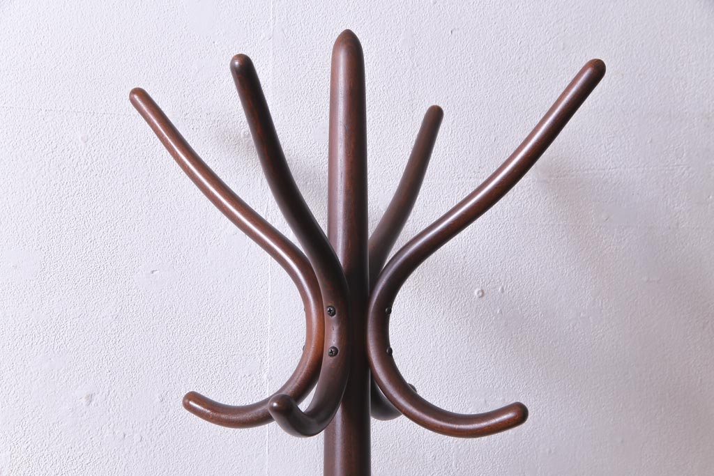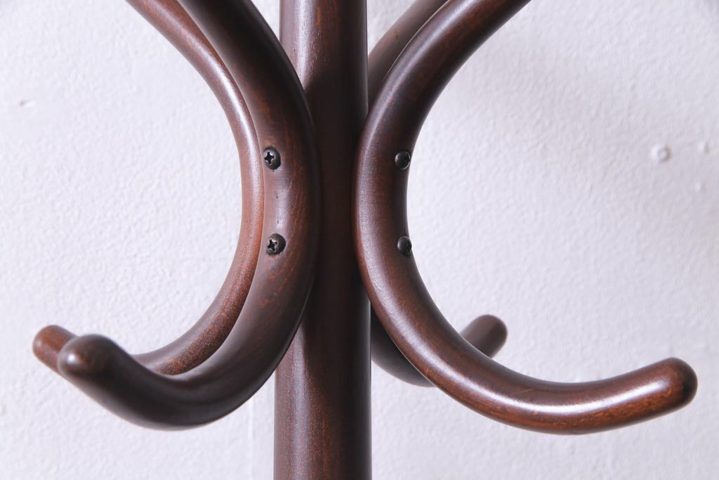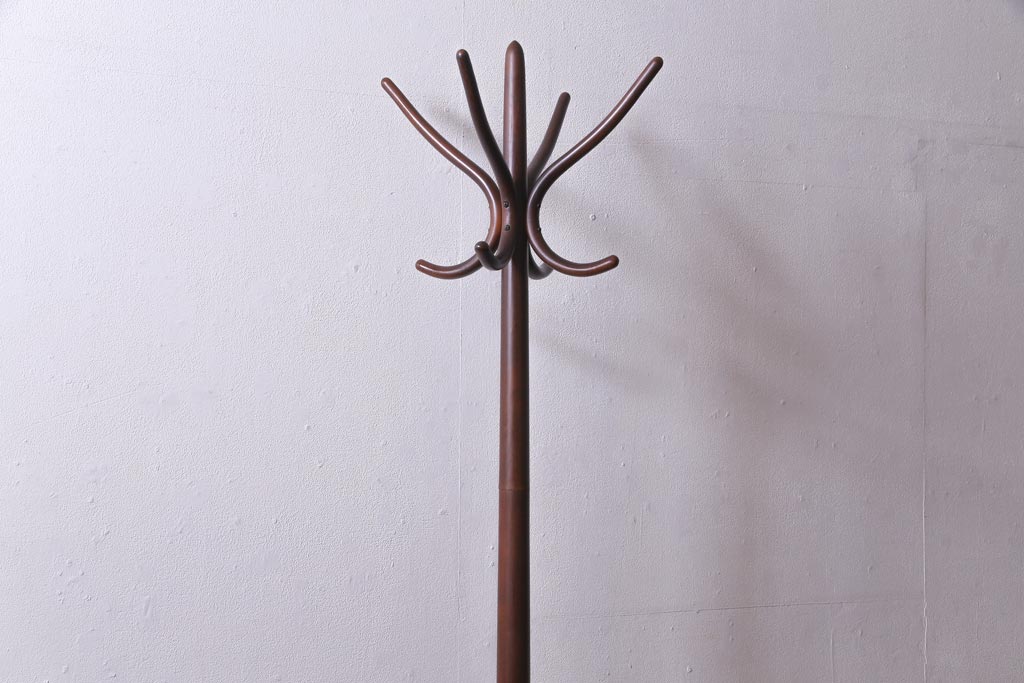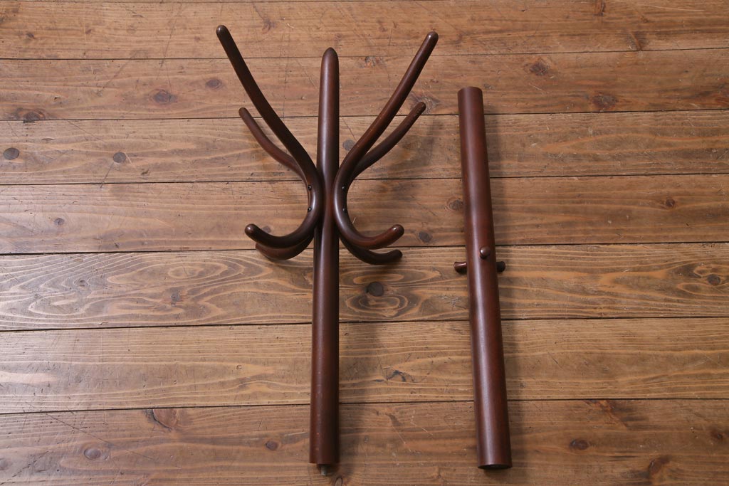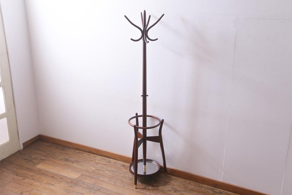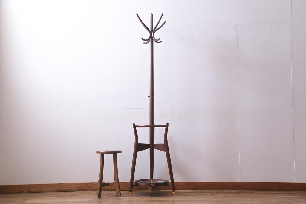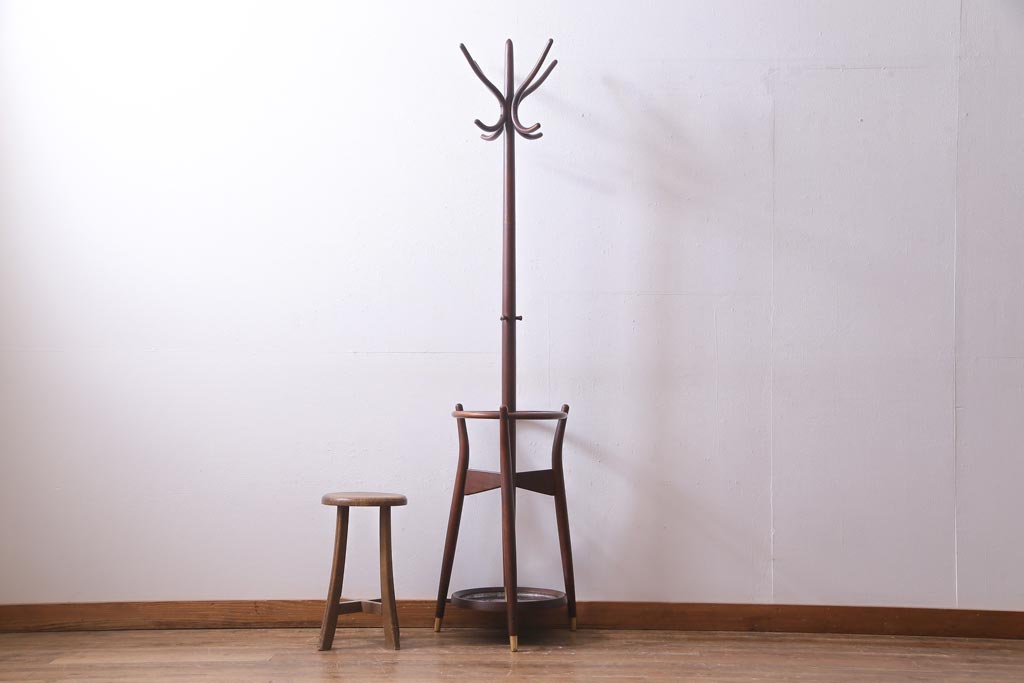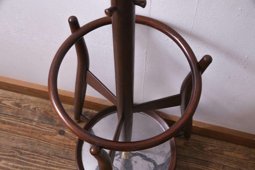 ラフジュ工房> 店舗什器 > ヴィンテージ家具 秋田木工 曲げ木 品のある傘立て付きポールハンガー(帽子掛け、ビンテージ)