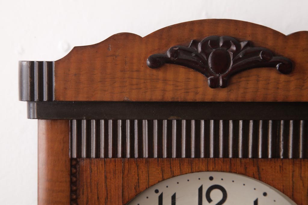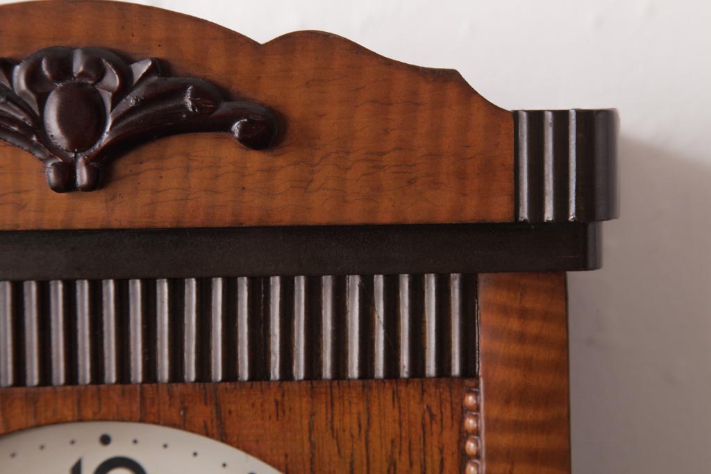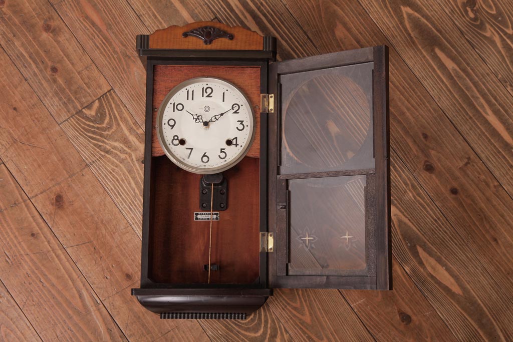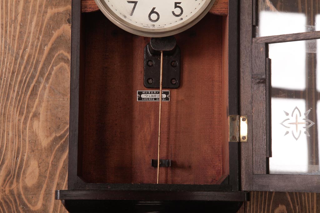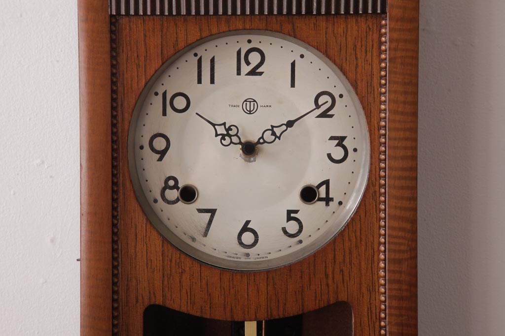 レトロ雑貨 つつみ時計店 内部交換済・電池式 明るい木色の柱時計(振り子時計、壁掛け時計)