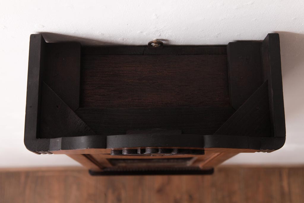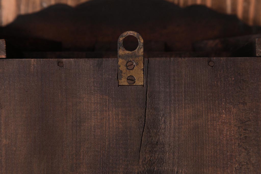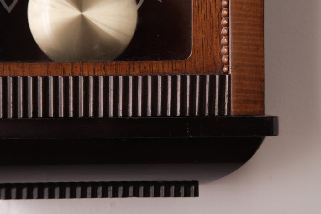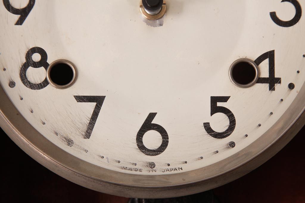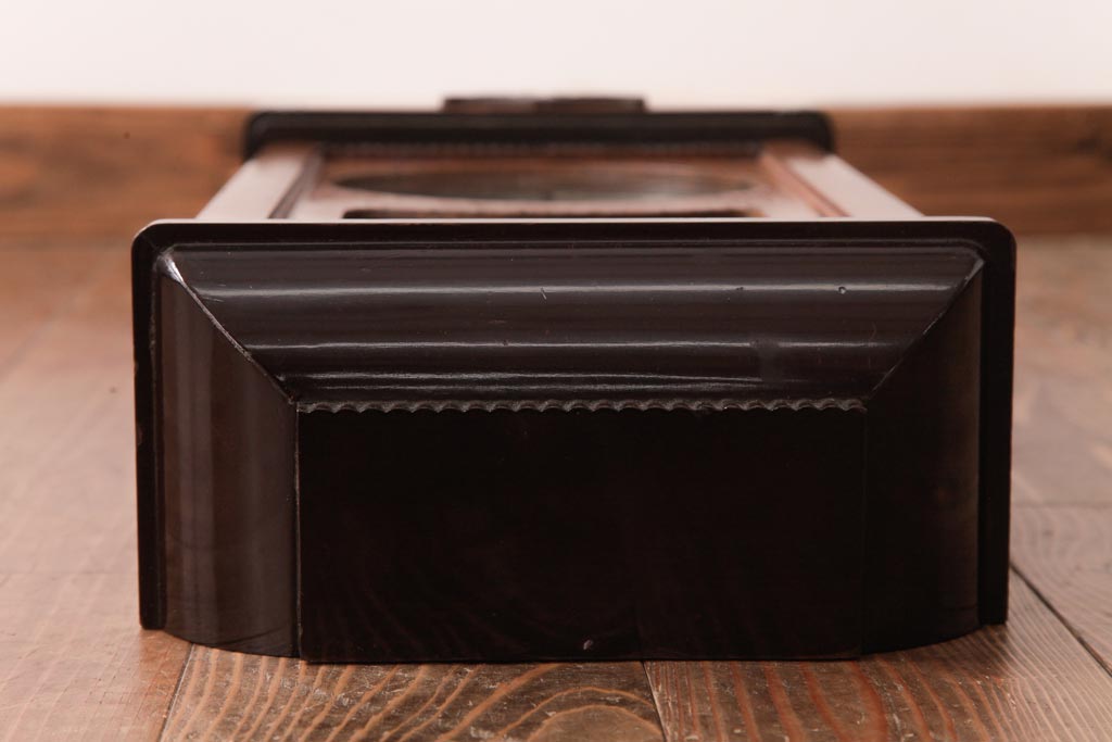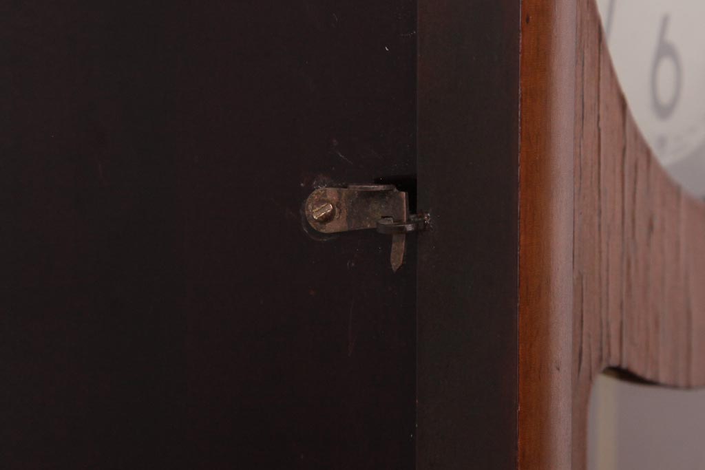 ムーブメントは新品の電池式に交換してあります。乾電池が付属します。振り子は飾りで、動きますが針と連動はしていません。