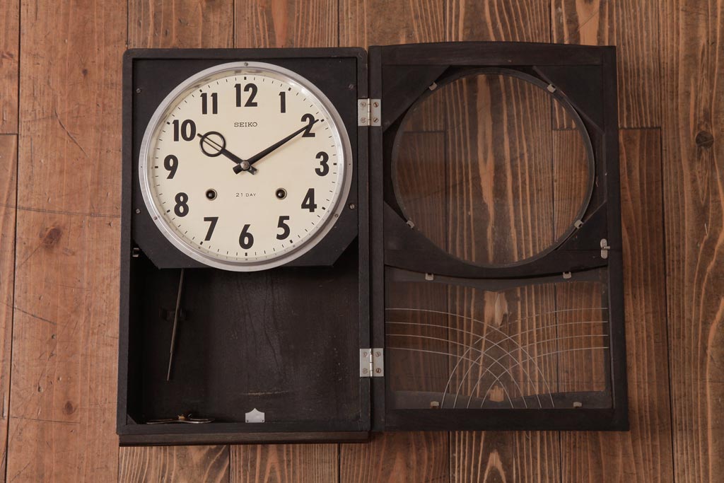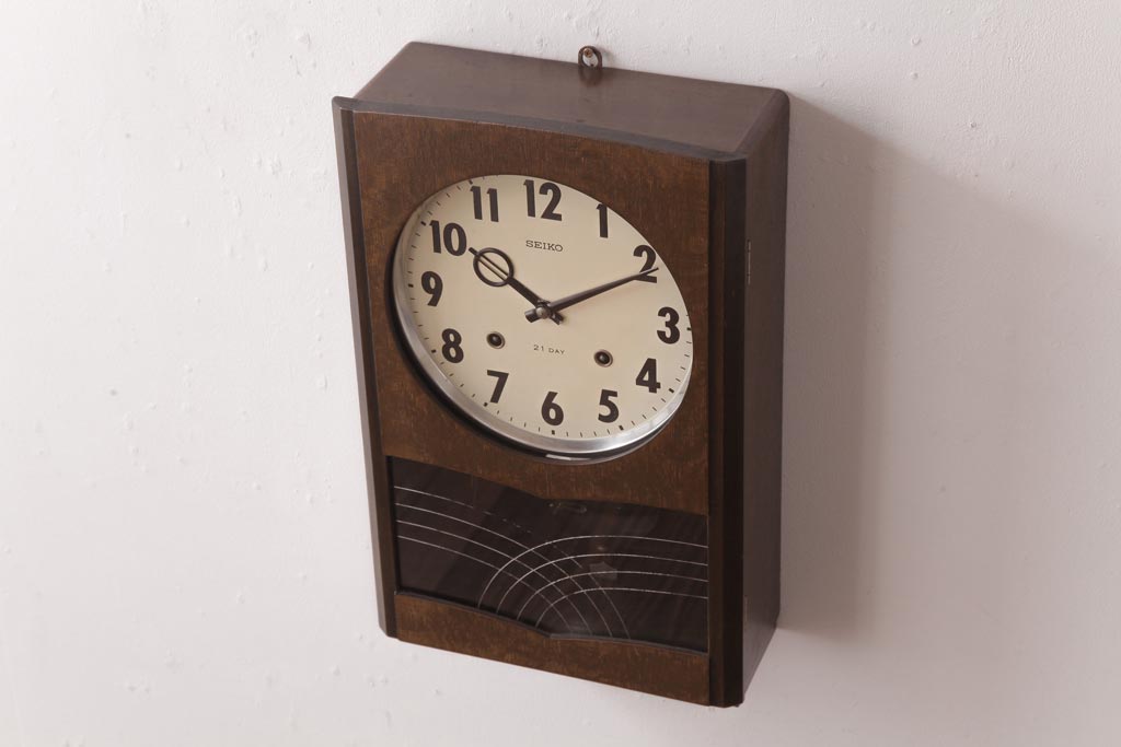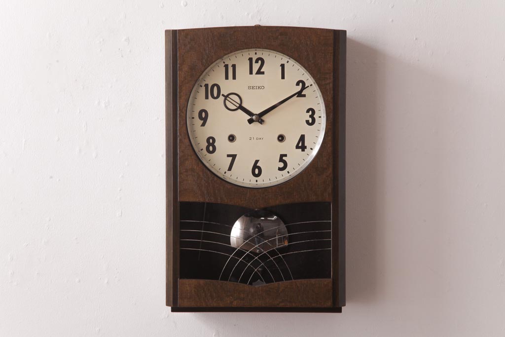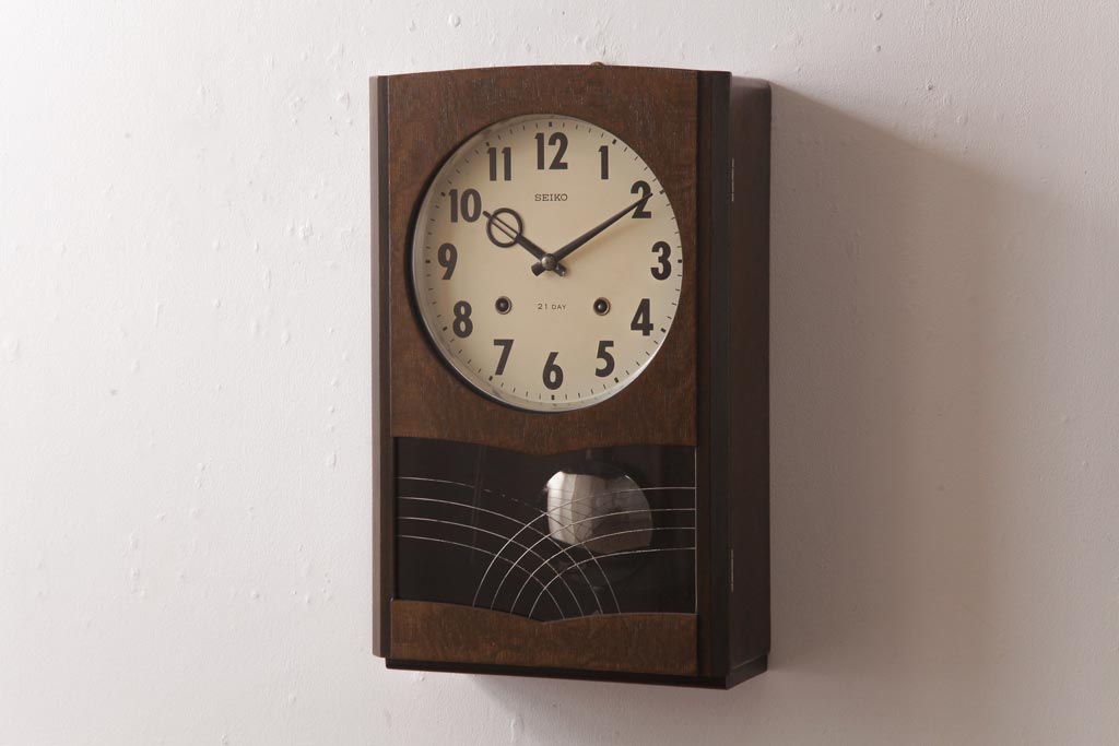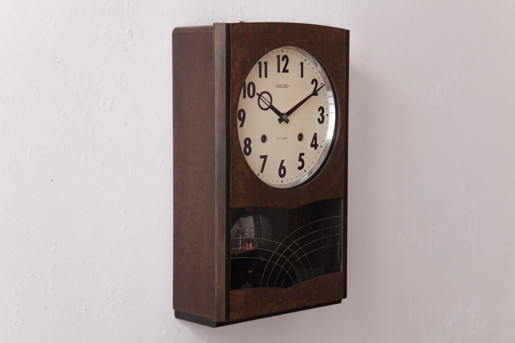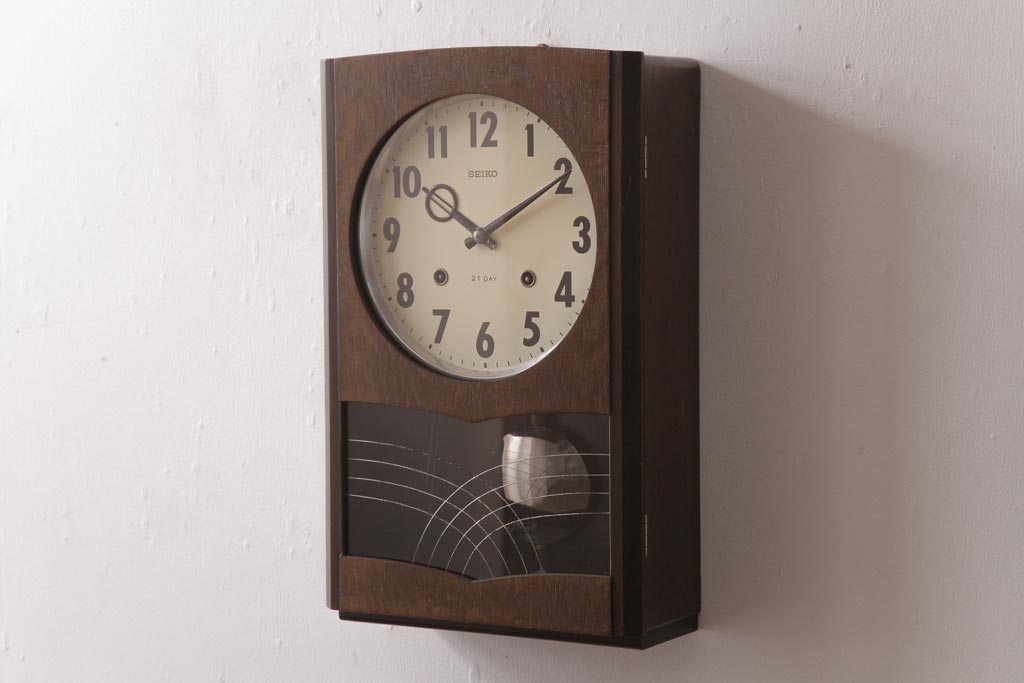 時計> 掛け時計 > レトロ雑貨 SEIKO(セイコー) ゼンマイ式 21DAY 渋い色味の掛け時計(柱時計、振り子時計)